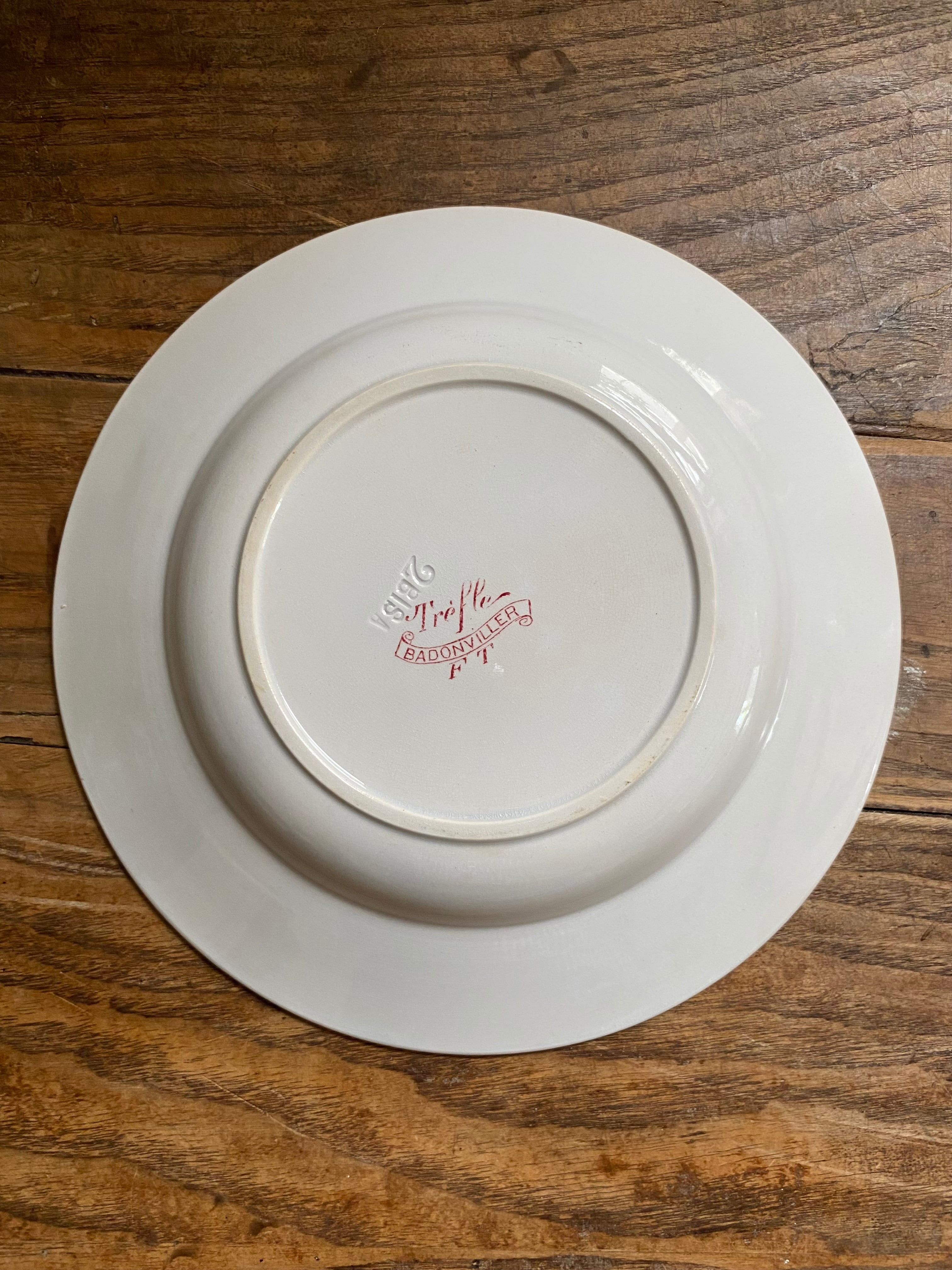 歴史を辿ると、Badonviller窯は1922年にリュネヴィル窯と合併するまでの窯元となりますのでアンティークに値するプレートとなります。