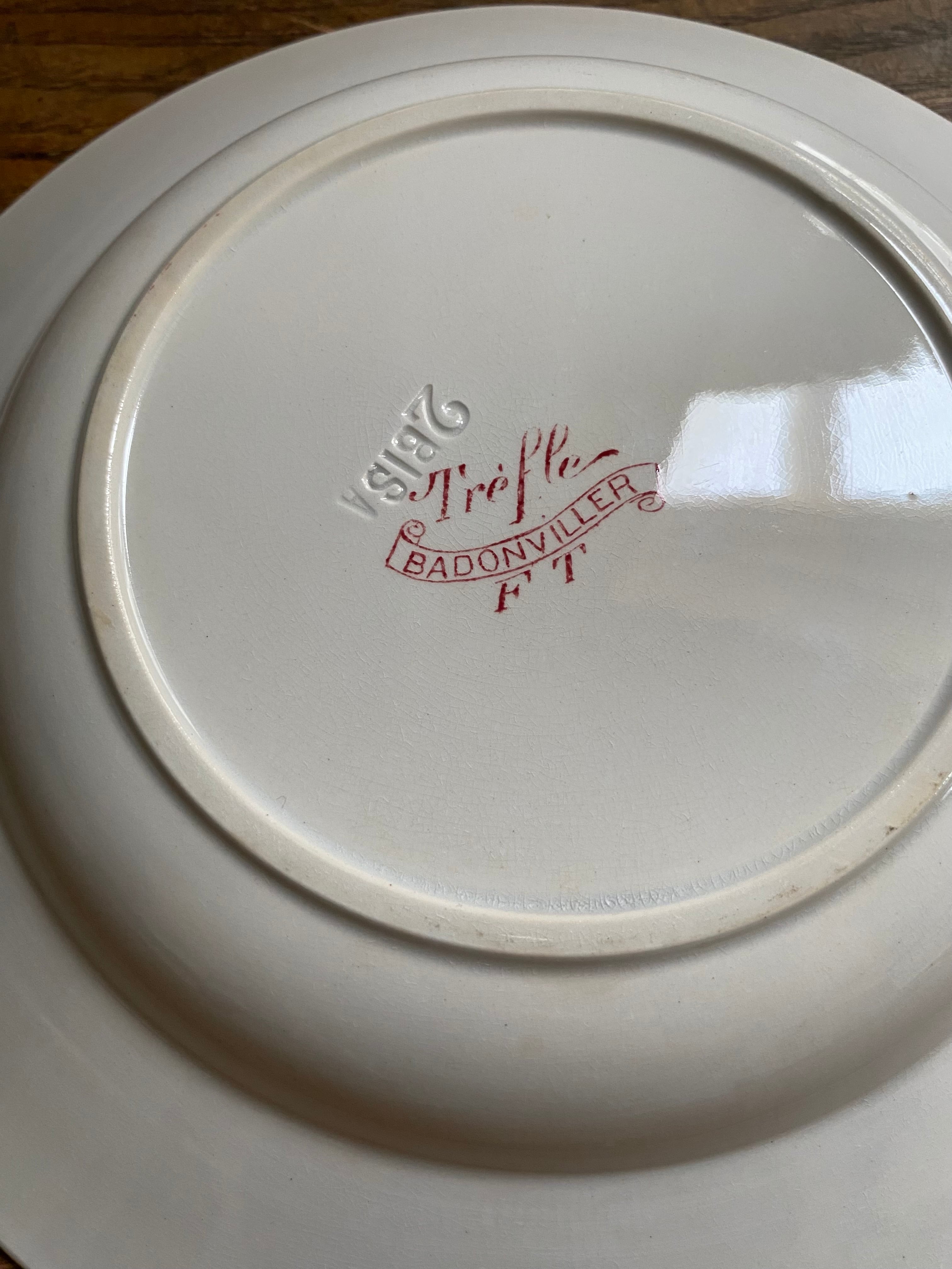 c シロツメクサとクローバーの深皿プレート Badonviller フランスアンティーク アンティーク食器 アンティークプレート バドンヴィレー
