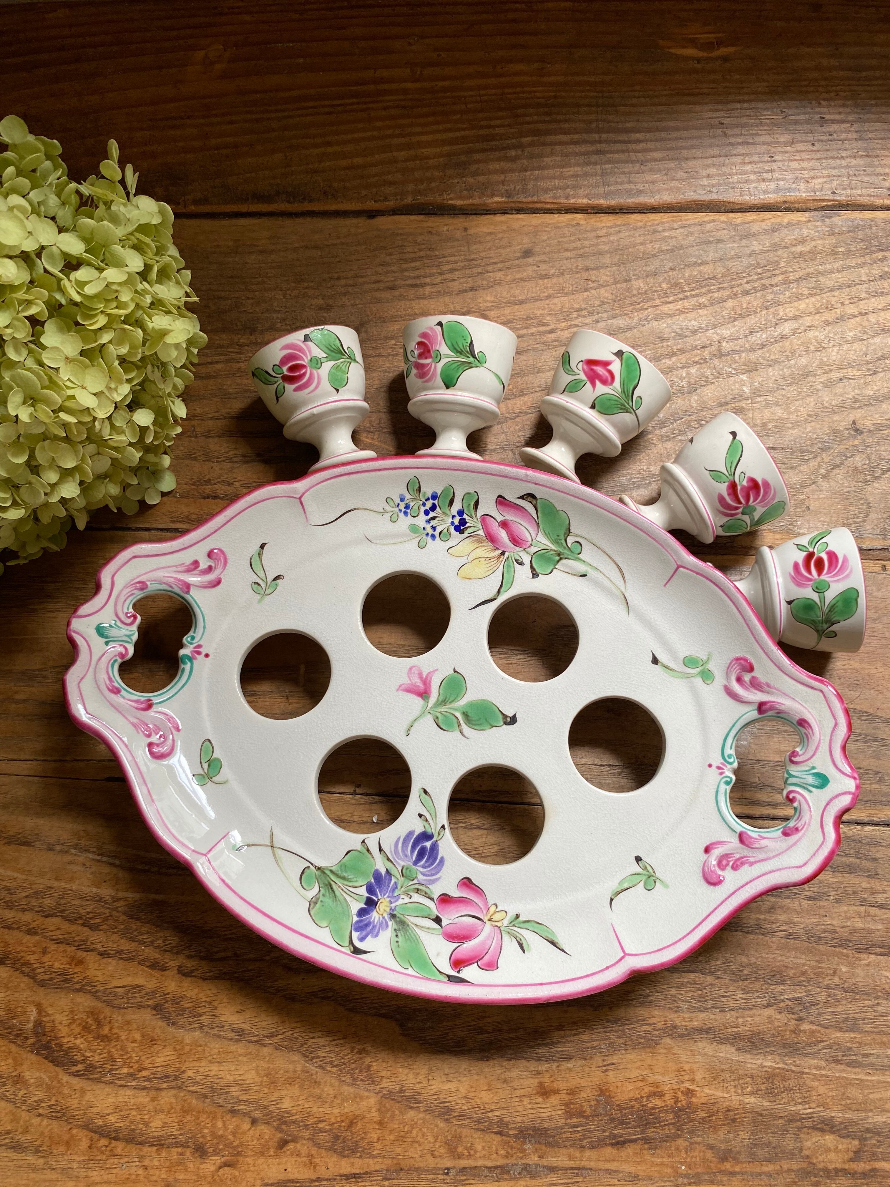 リュネヴィル窯、エッグスタンド付きサービングトレイ