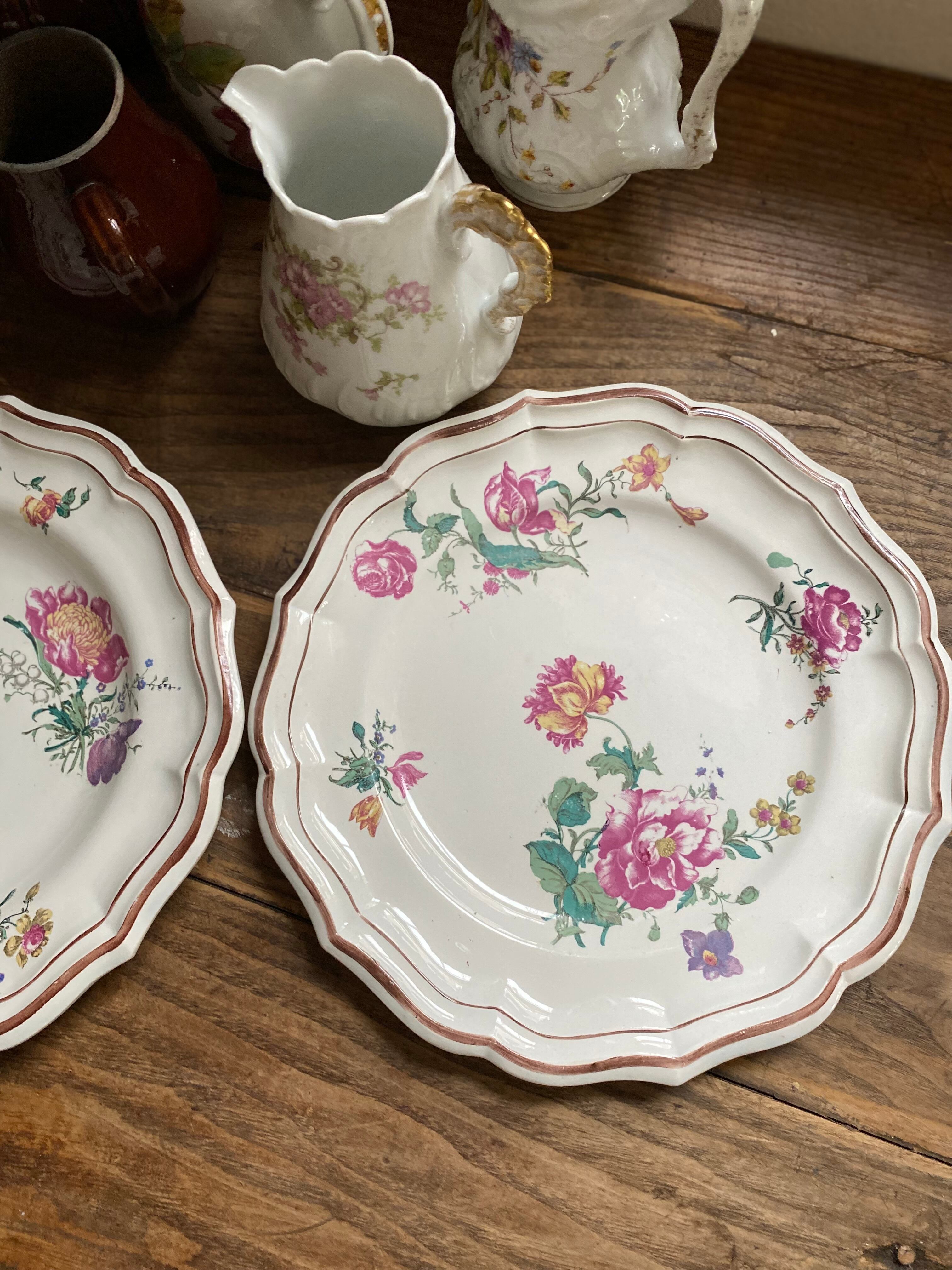 B / Old GIEN 花リムのプレート フランスアンティーク アンティークプレート ジアン アンティーク食器