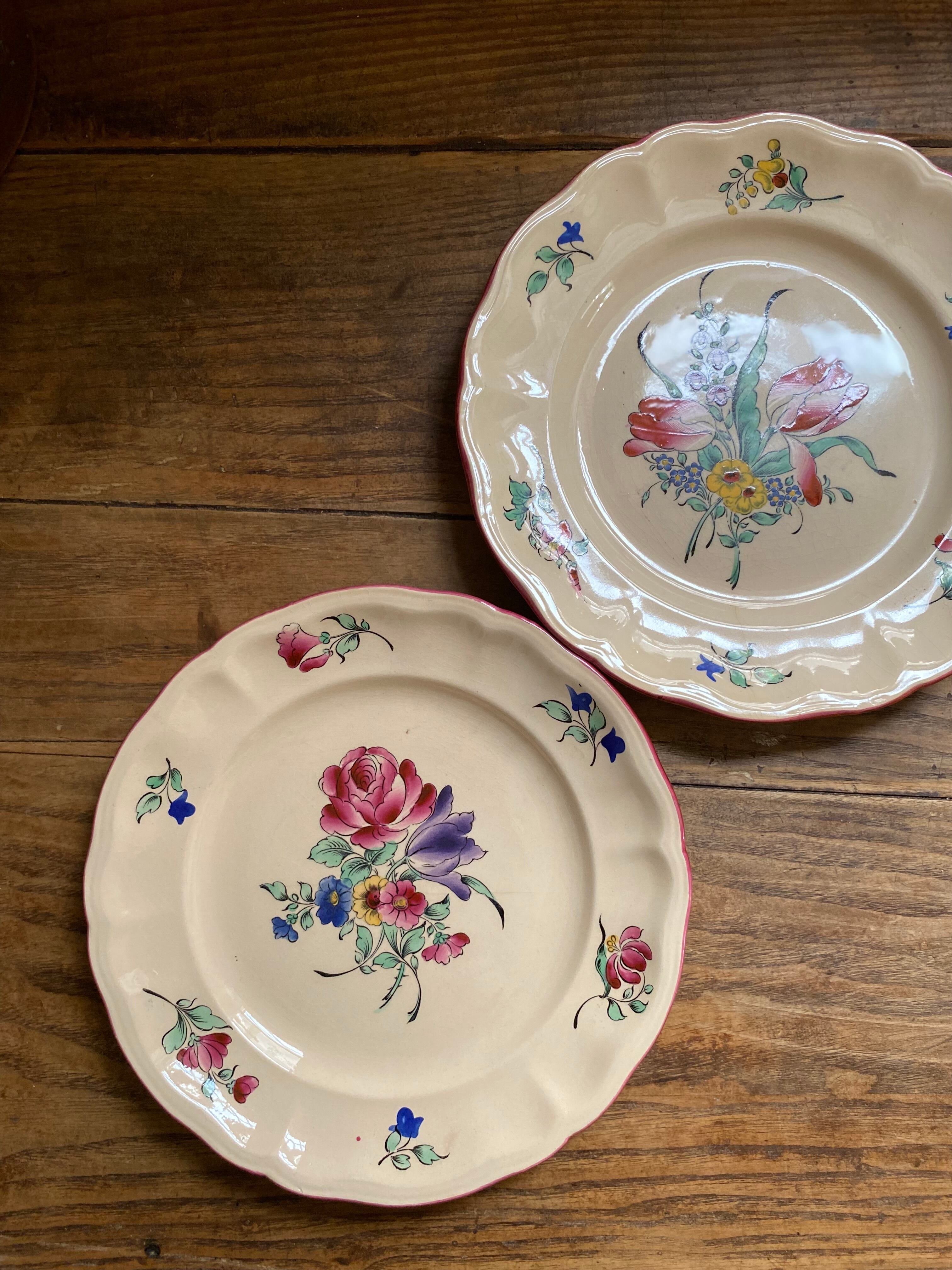 クリームカラーのKG Luneville デザートプレート フランスアンティーク アンティーク食器 アンティークプレート リュネヴィル