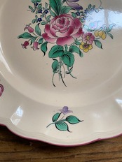 ハンドペイントで描かれた薔薇のブーケが中央に、リムにもバランスよく小さなお花が添えられております。