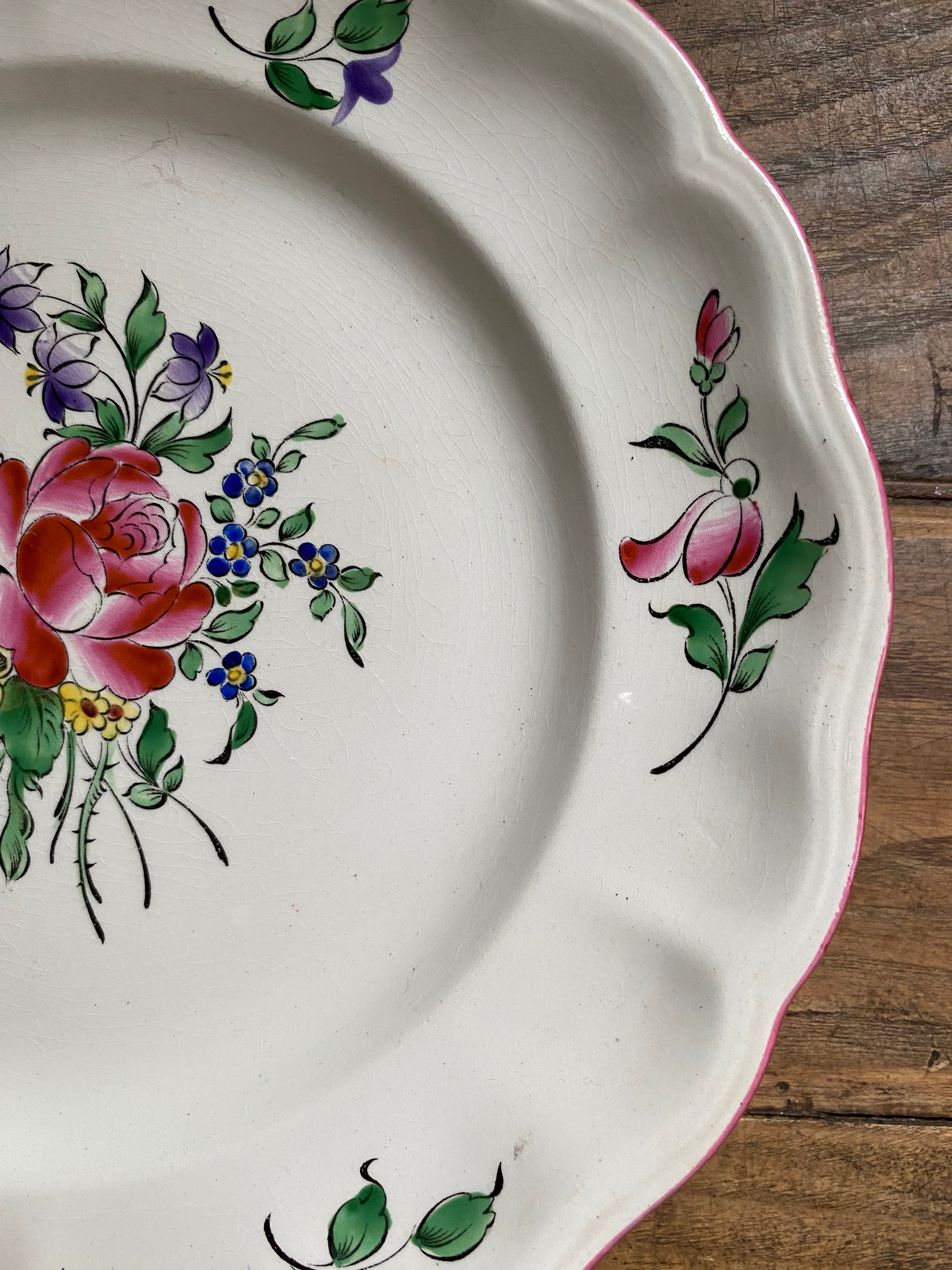 ハンドペイントで描かれた薔薇と花々のブーケ、リムにはバランスよく、花が描かれております。