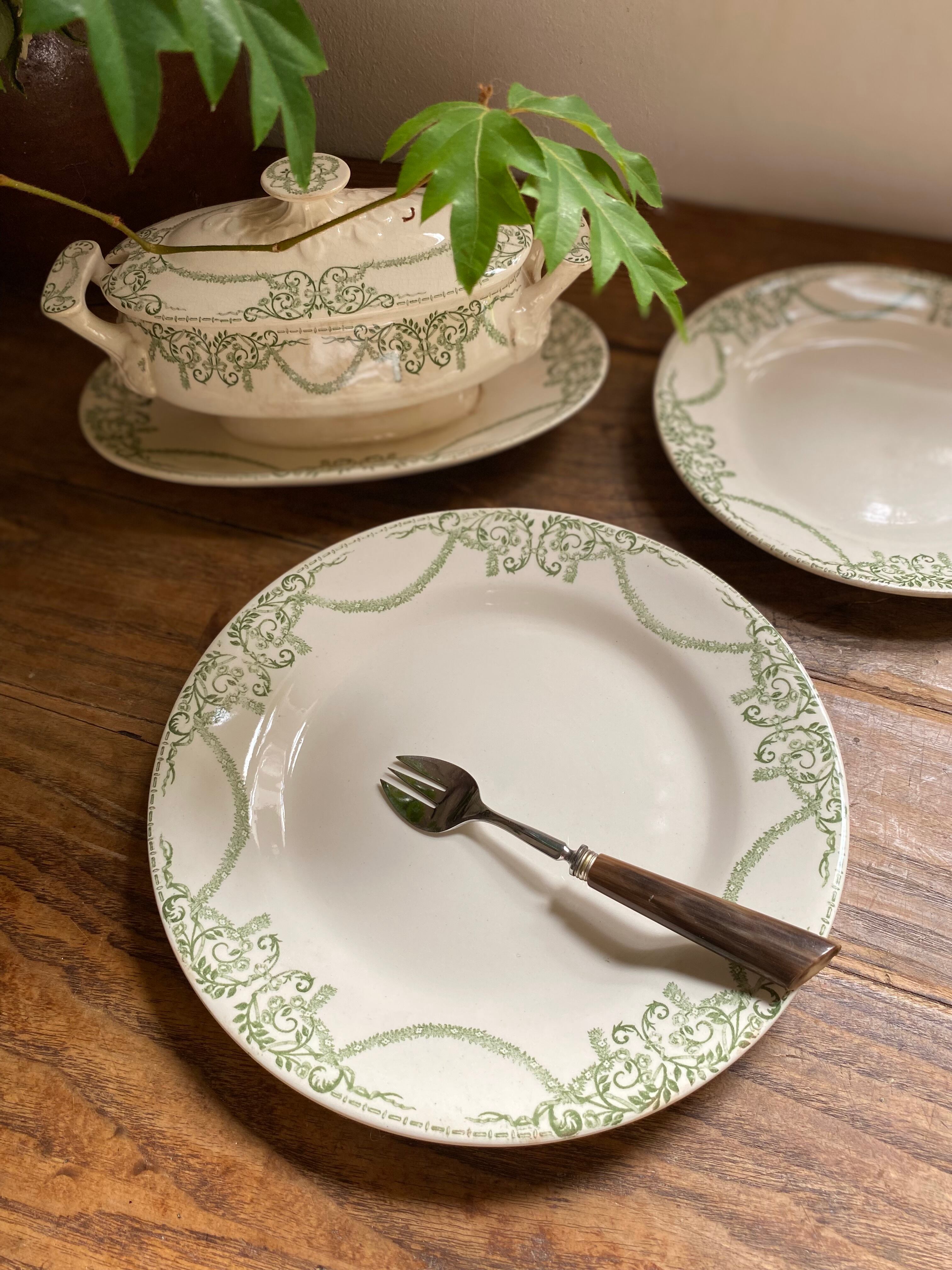 リボンガーランドのデザートプレート クレイユモントロー ナポレオン フランスアンティーク アンティークソーシエール ソーシエール