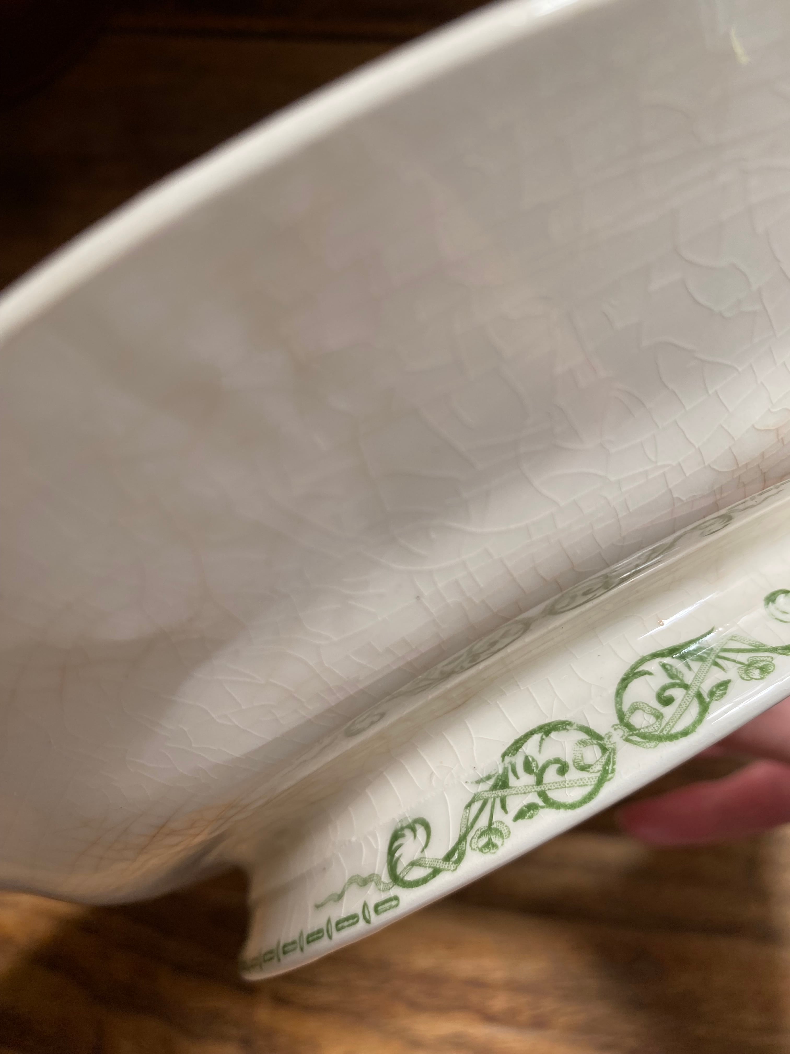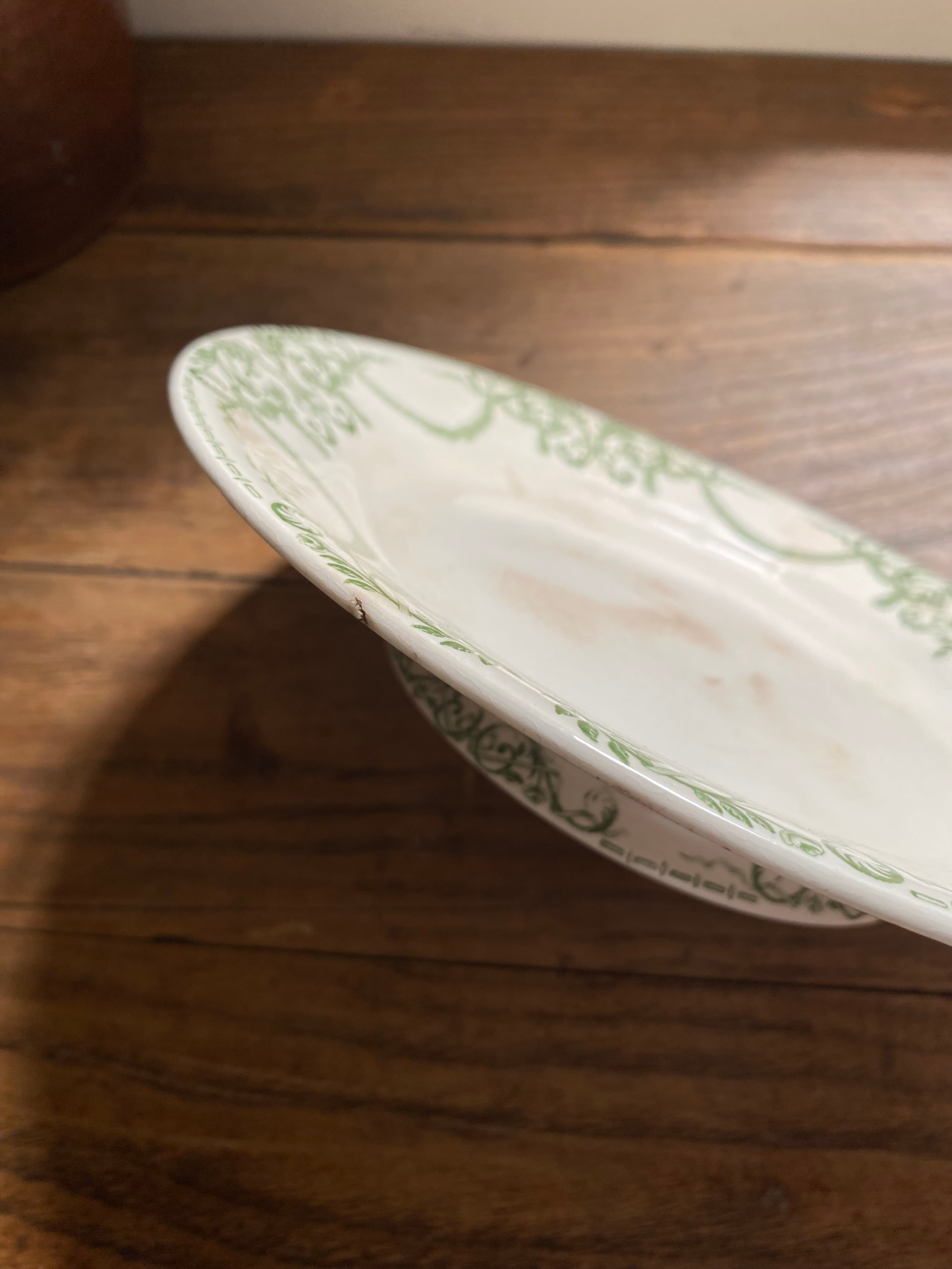 リボンガーランドのケーキ皿 Creil et Montereau ケーキ皿 ショートコンポティエ クレイユモントロー ナポレオン フランスアンティーク