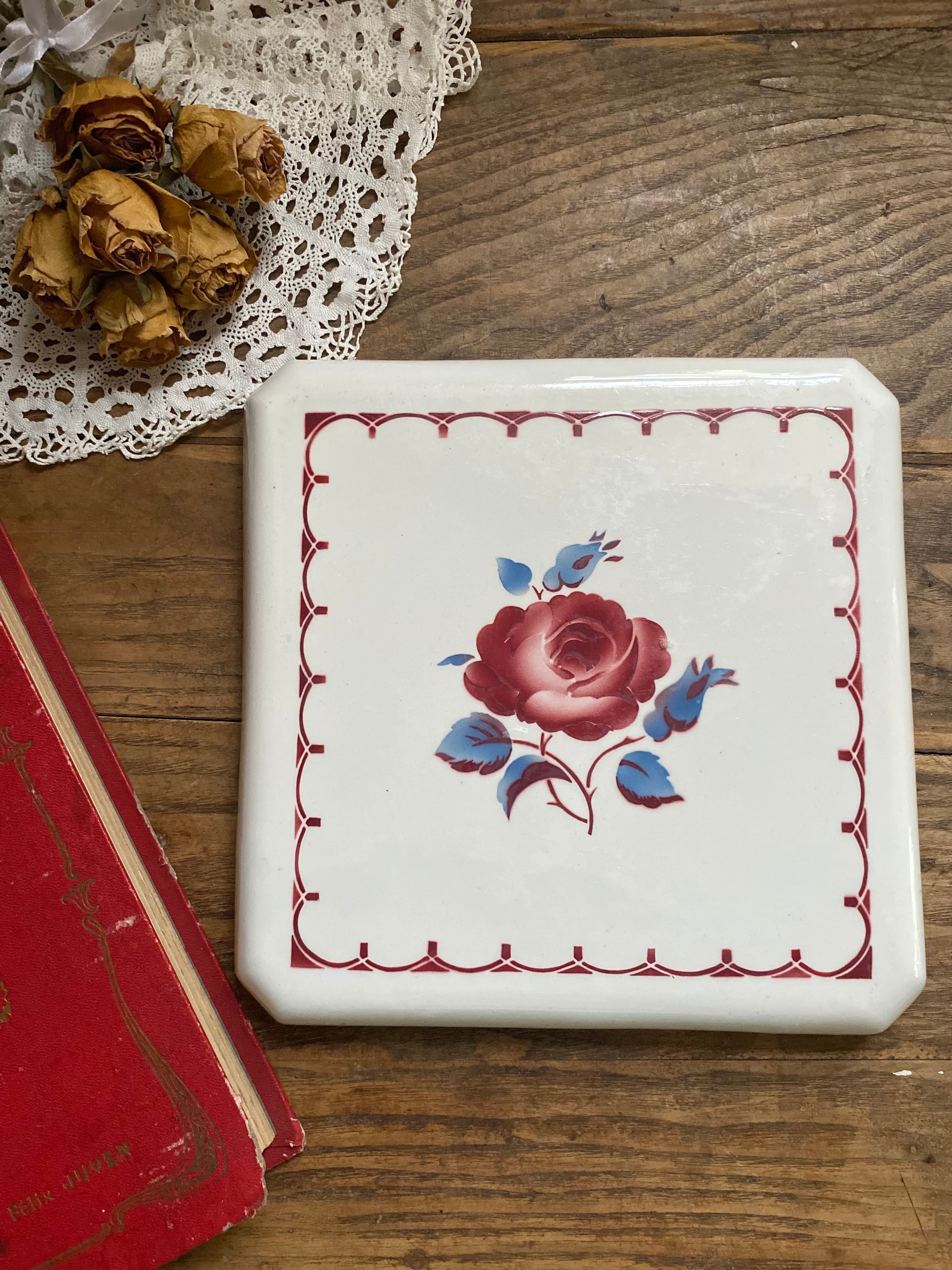 ローズ柄のトリペット Badonviller フランスアンティーク アンティークトリペット 鍋敷き