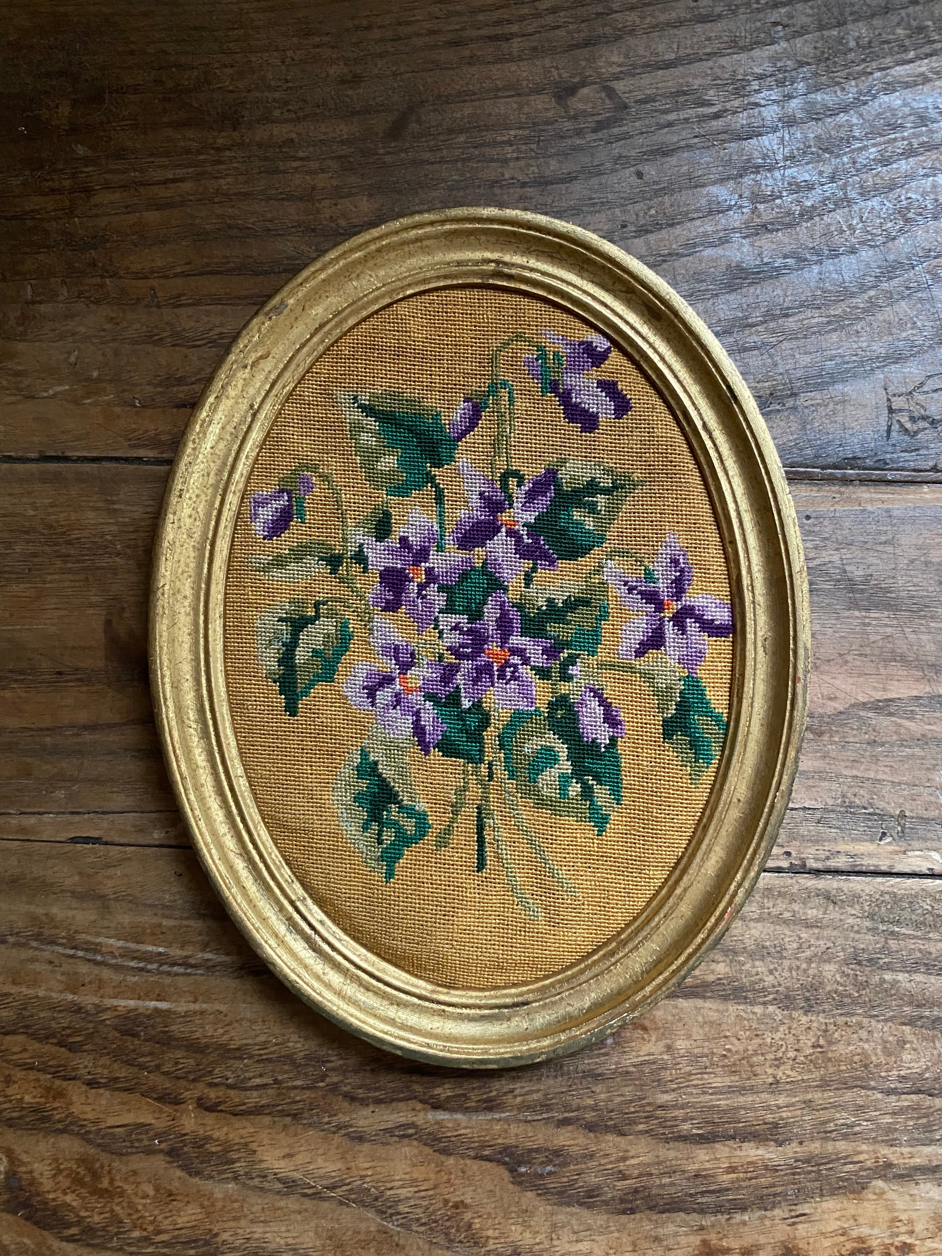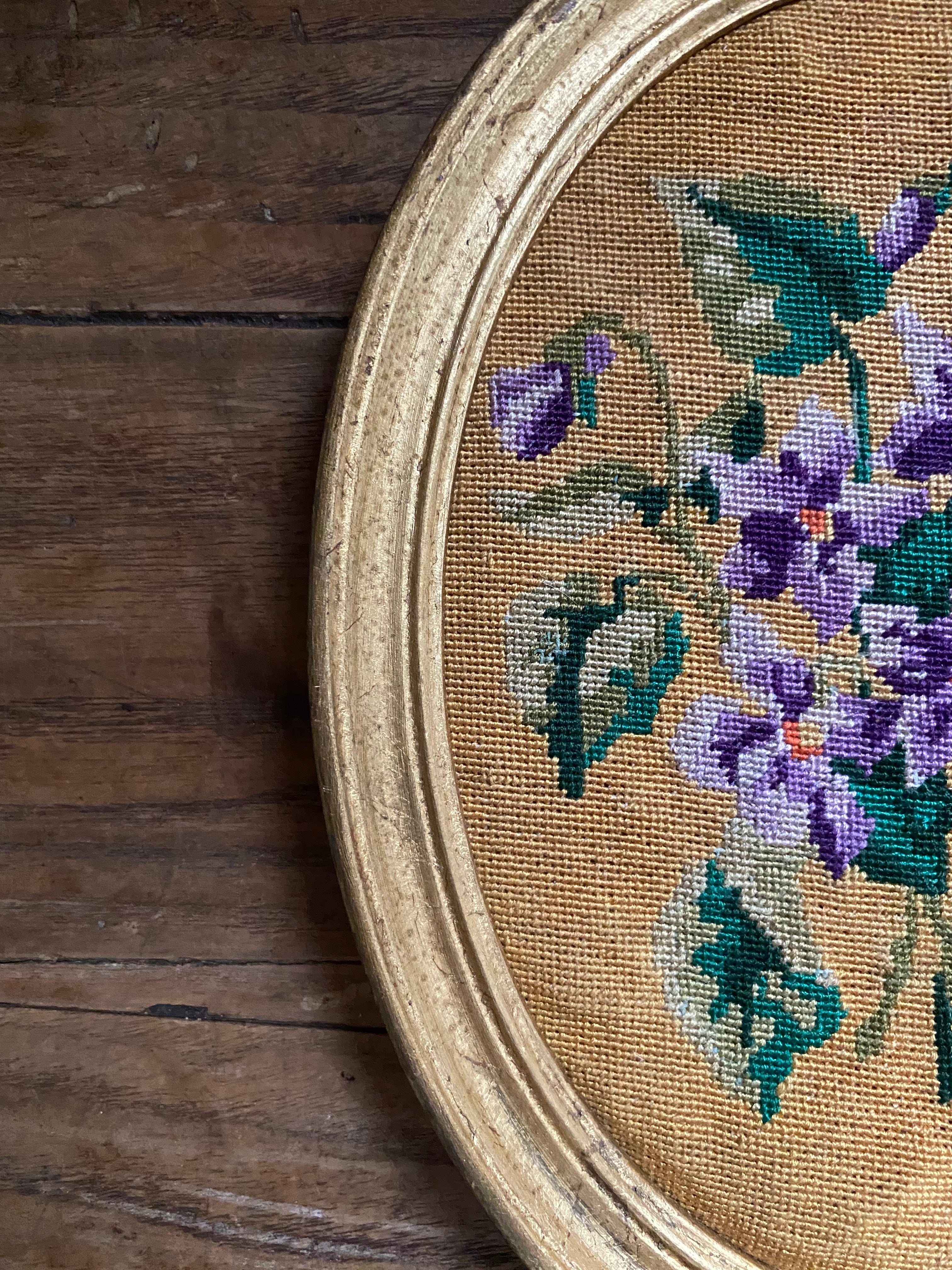 すみれのプチポワン B すみれの刺繍 フランスヴィンテージ フランスアンティーク雑貨 フレーム