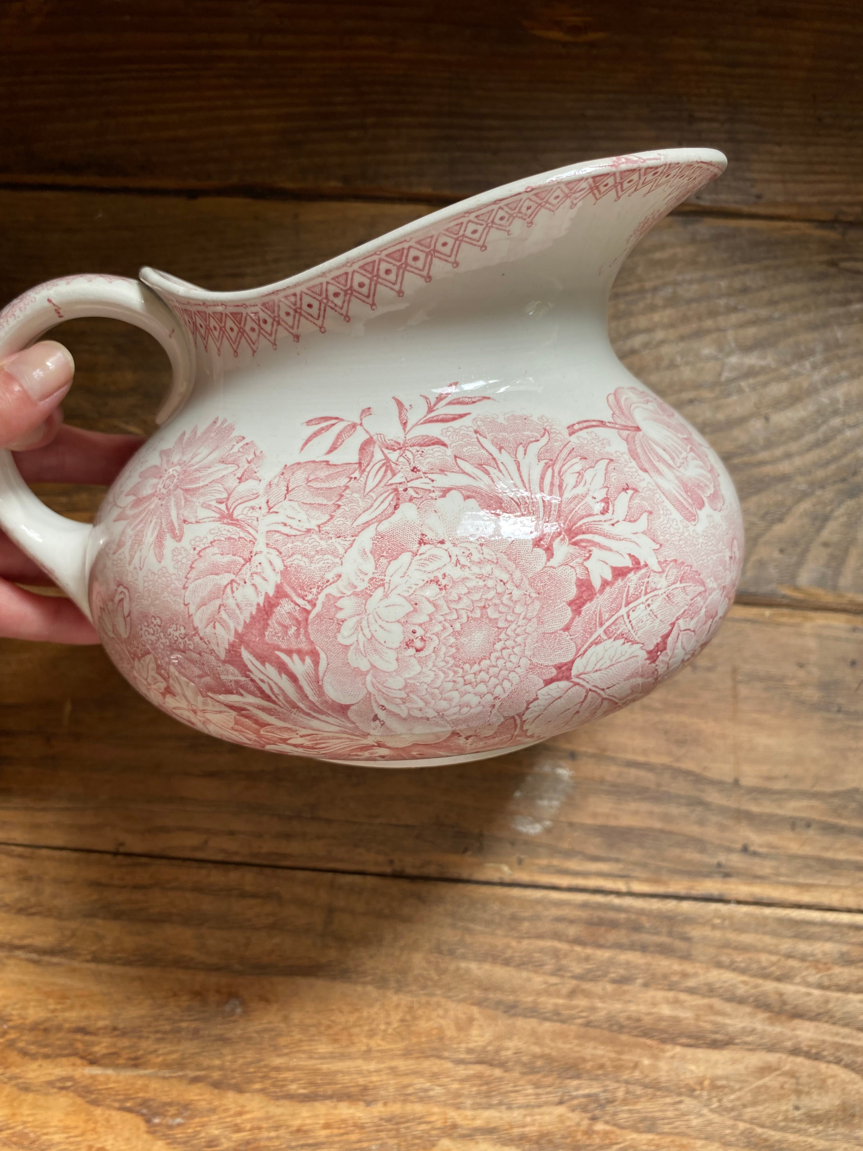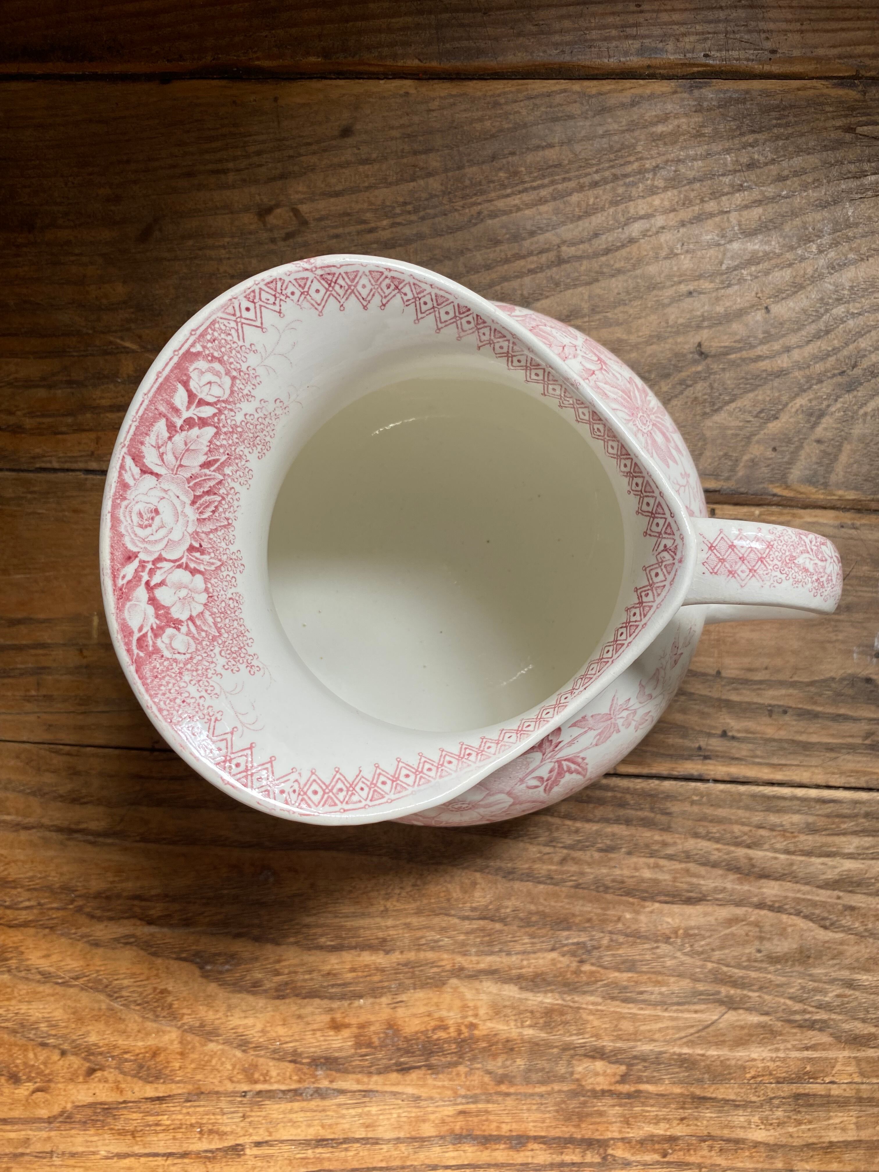 優しいピンクのピシェ JARDINIERE 水差し ベイスン付き 洗面用具 フランスアンティーク アンティークジャグ アンティークピシェ サルグミンヌ