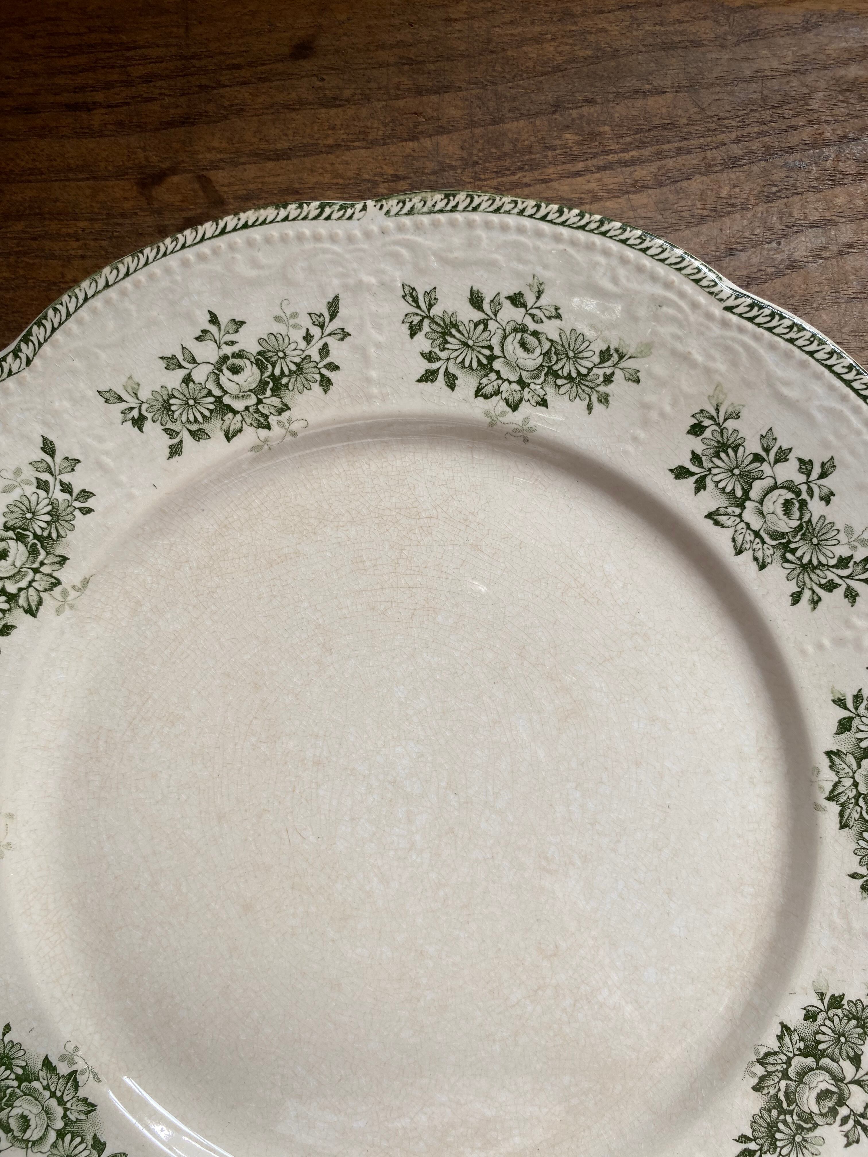 グリーンローズのフラットプレート A Badonviller フランスアンティーク アンティークプレート アンティーク食器 フランスアンティーク食器