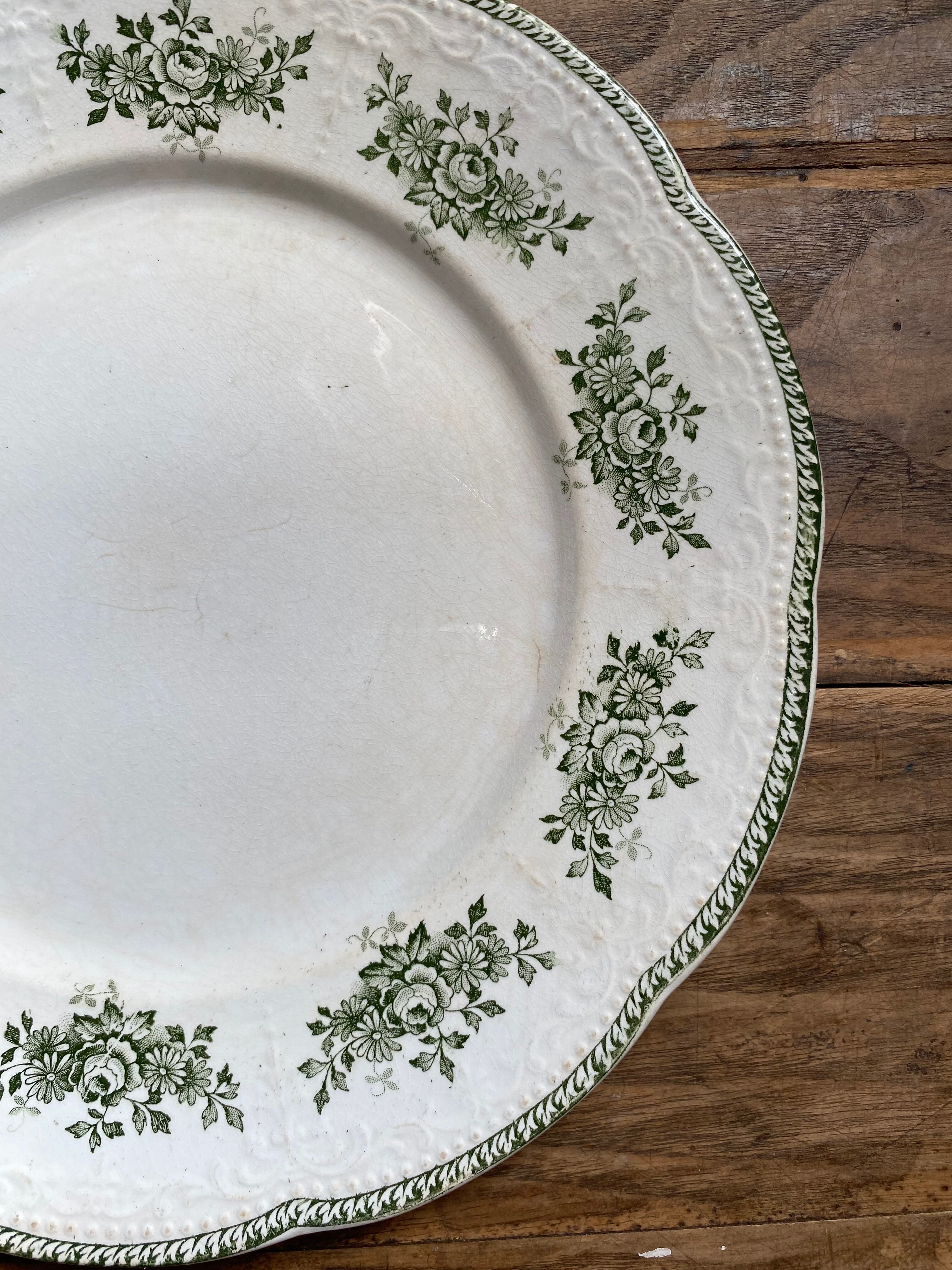 グリーンローズのフラットプレート B Badonviller フランスアンティーク アンティークプレート アンティーク食器 フランスアンティーク食器
