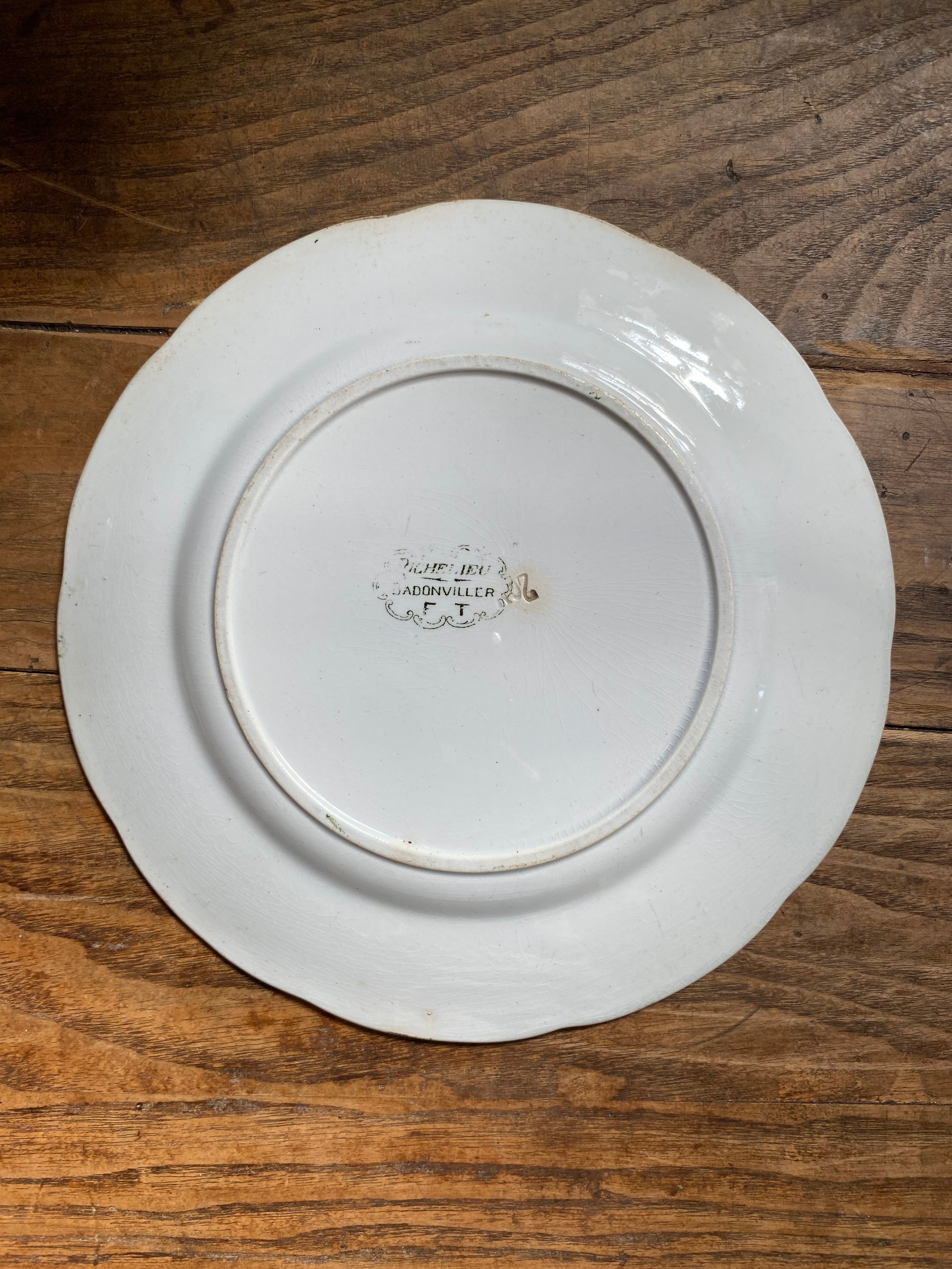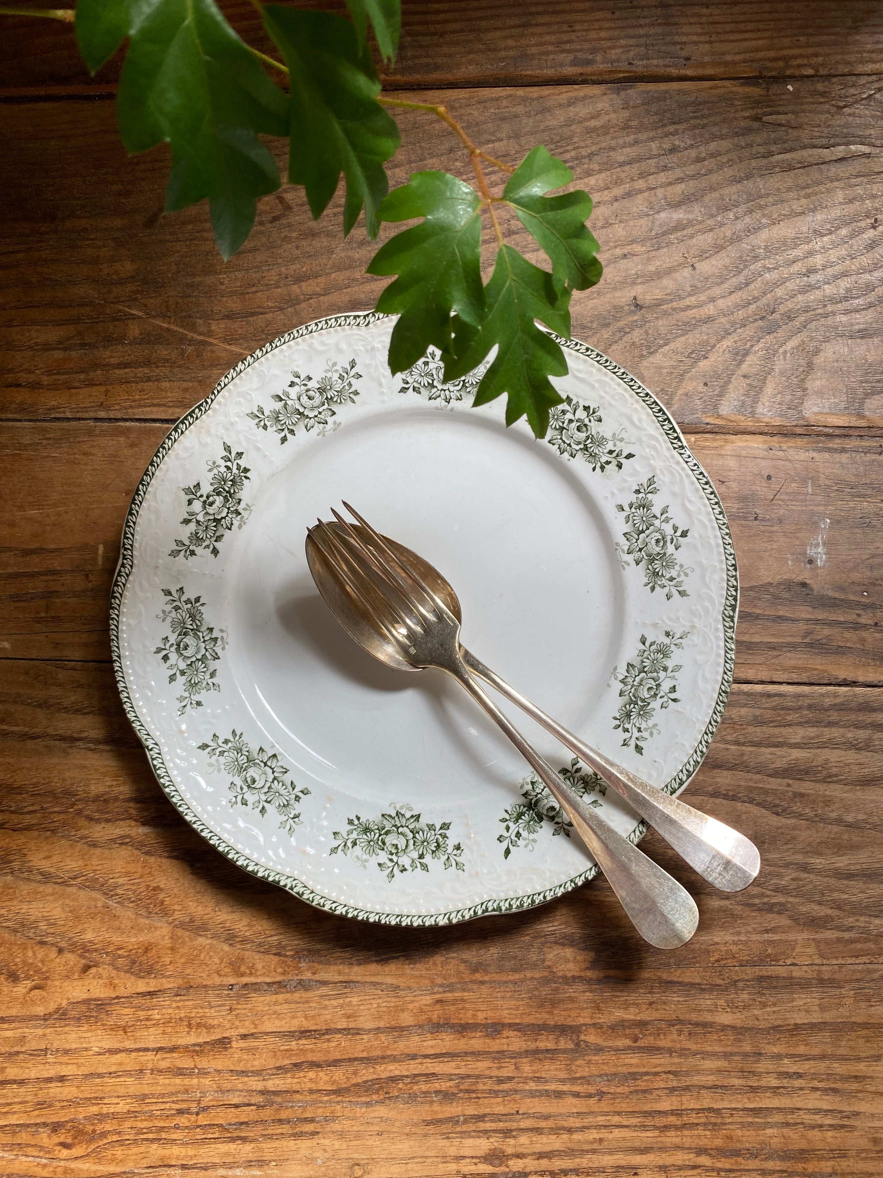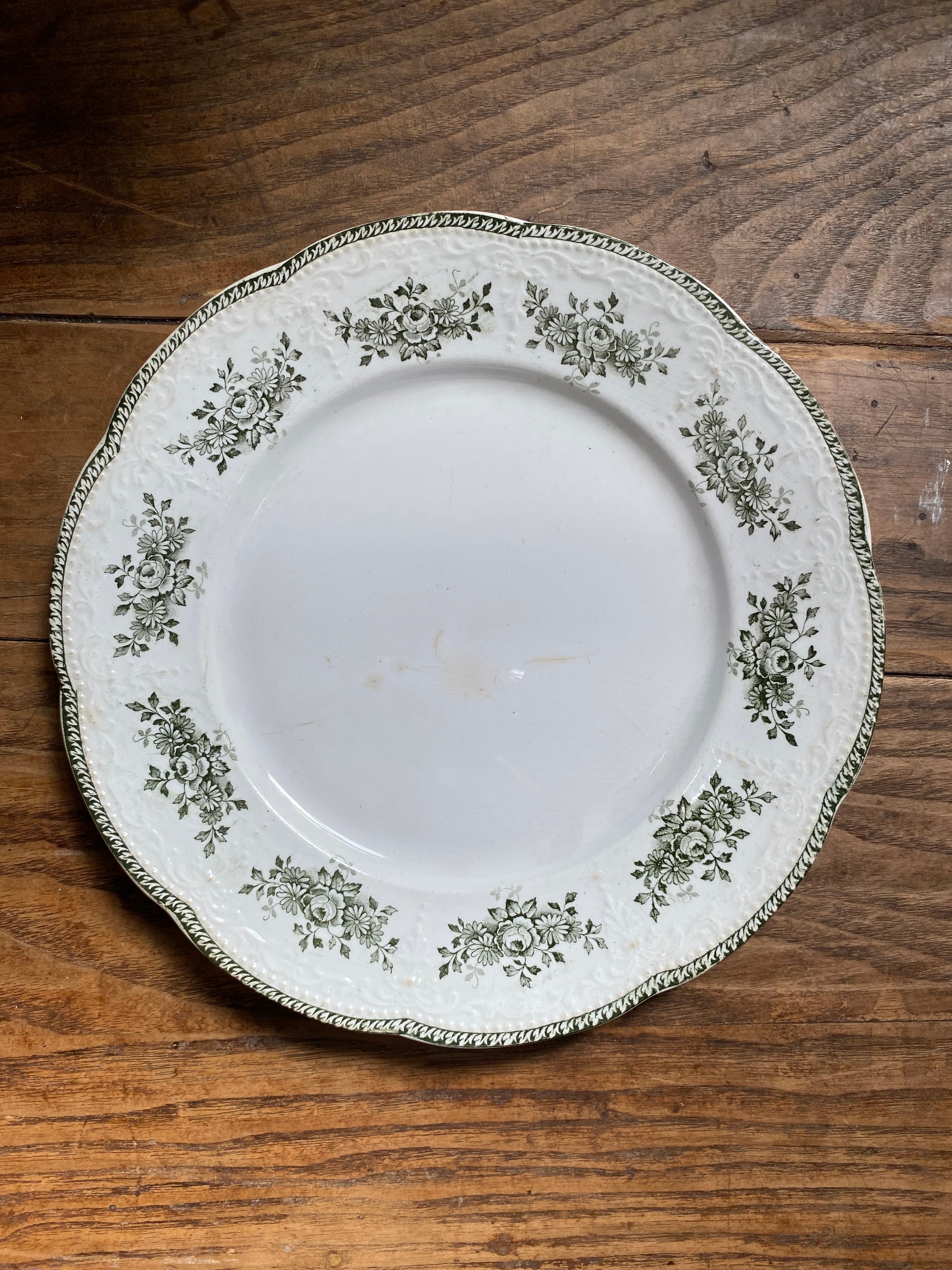 グリーンローズのフラットプレート C Badonviller フランスアンティーク アンティークプレート アンティーク食器 フランスアンティーク食器