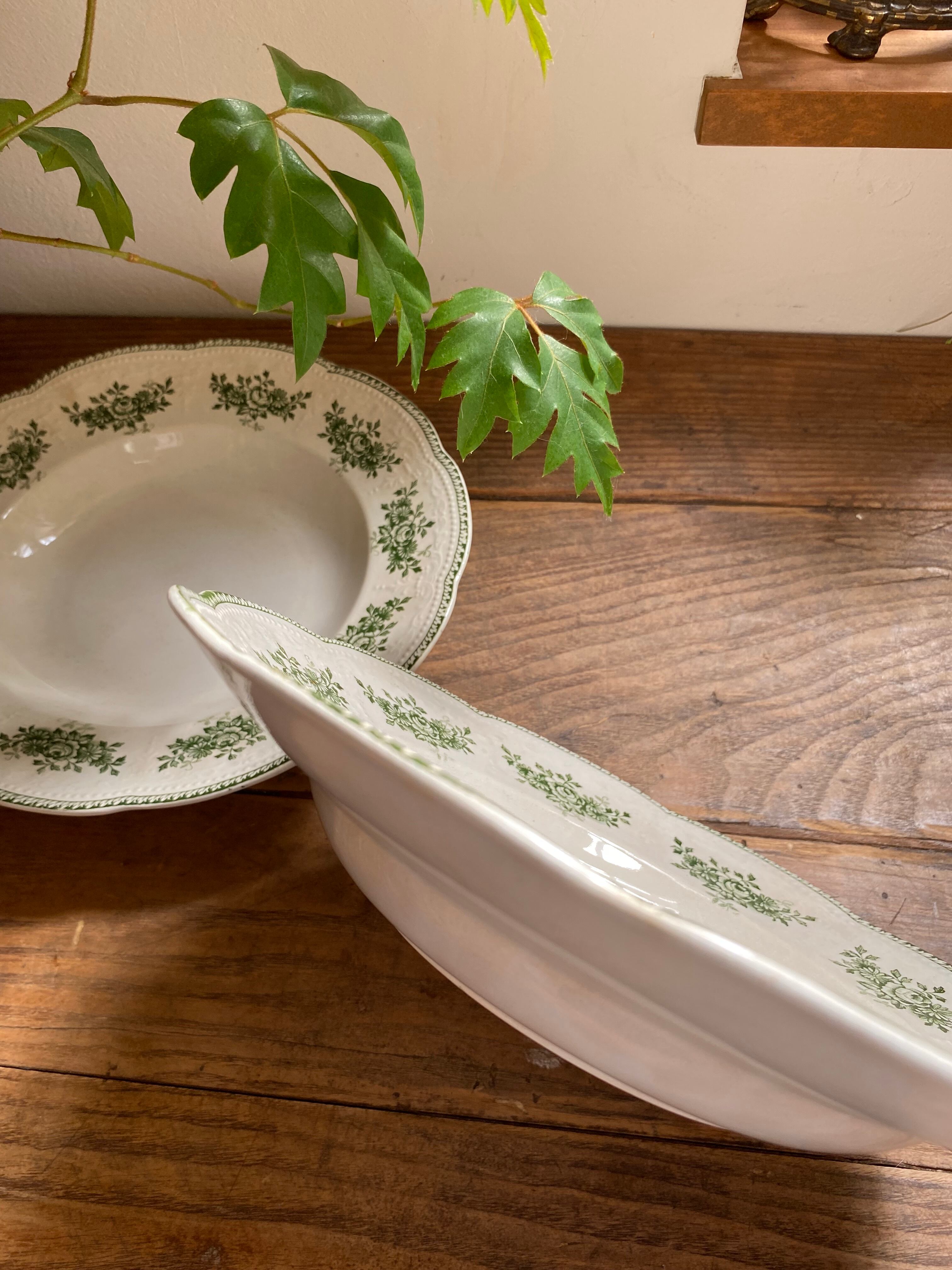 グリーンローズ深皿プレート A Badonviller フランスアンティーク アンティークプレート アンティーク食器 フランスアンティーク食器