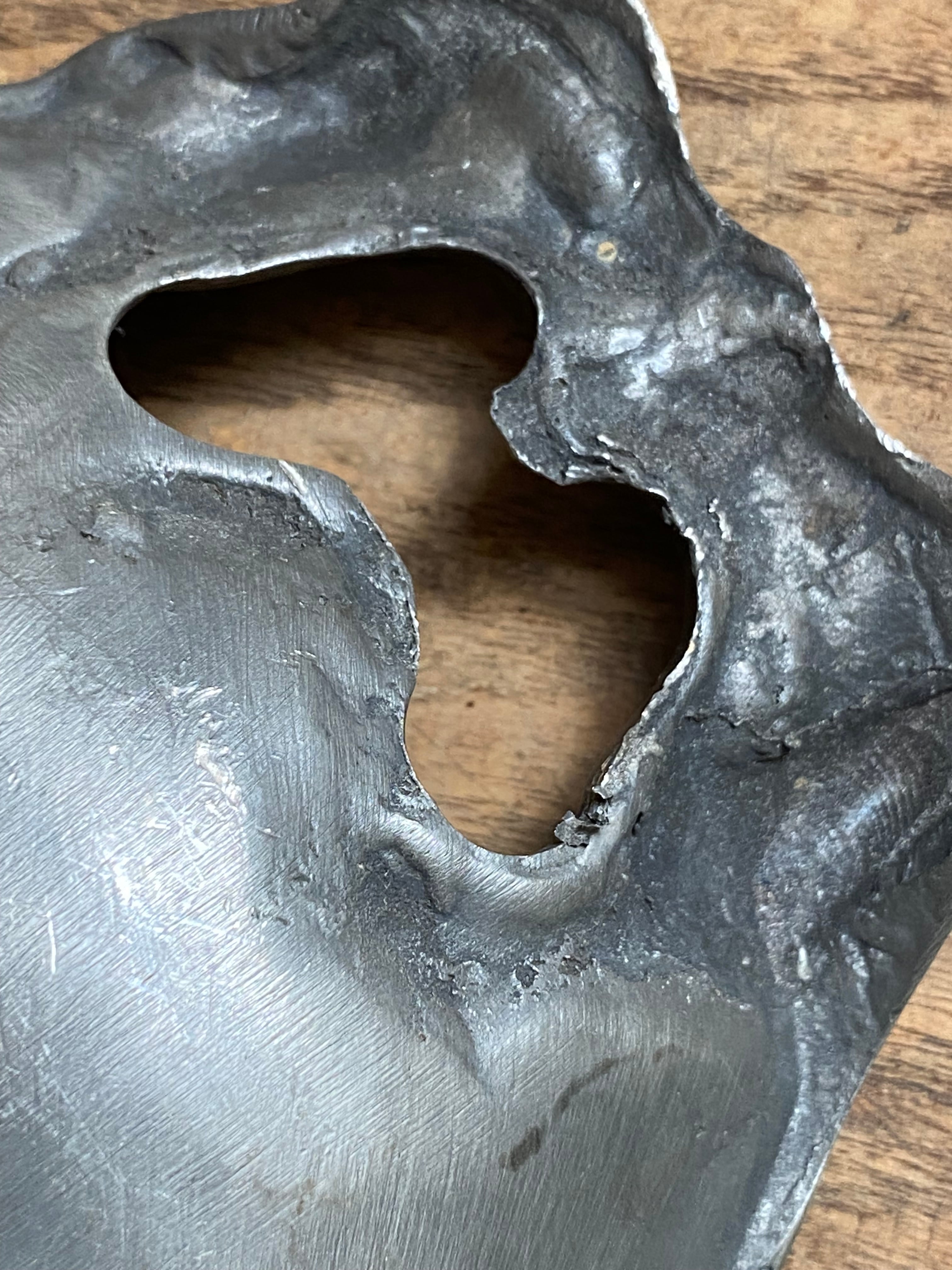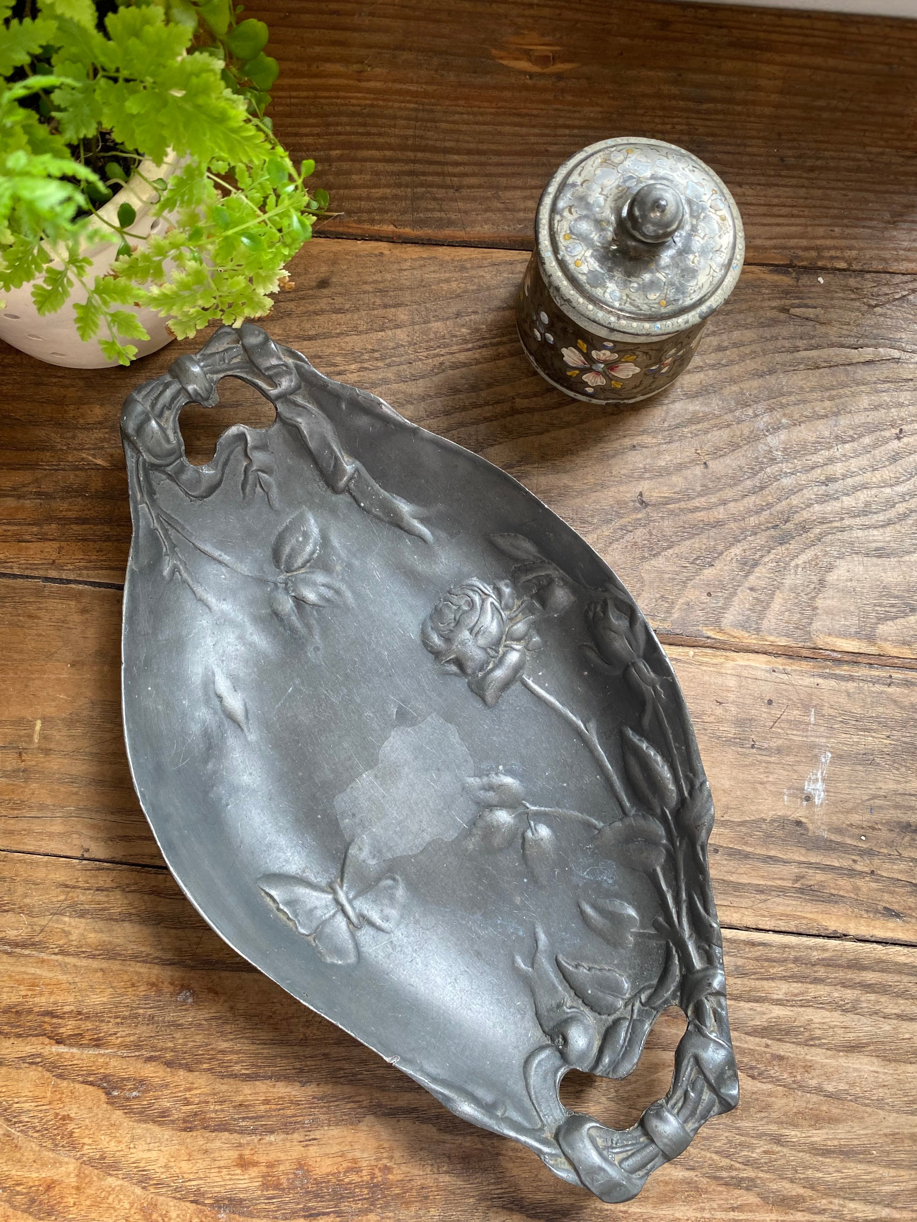 バラとリボンのレリーフが施されたエタンのトレイになります。重量もあり安定感を感じます。