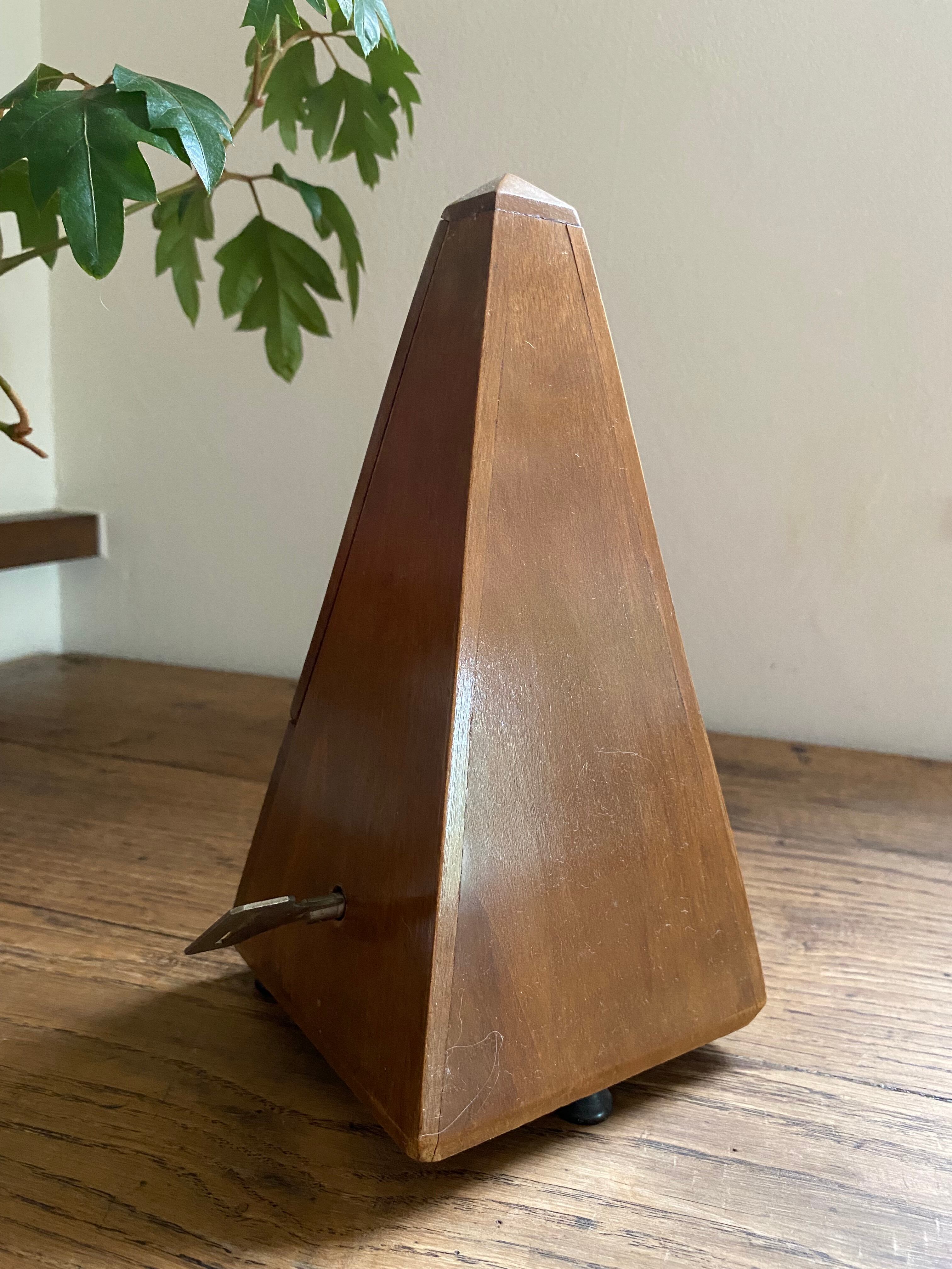近年ではプラスチック製のものが主流の中、高級なマホガニー材で作られたアンティークならではのメトロノーム、当時の音楽家達がこのメトロノームでリズムをとり曲を奏でていたのでしょうね。