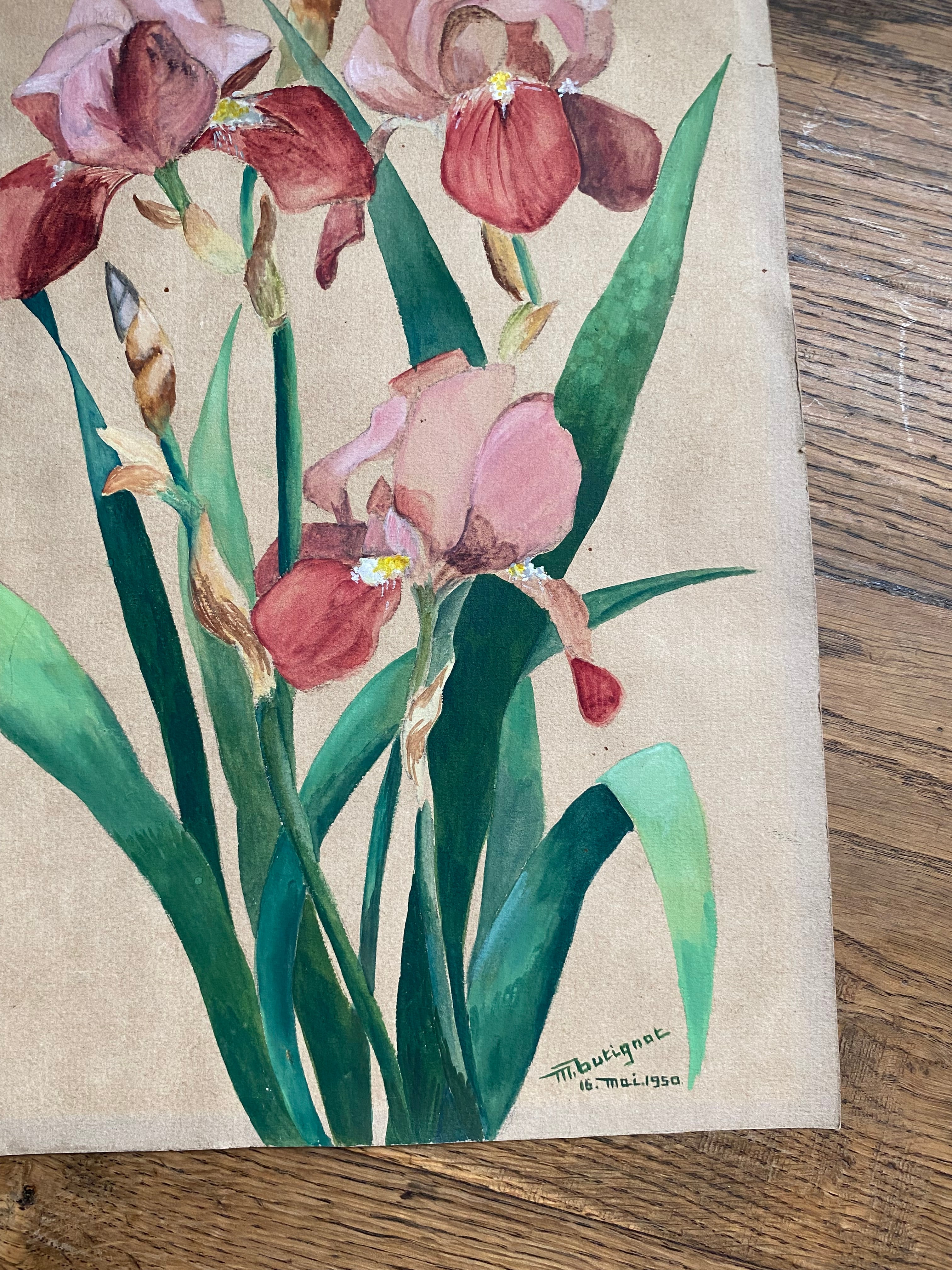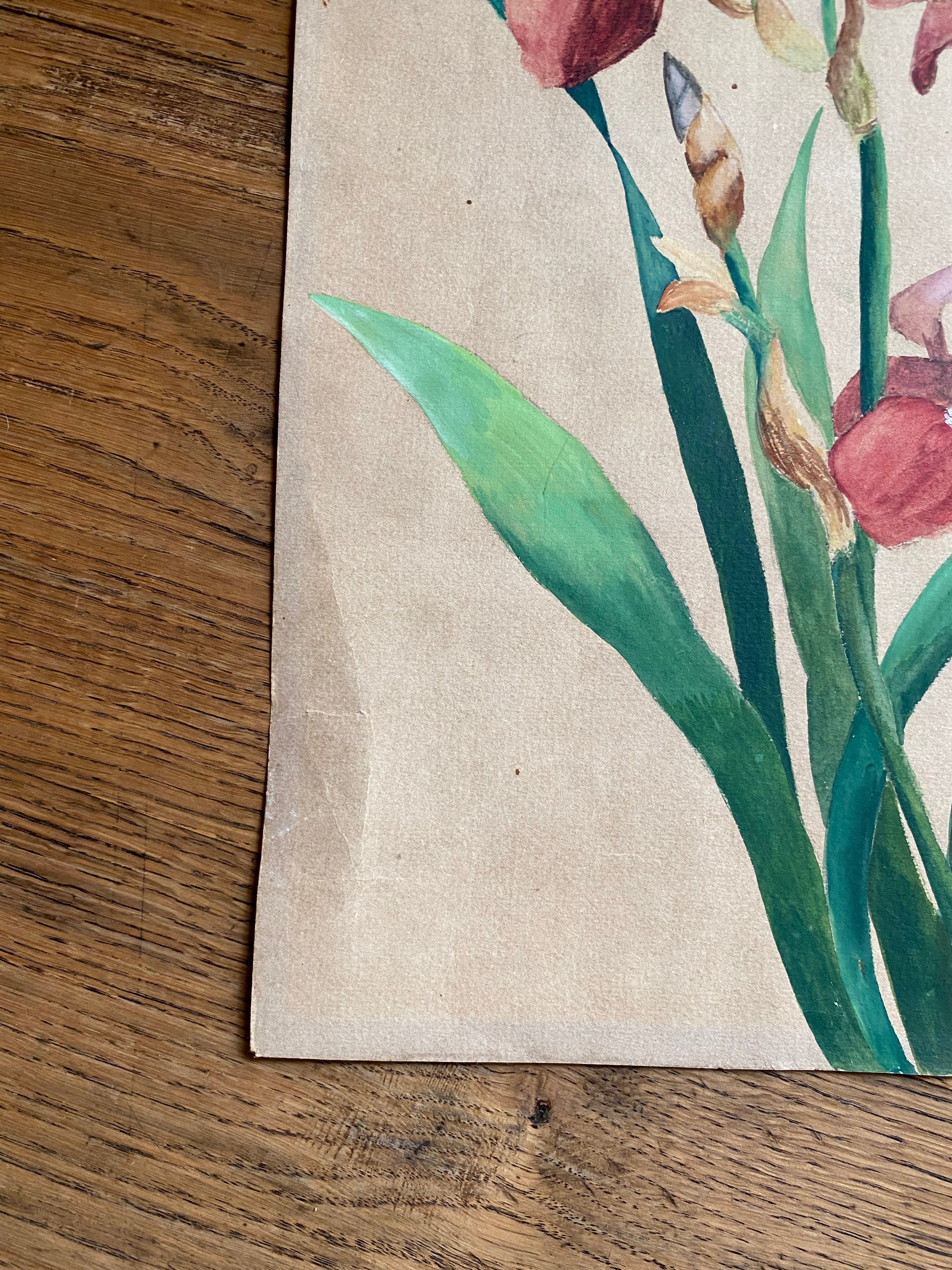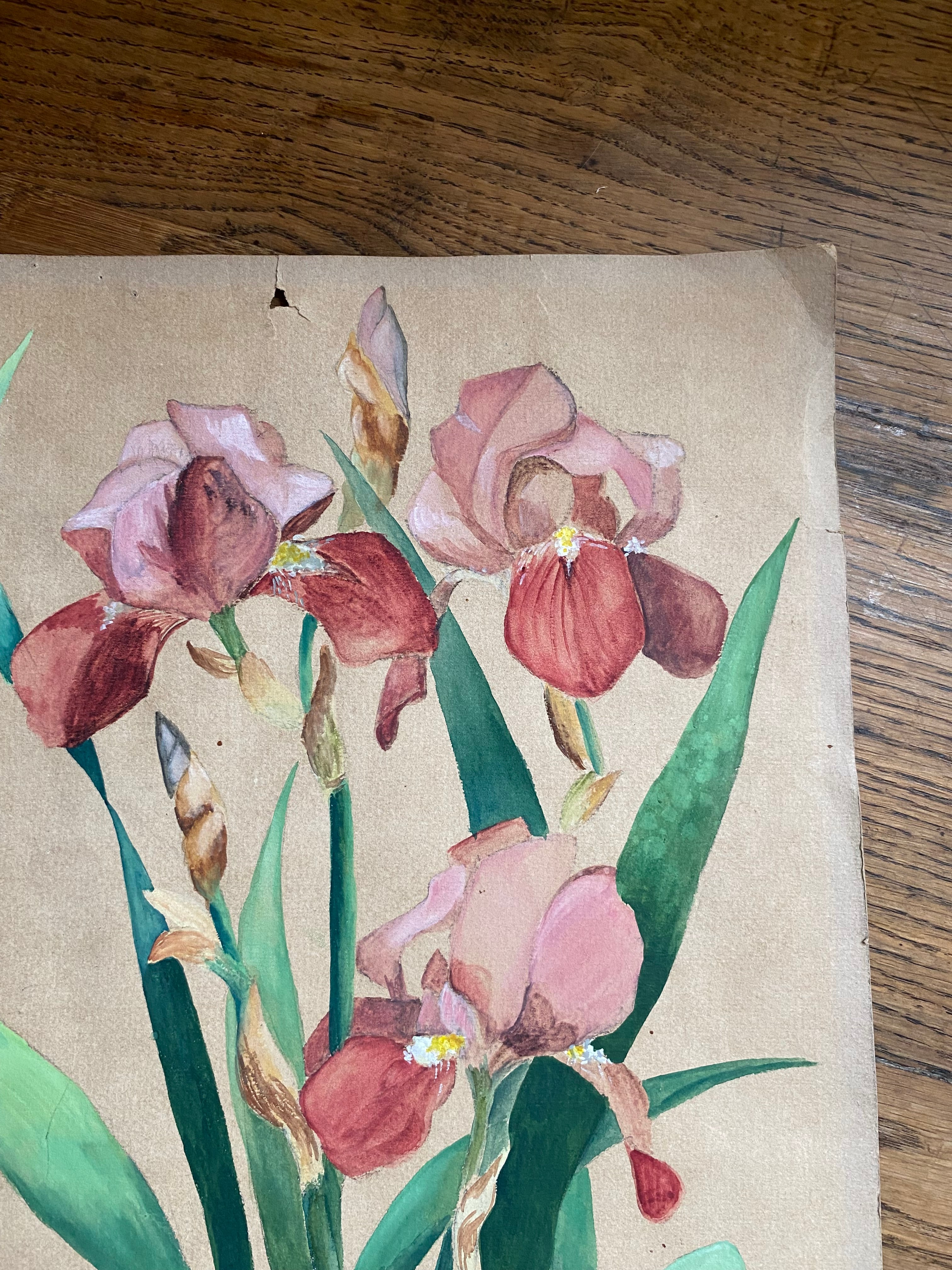 アイリスの水彩画 Iris フランスヴィンテージ 水彩画