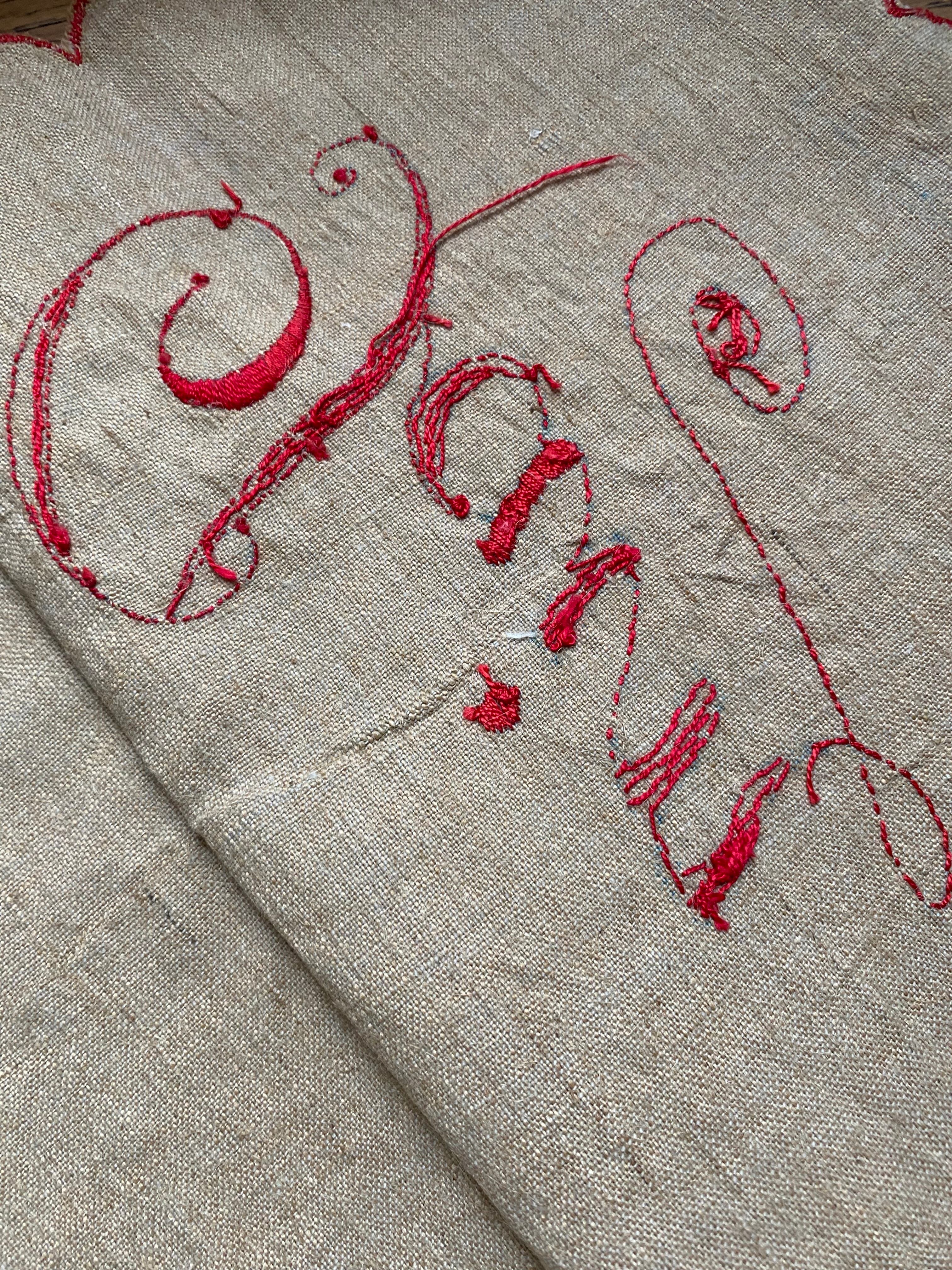 Painの麻袋 フランスアンティーク パン入れ ヴィンテージリネン 刺繍リネン