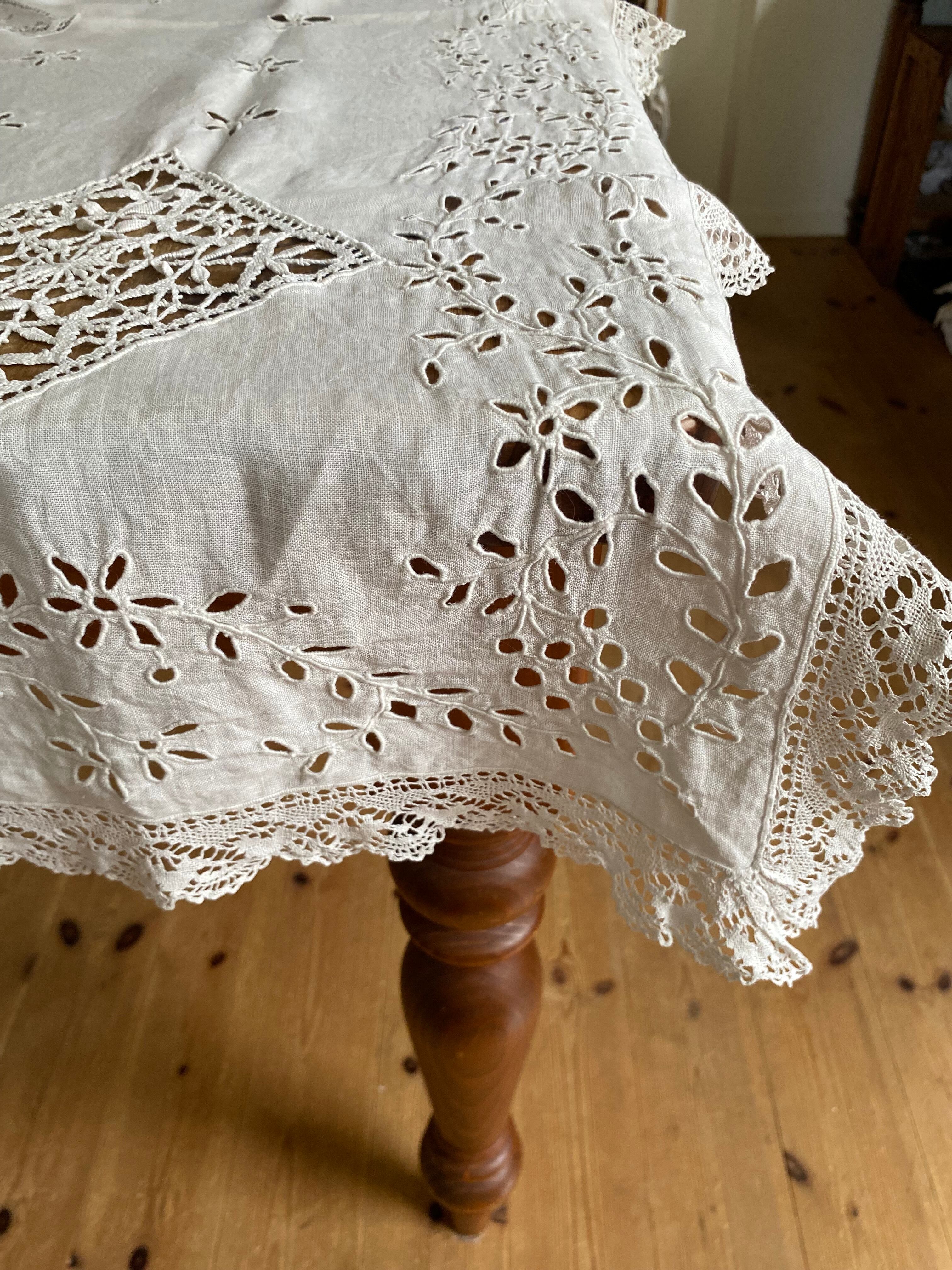 カットワークのテーブルクロス フランスアンティーク テーブルクロス ボビンレース