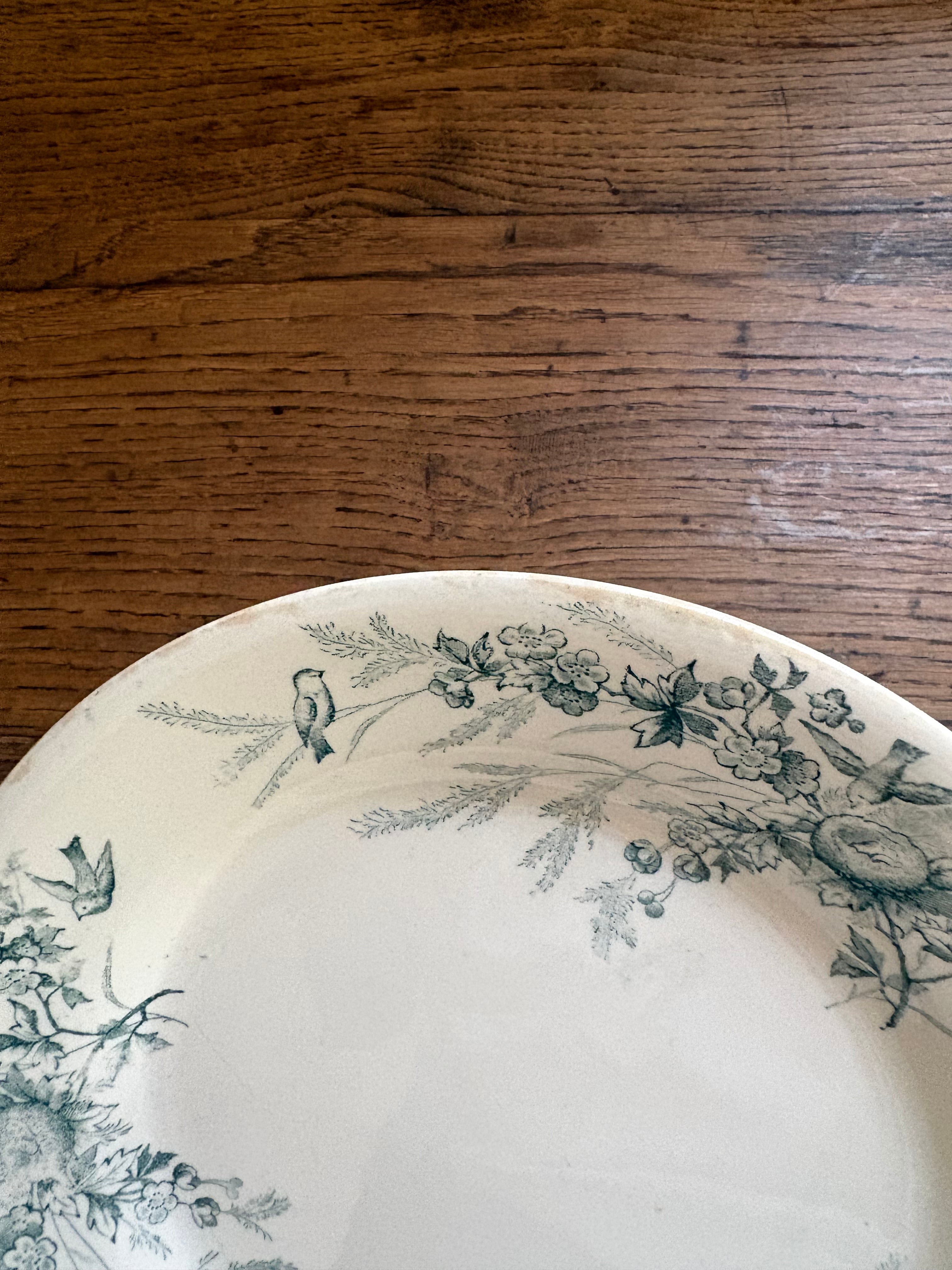 Linotte Creil et Montereau ① グリーンリノット フランスアンティーク アンティークプレート アンティーク食器