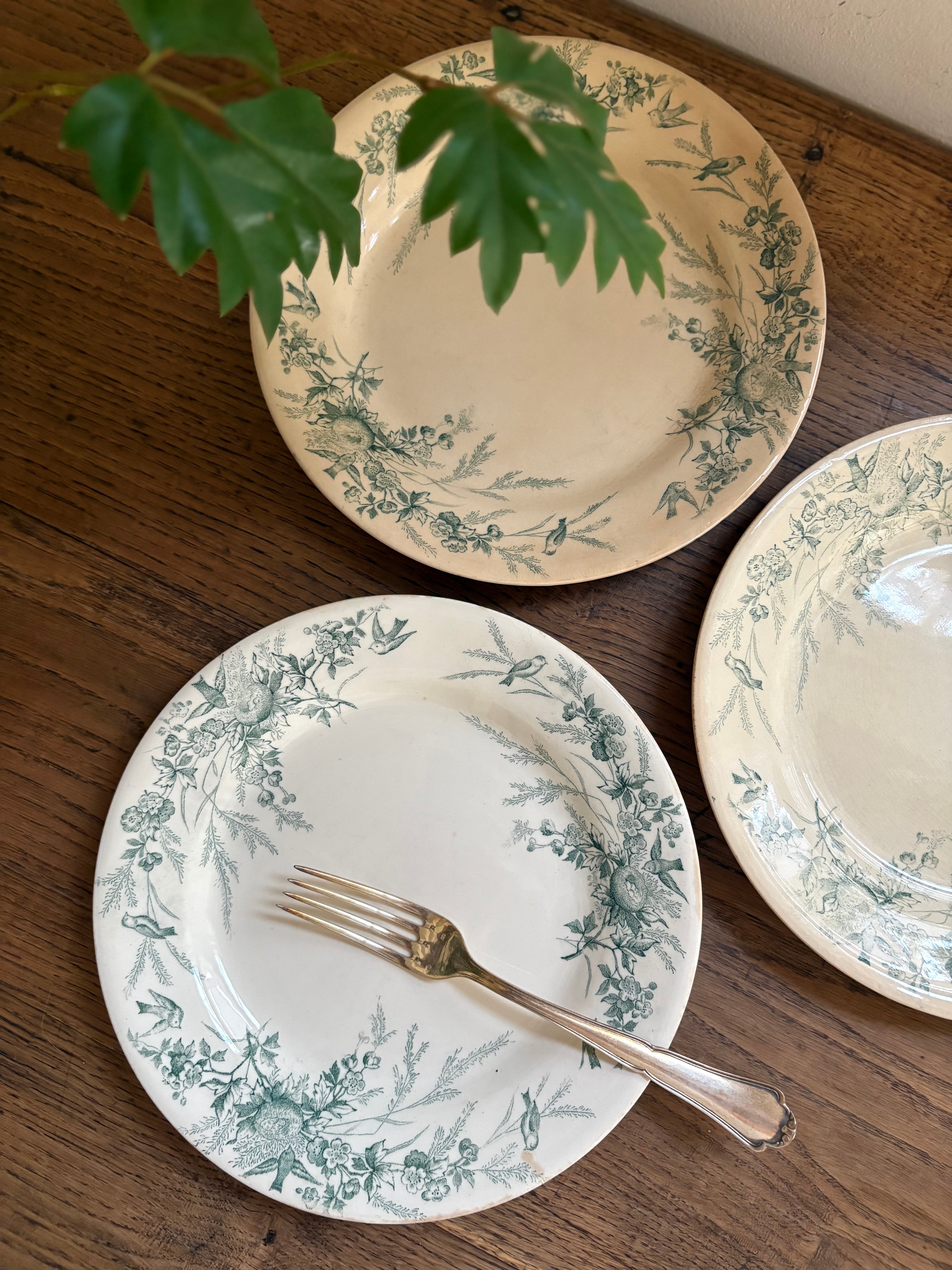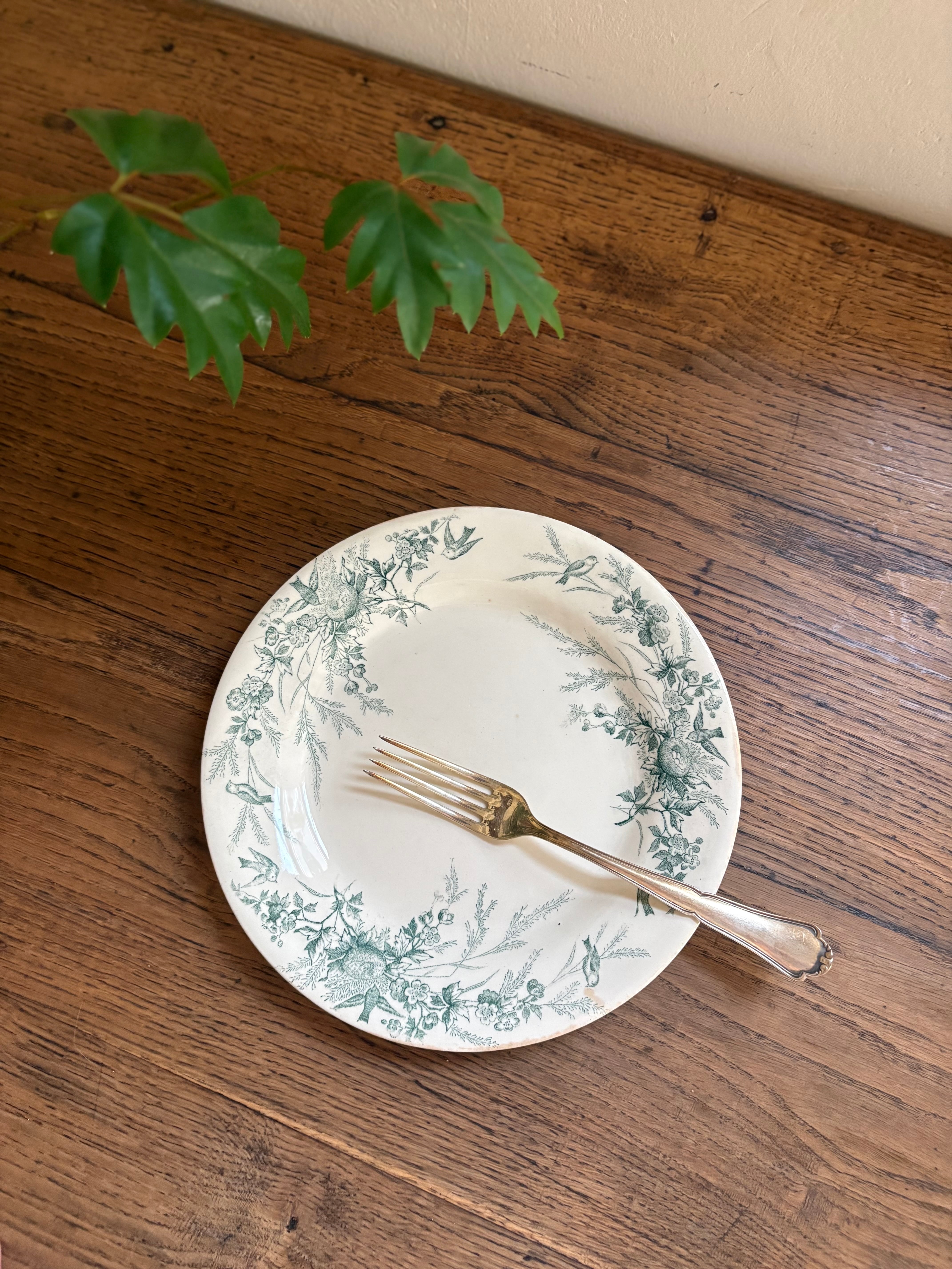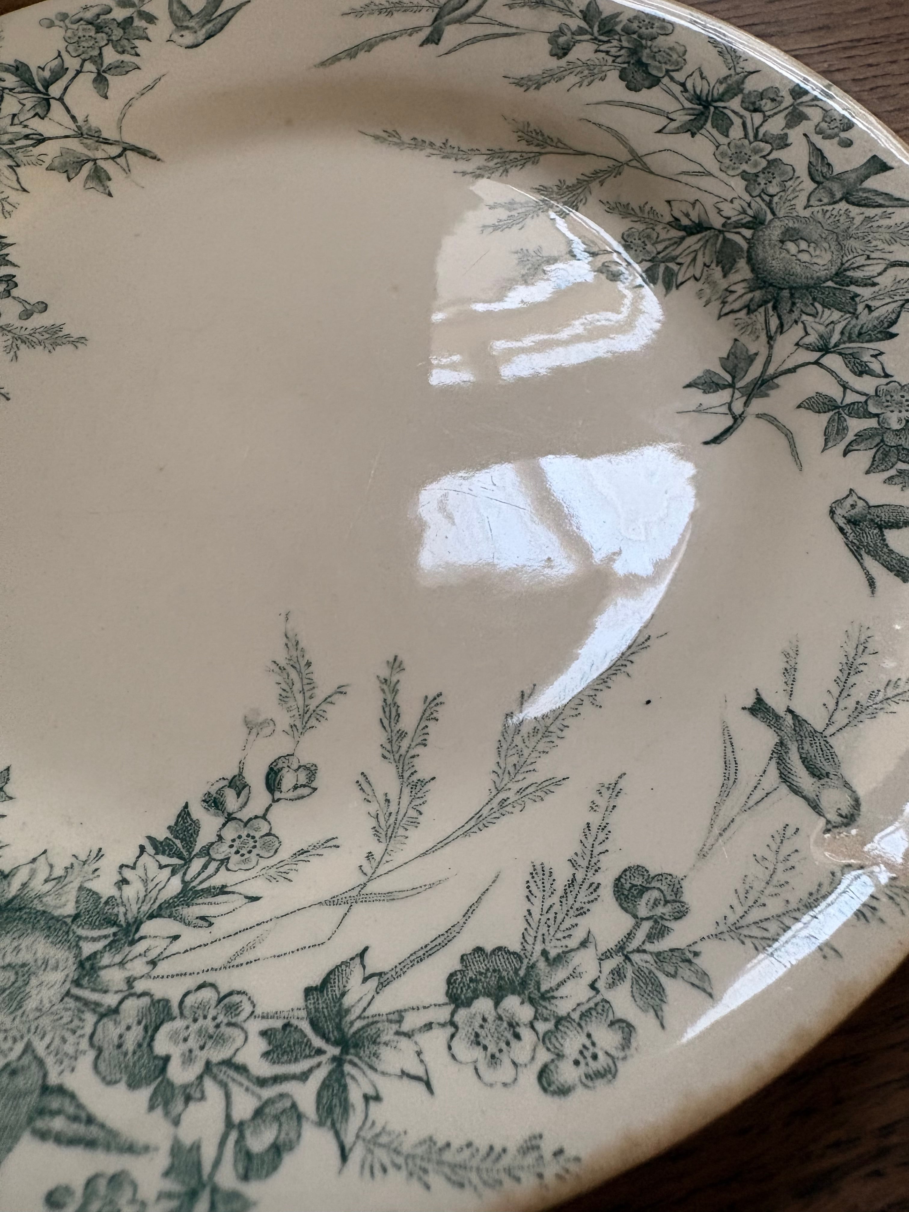 Linotte Creil et Montereau ⑨ グリーンリノット フランスアンティーク アンティークプレート アンティーク食器