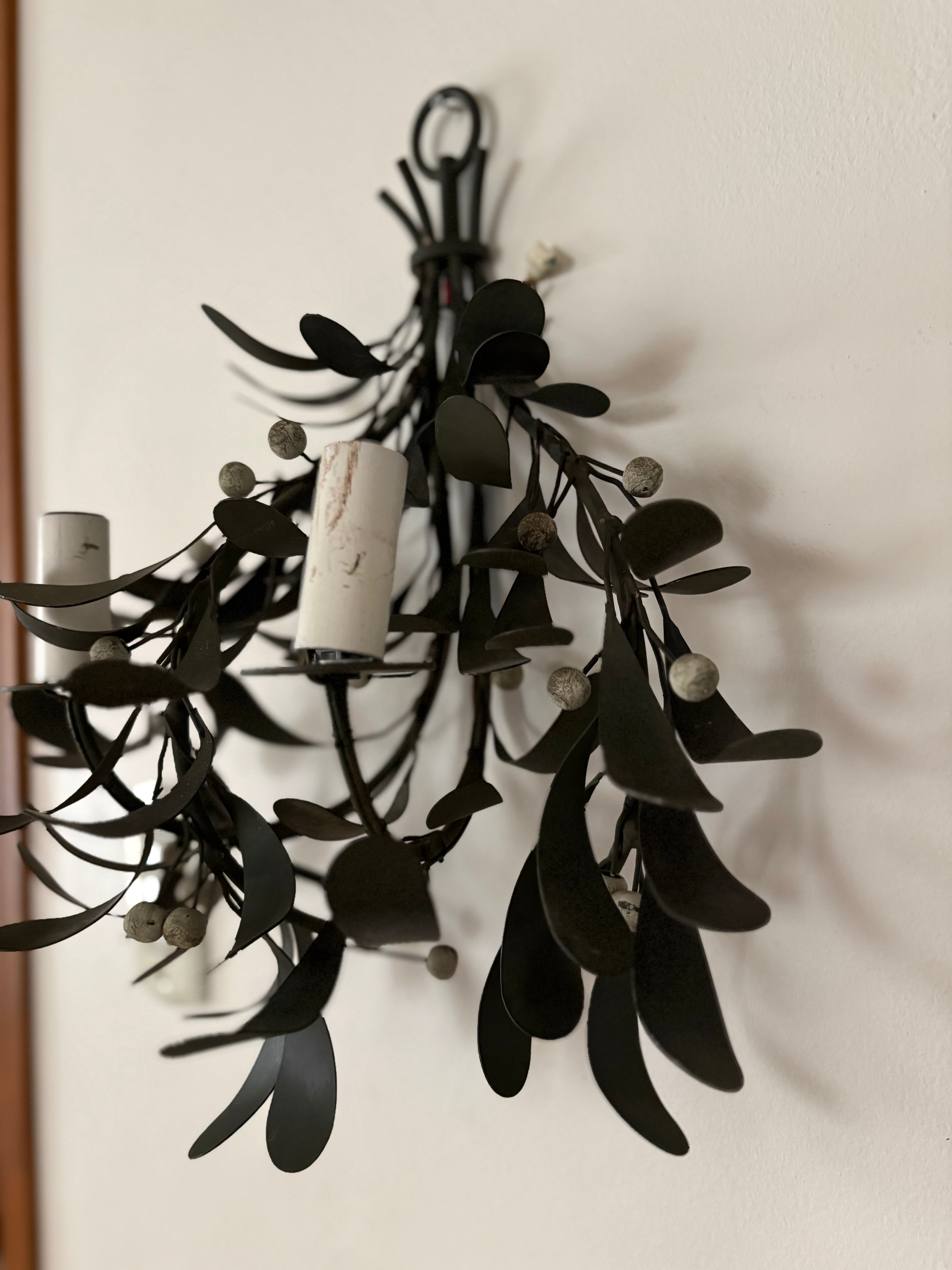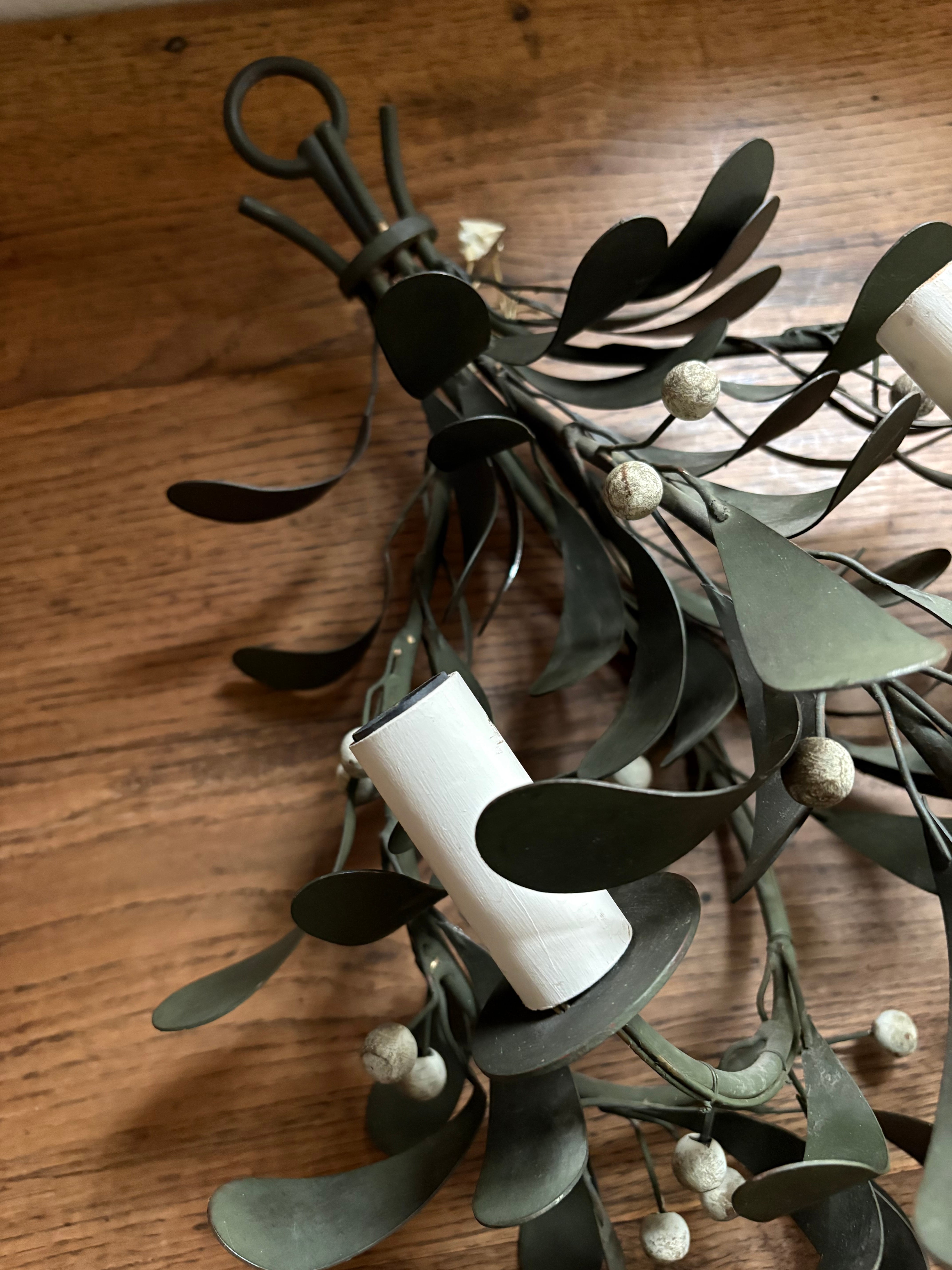ヤドリギをスワッグのように束ねた照明、