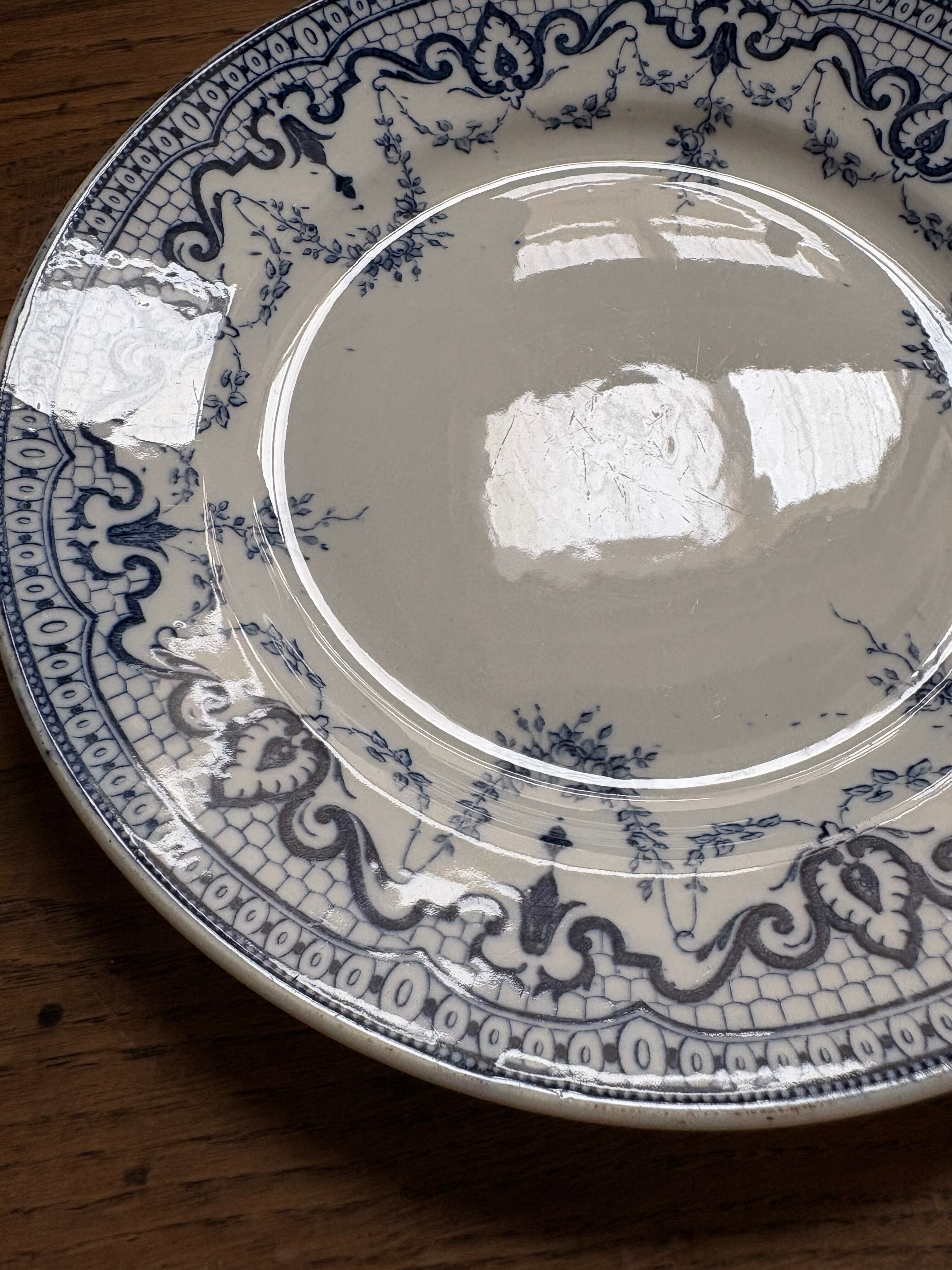 Creil et Montereau B 野薔薇のガーランドが可愛いデザートプレート フランスアンティーク アンティークプレート クレイユモントロー