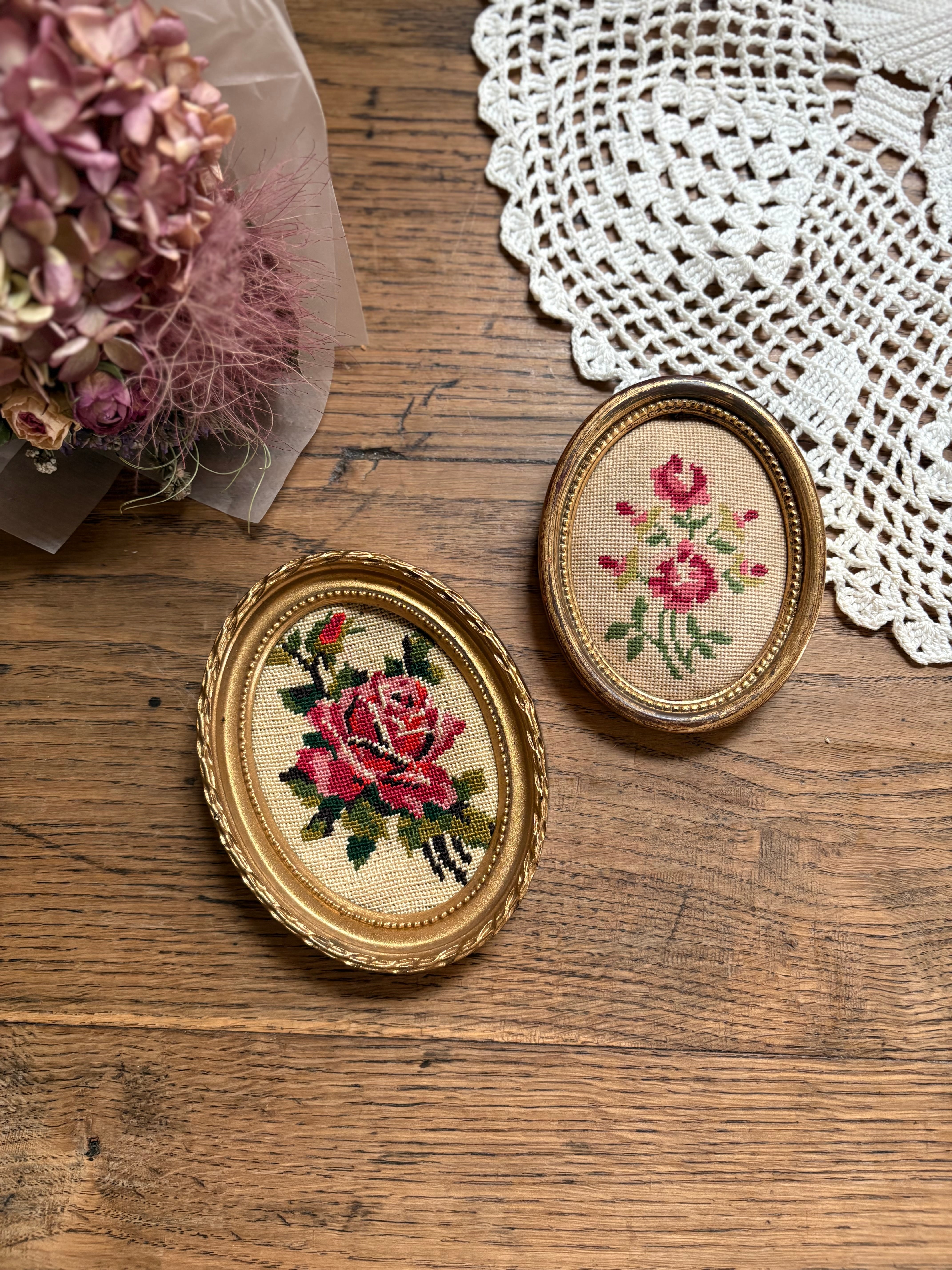 薔薇のクロスステッチ 額装 フランスヴィンテージ ローズ
