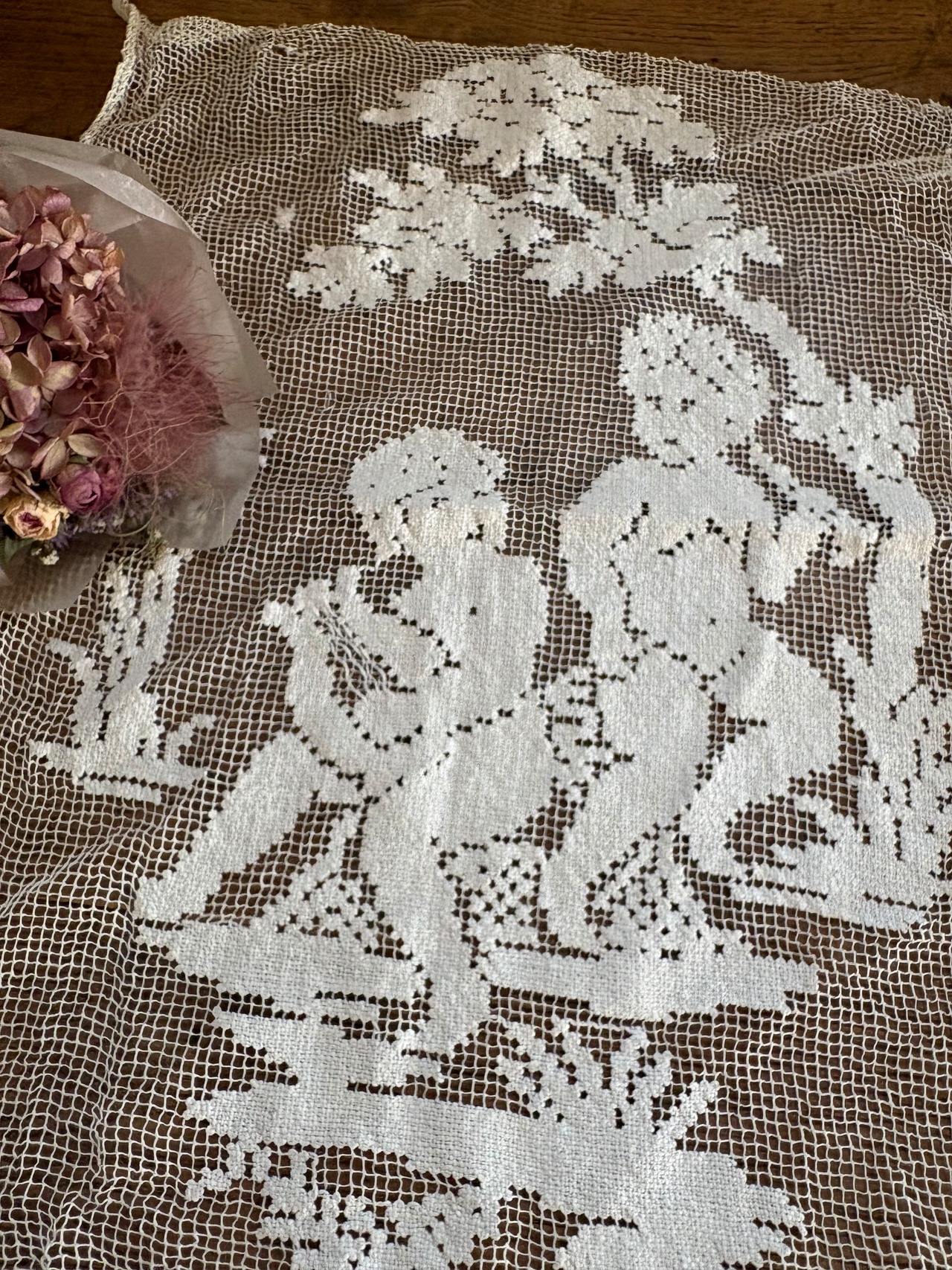 天使モチーフのフィレレース フランスアンティーク アンティークレース フィレレース