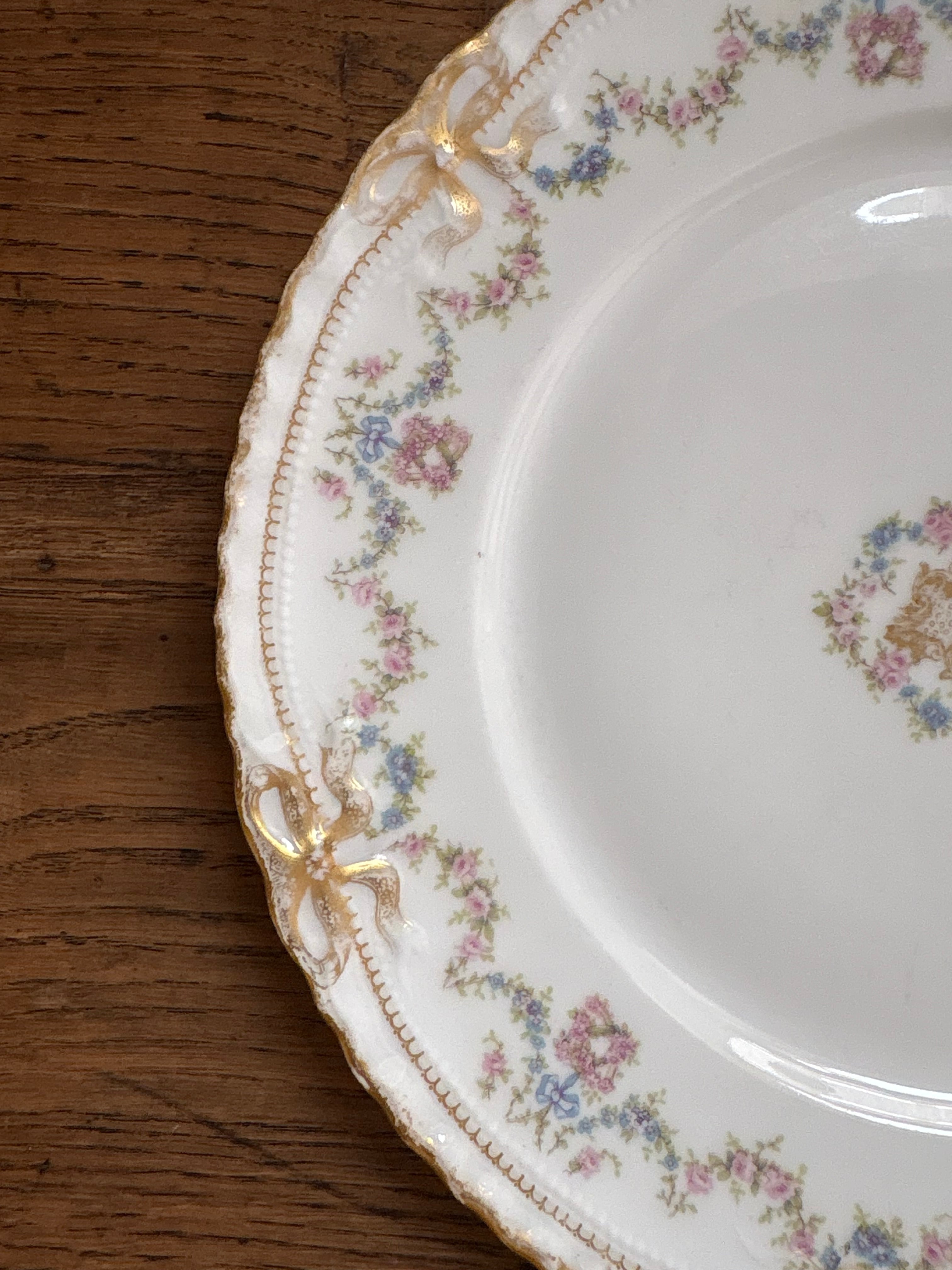 Limoges 金彩とリボン、小花のガーランドプレート リモージュ フランスアンティーク アンティークプレート