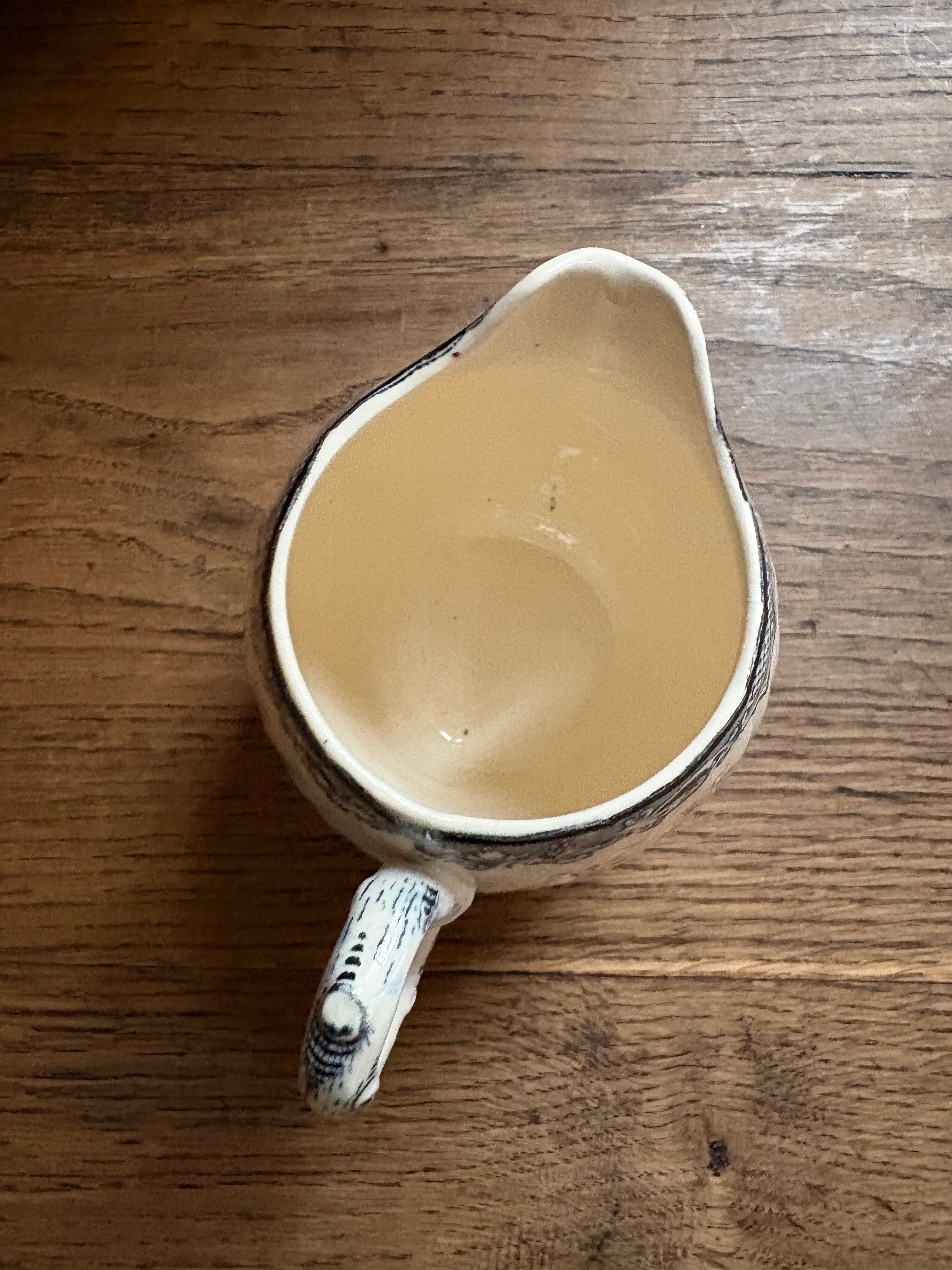コロンと丸みを帯びたクリーマーには波打つレリーフがとても美しい器となっております。