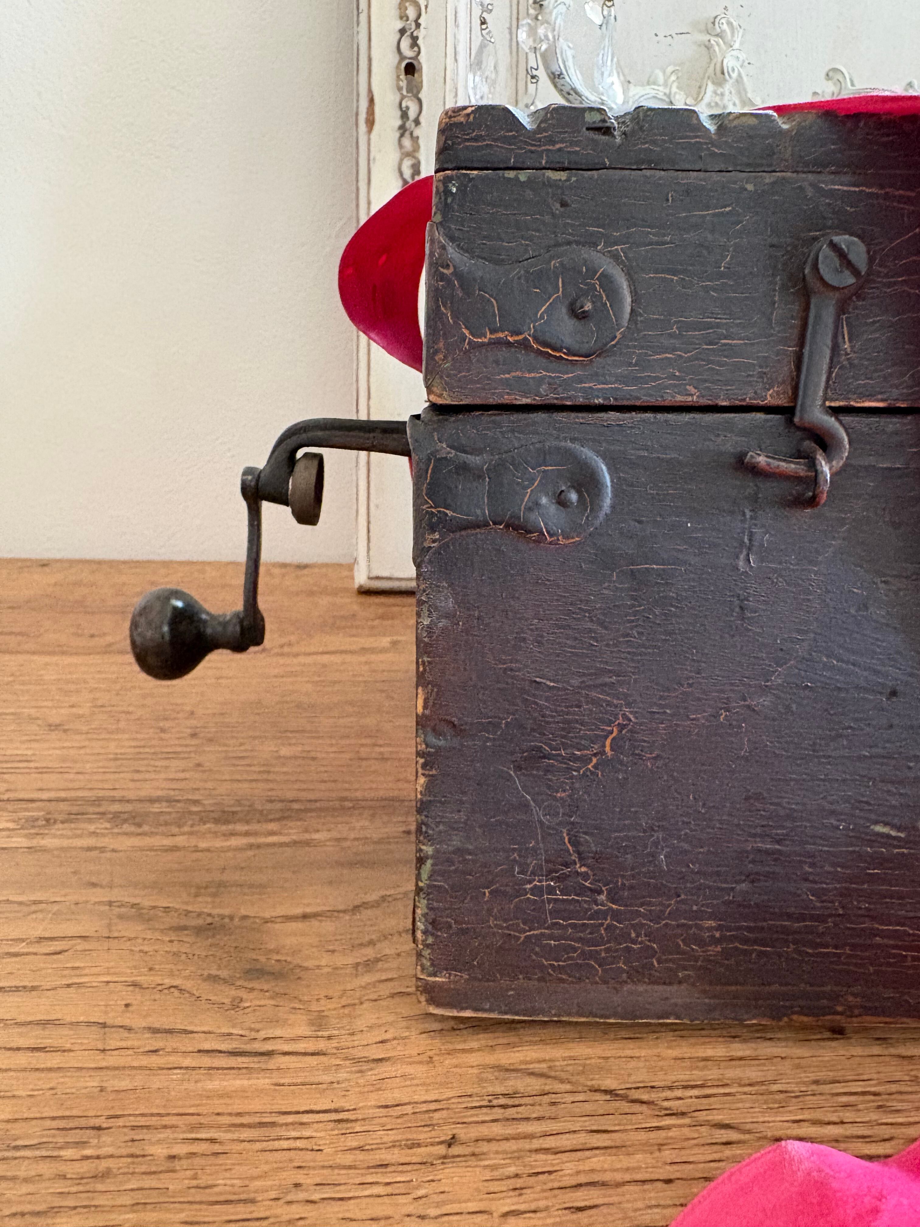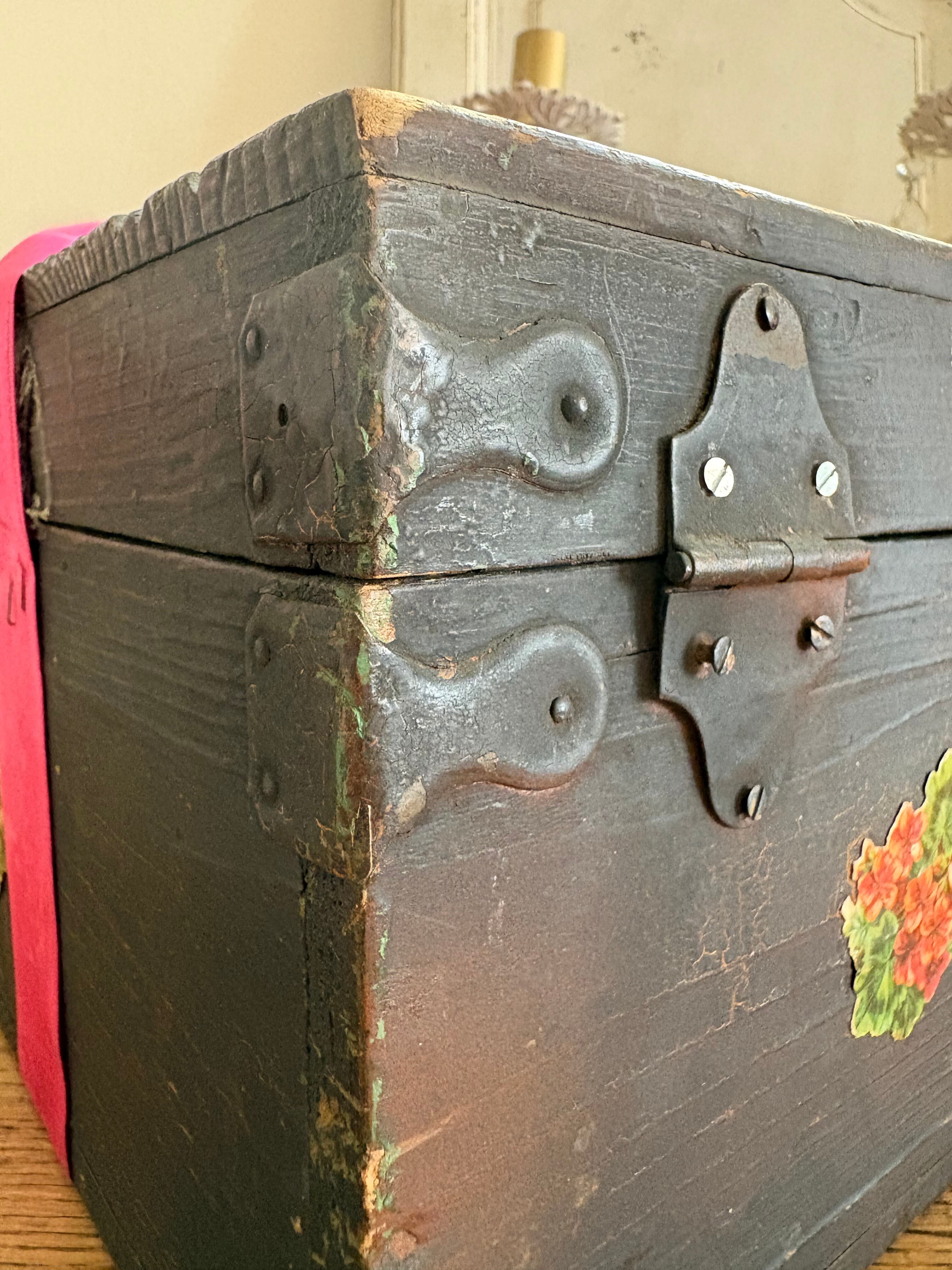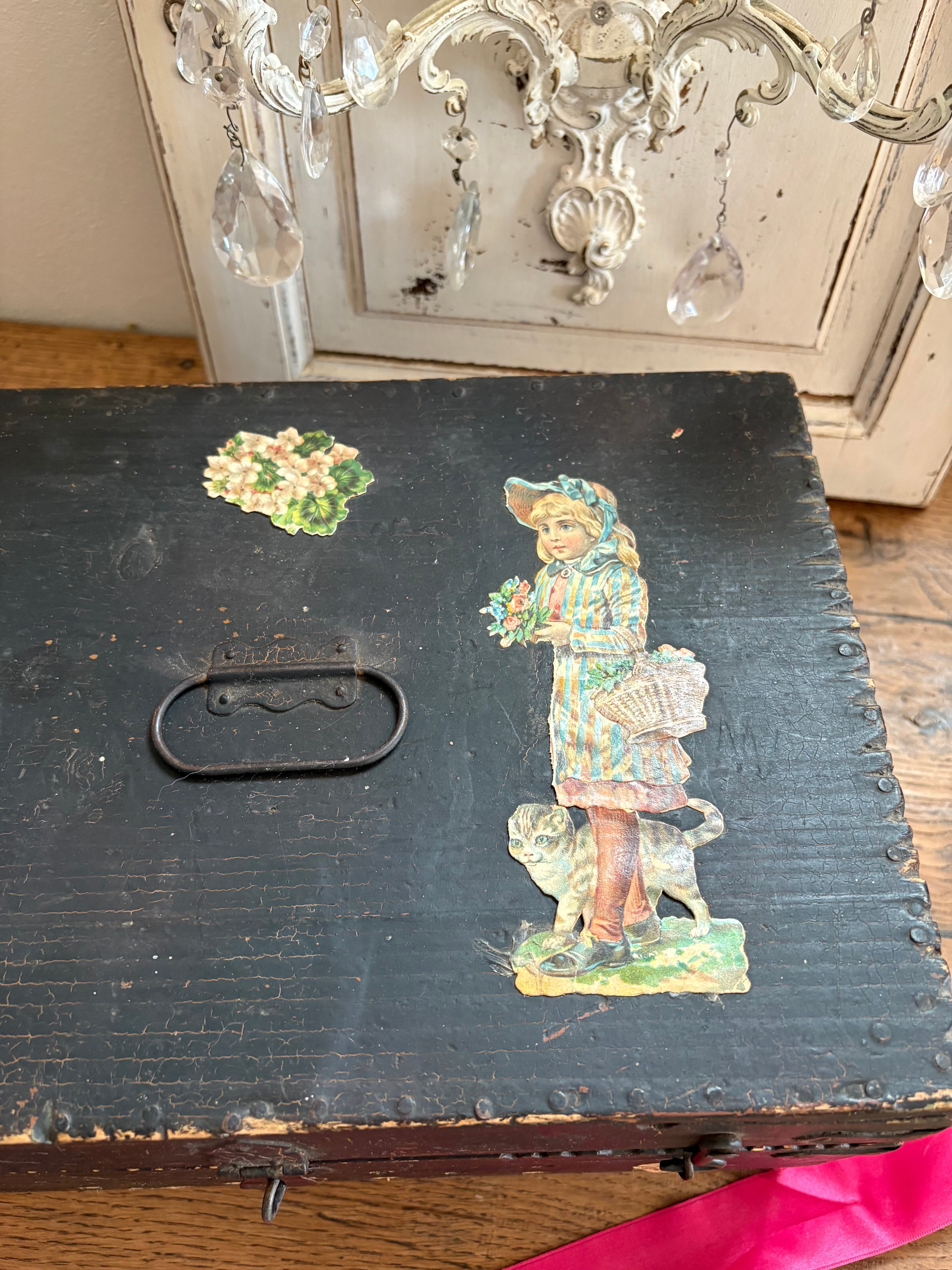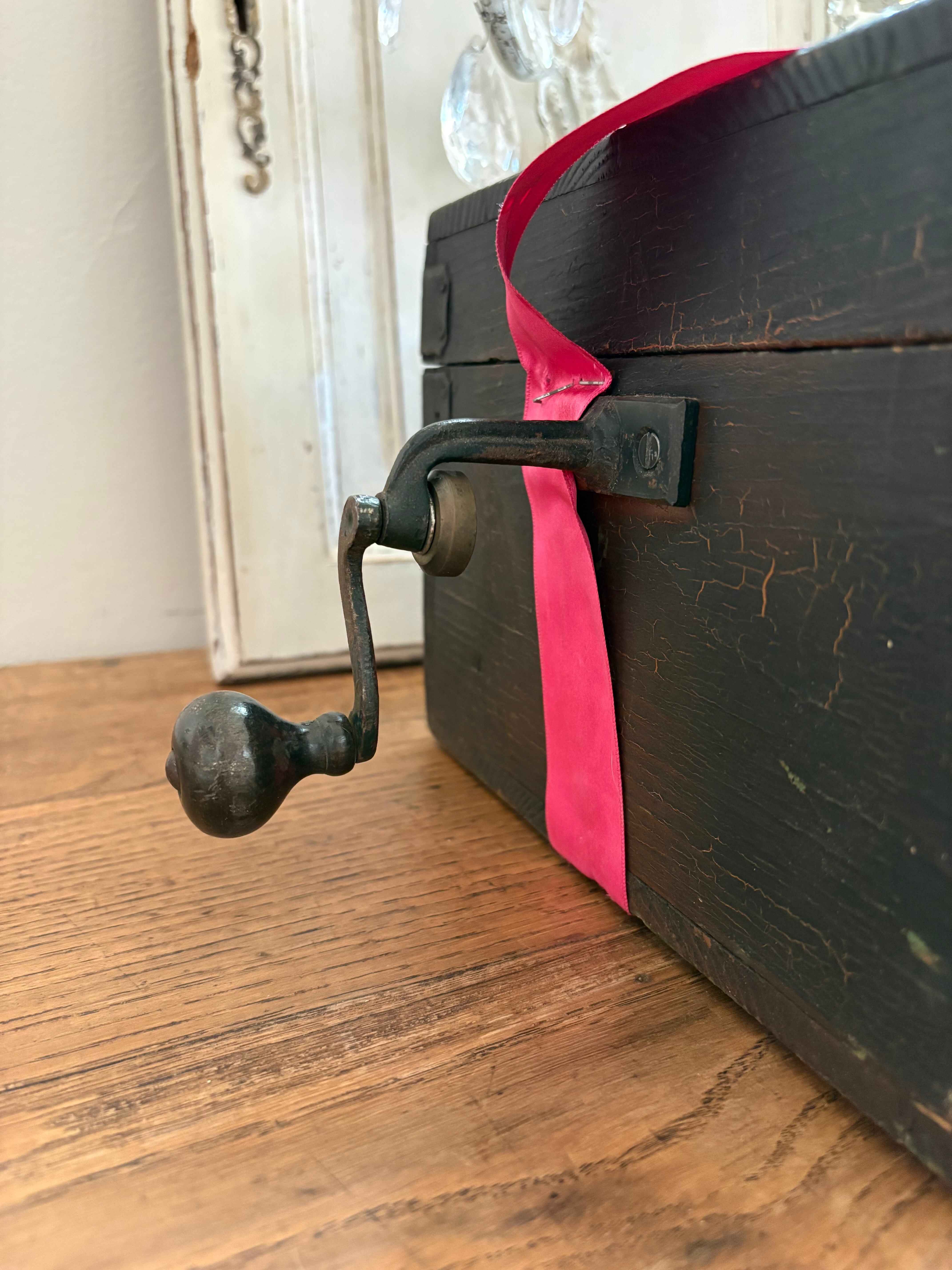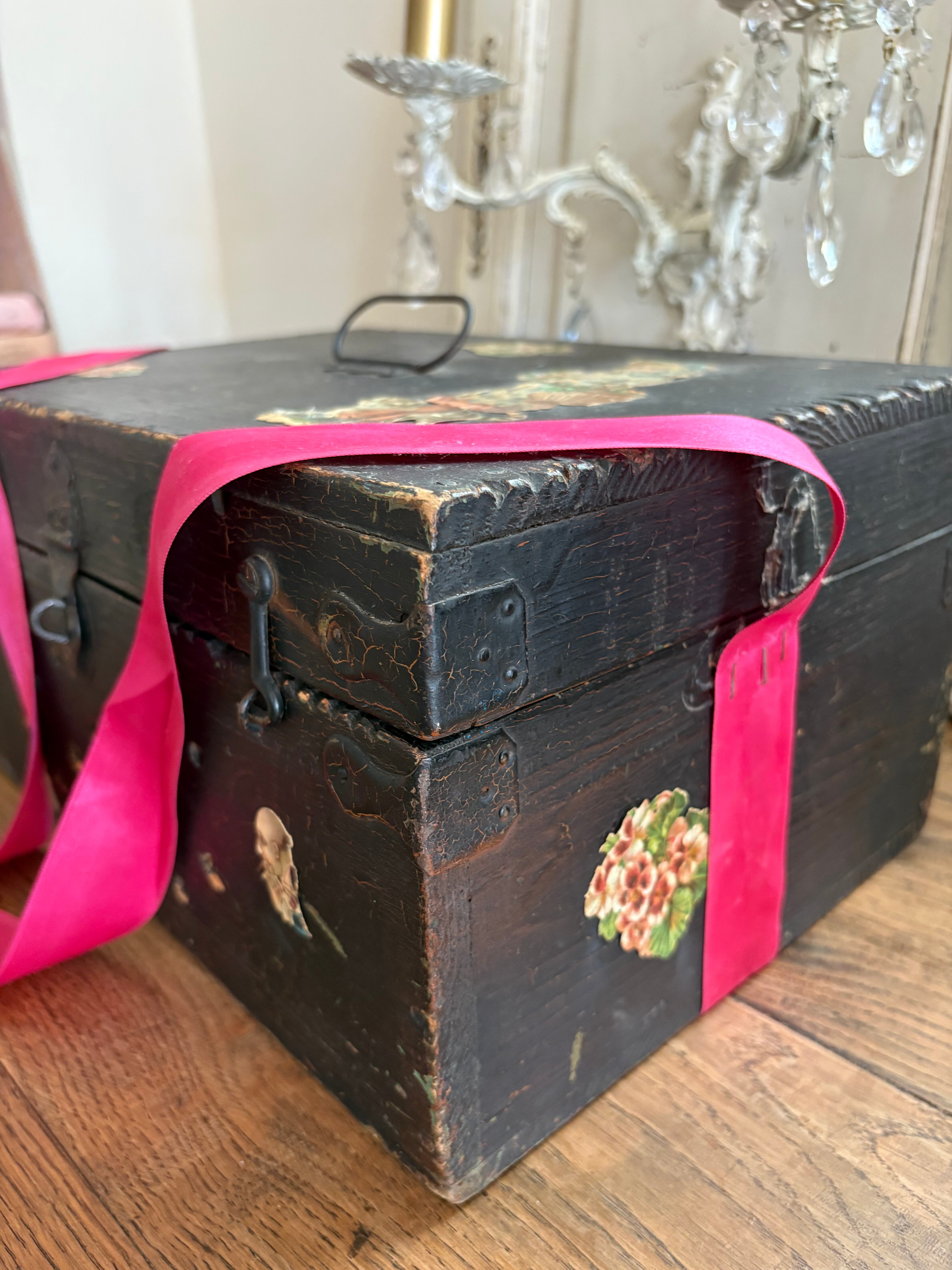 木箱は黒塗りされ蝶番や釘も味わいを感じます。