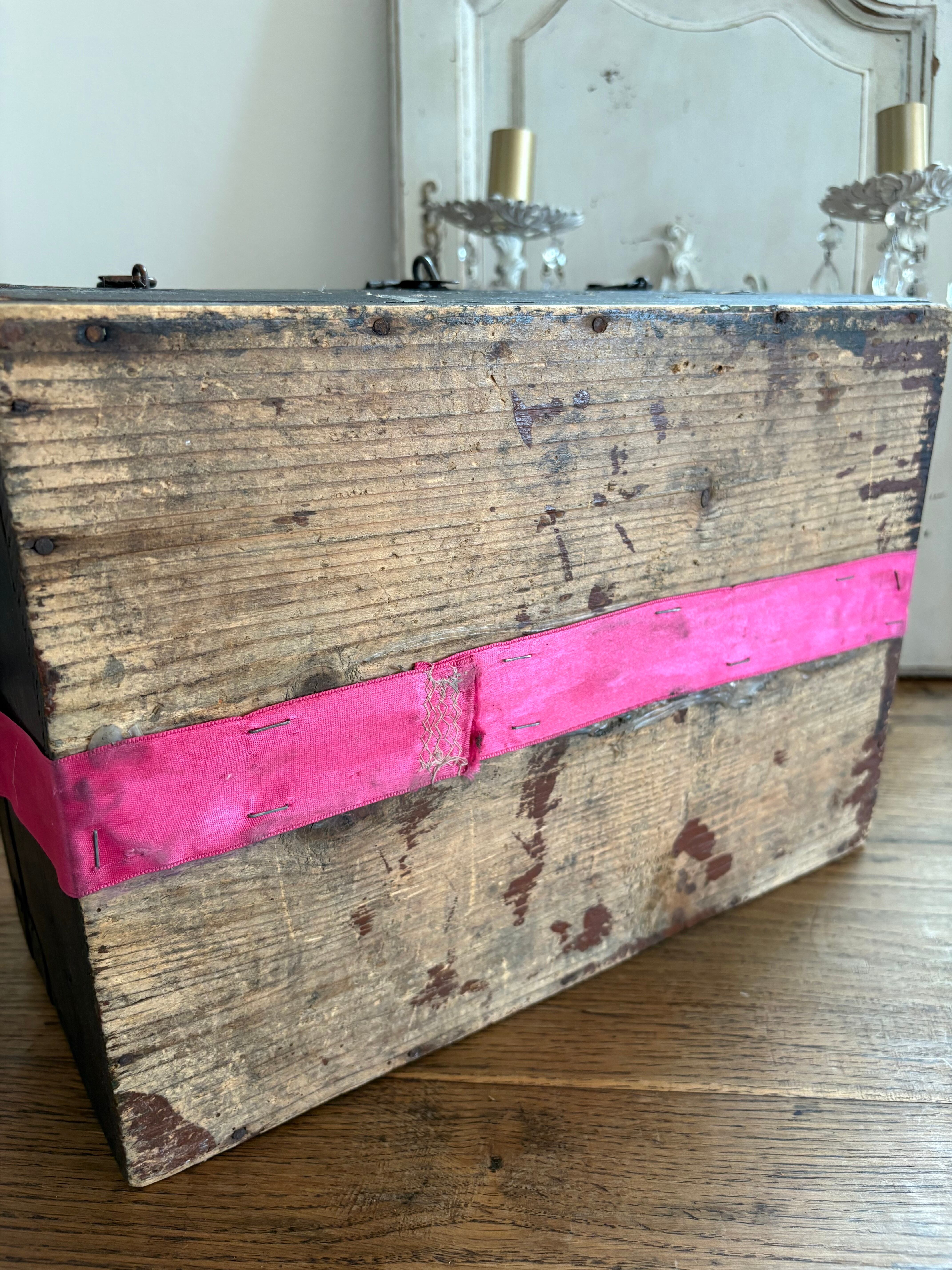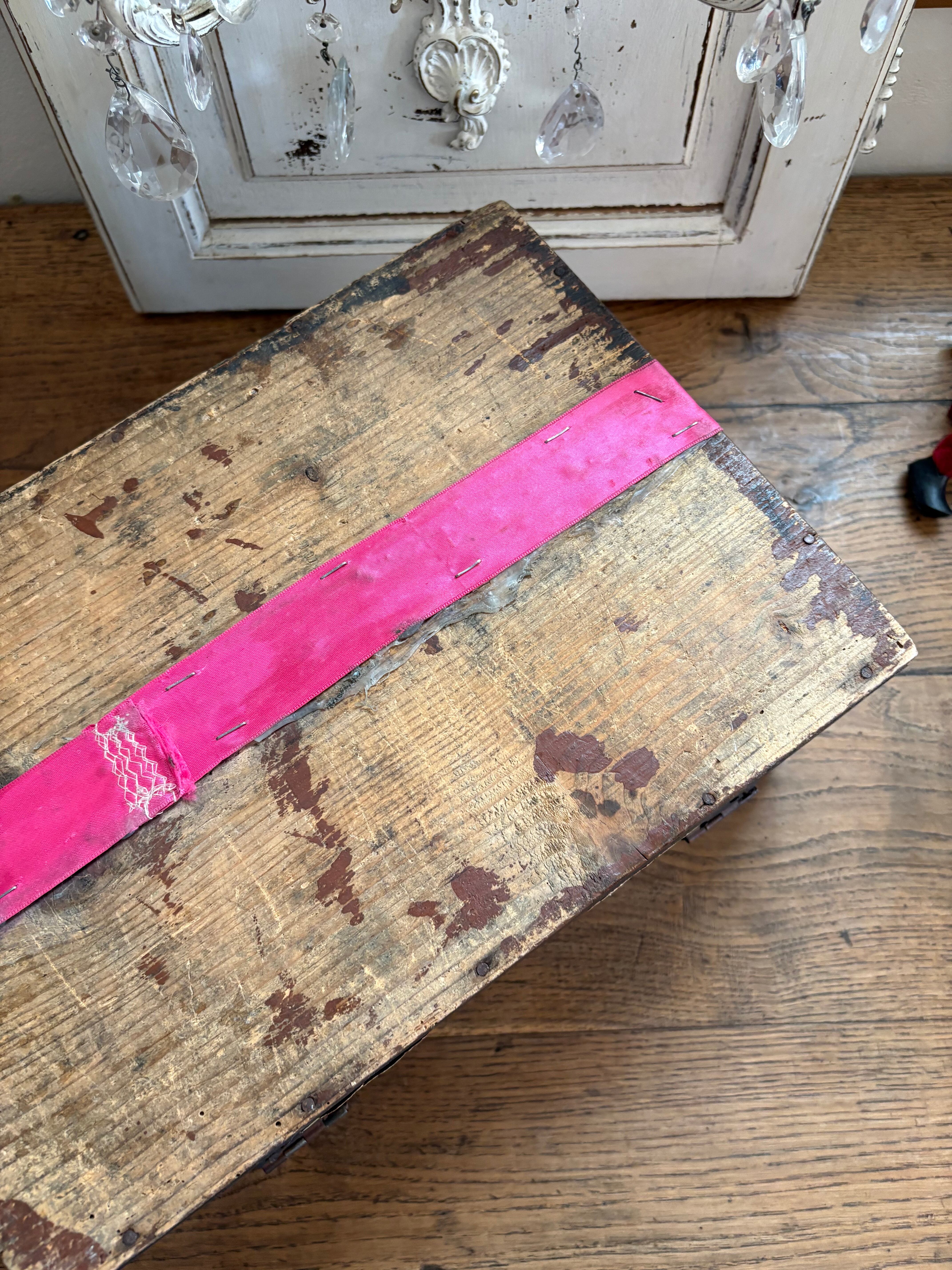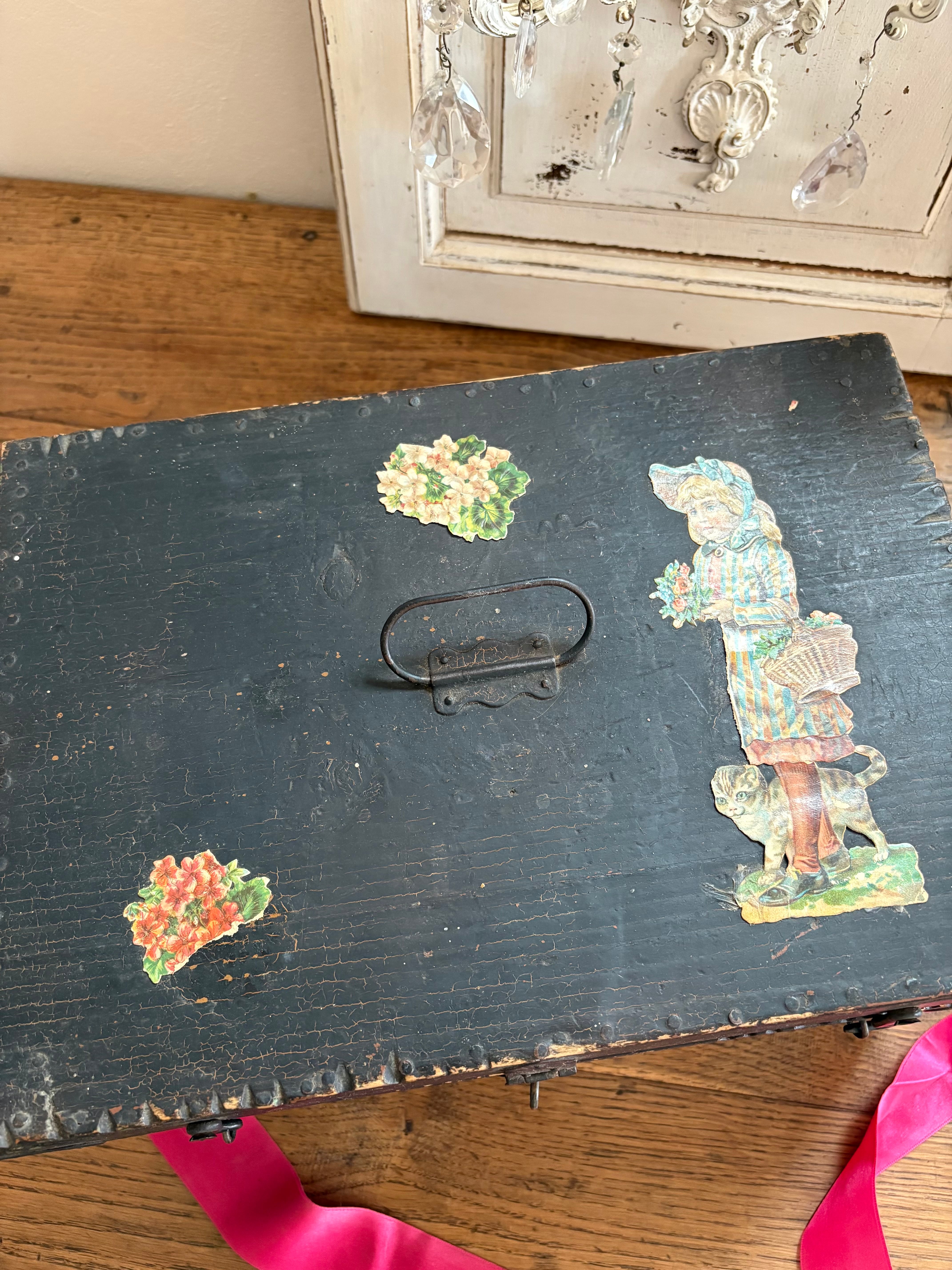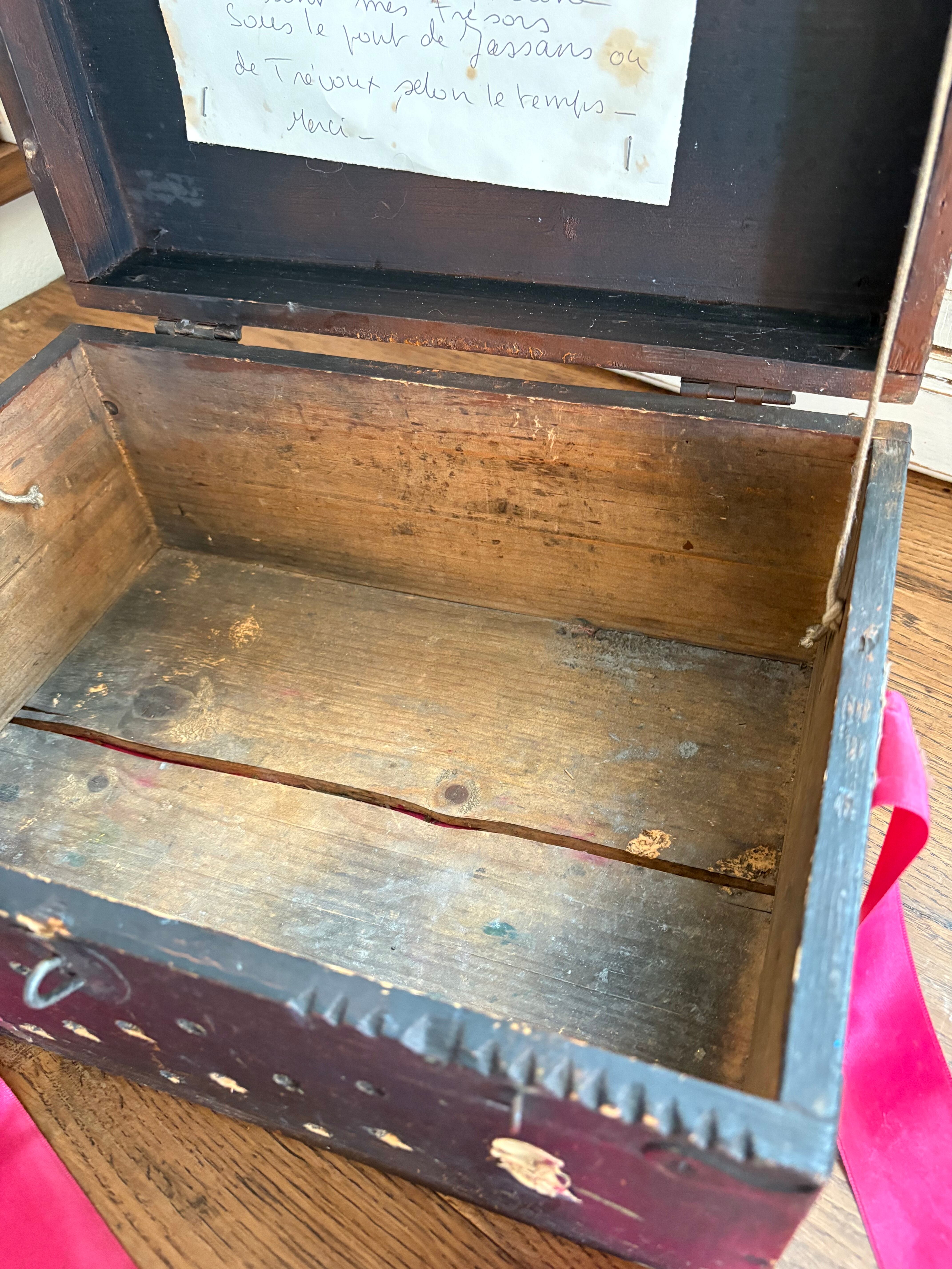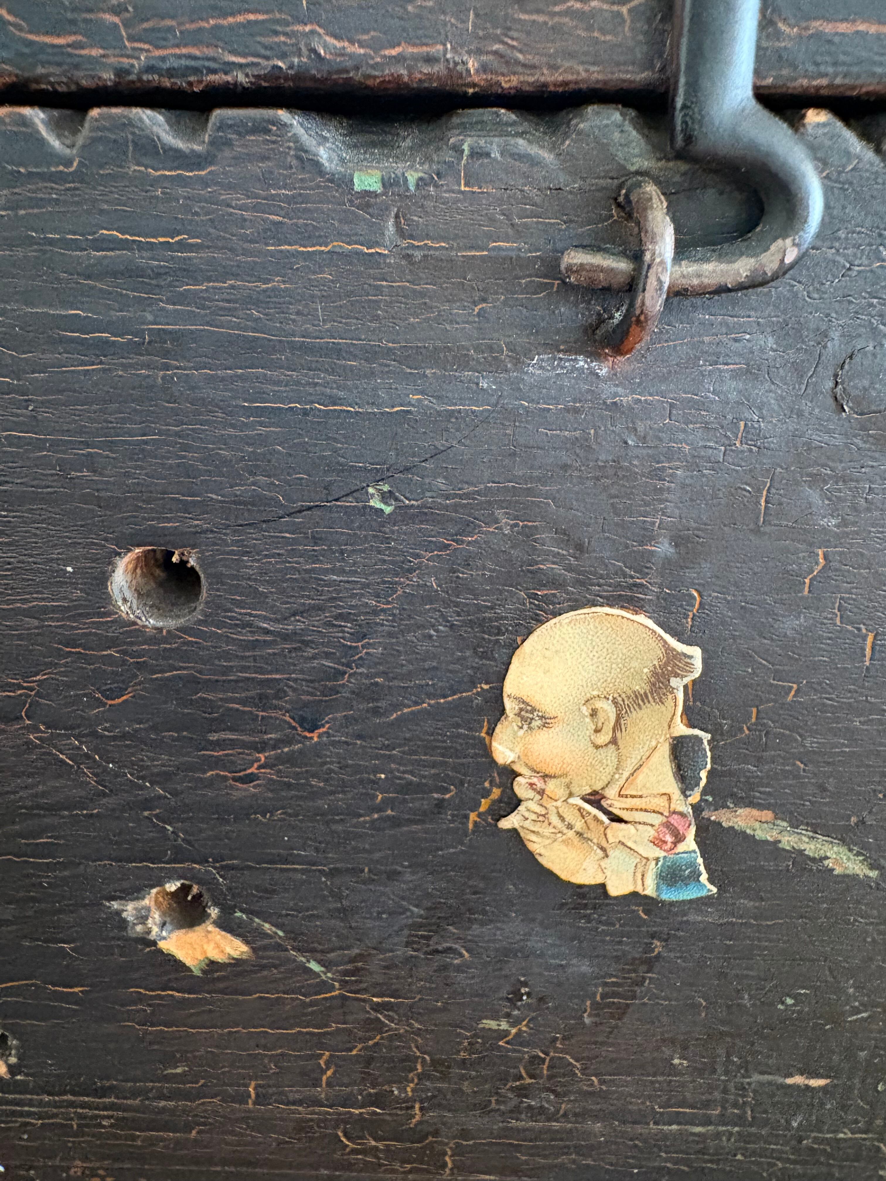 木箱は黒塗りされ蝶番や釘も味わいを感じます。