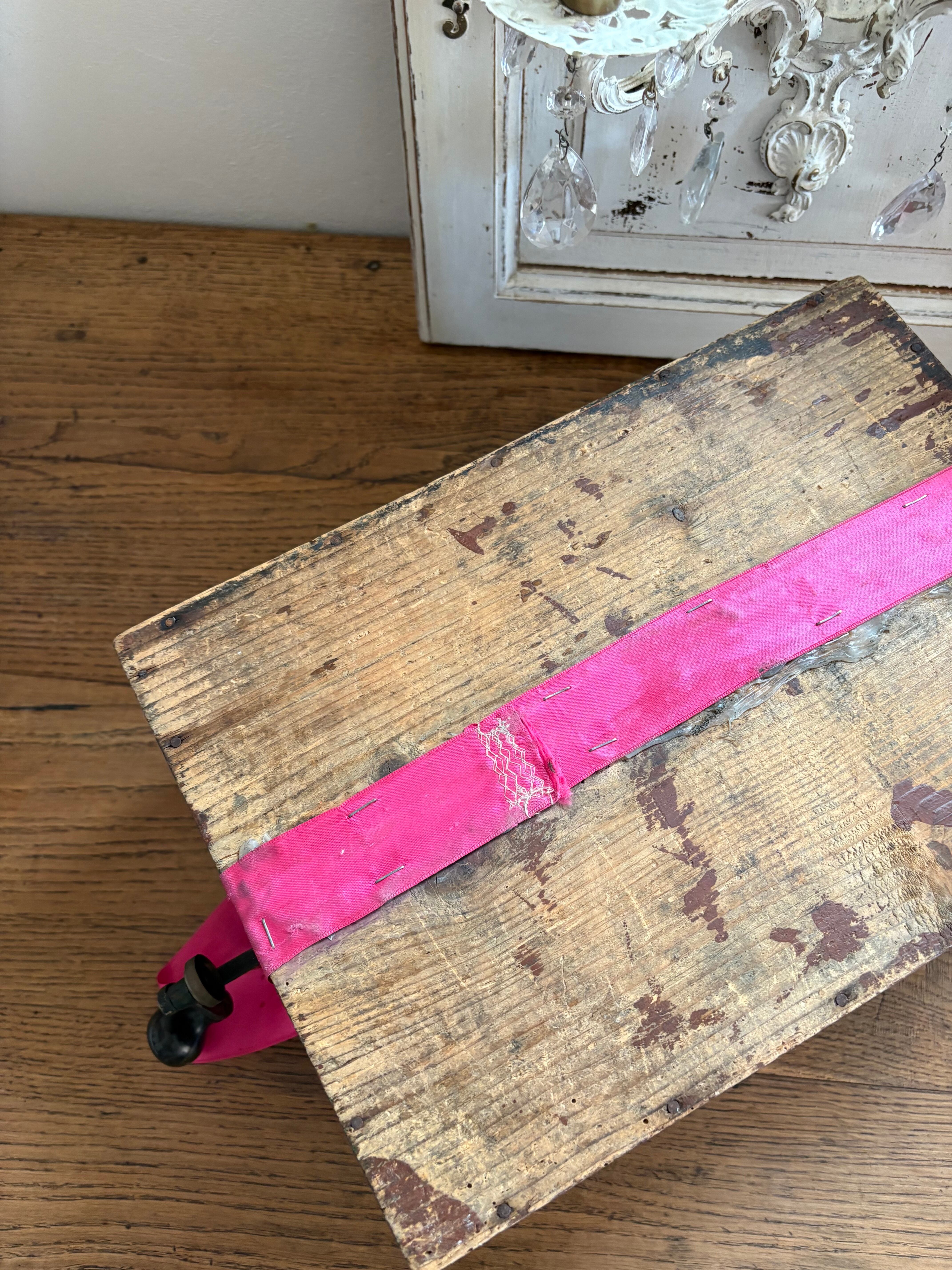 ピンクのサテンリボンはホッチキスで止められボンドで貼り付けてあります。安定感はございます。
