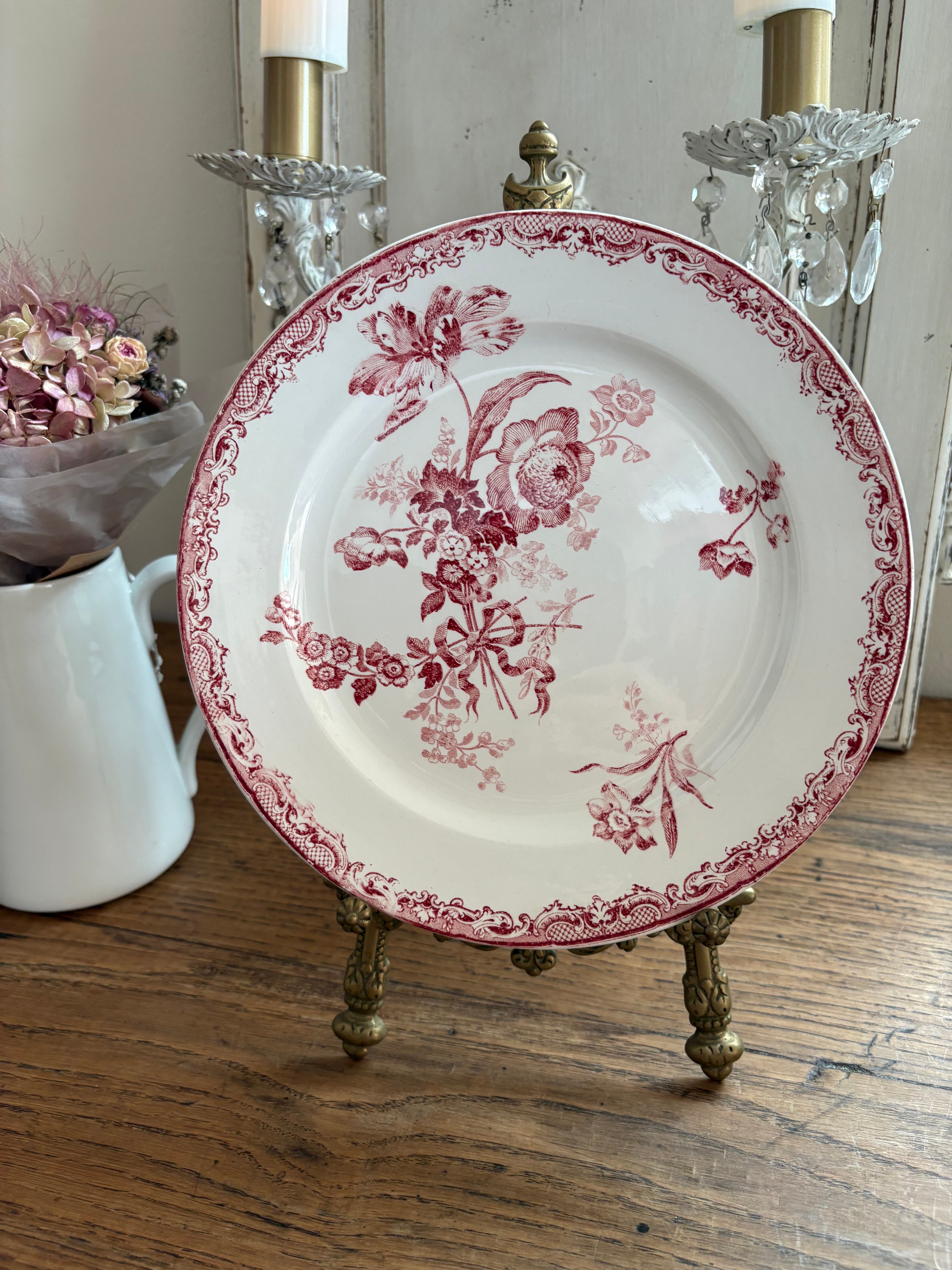 Sarrguemines Fontanges フラットプレート フランスアンティーク アンティークプレート フォンタンジュ