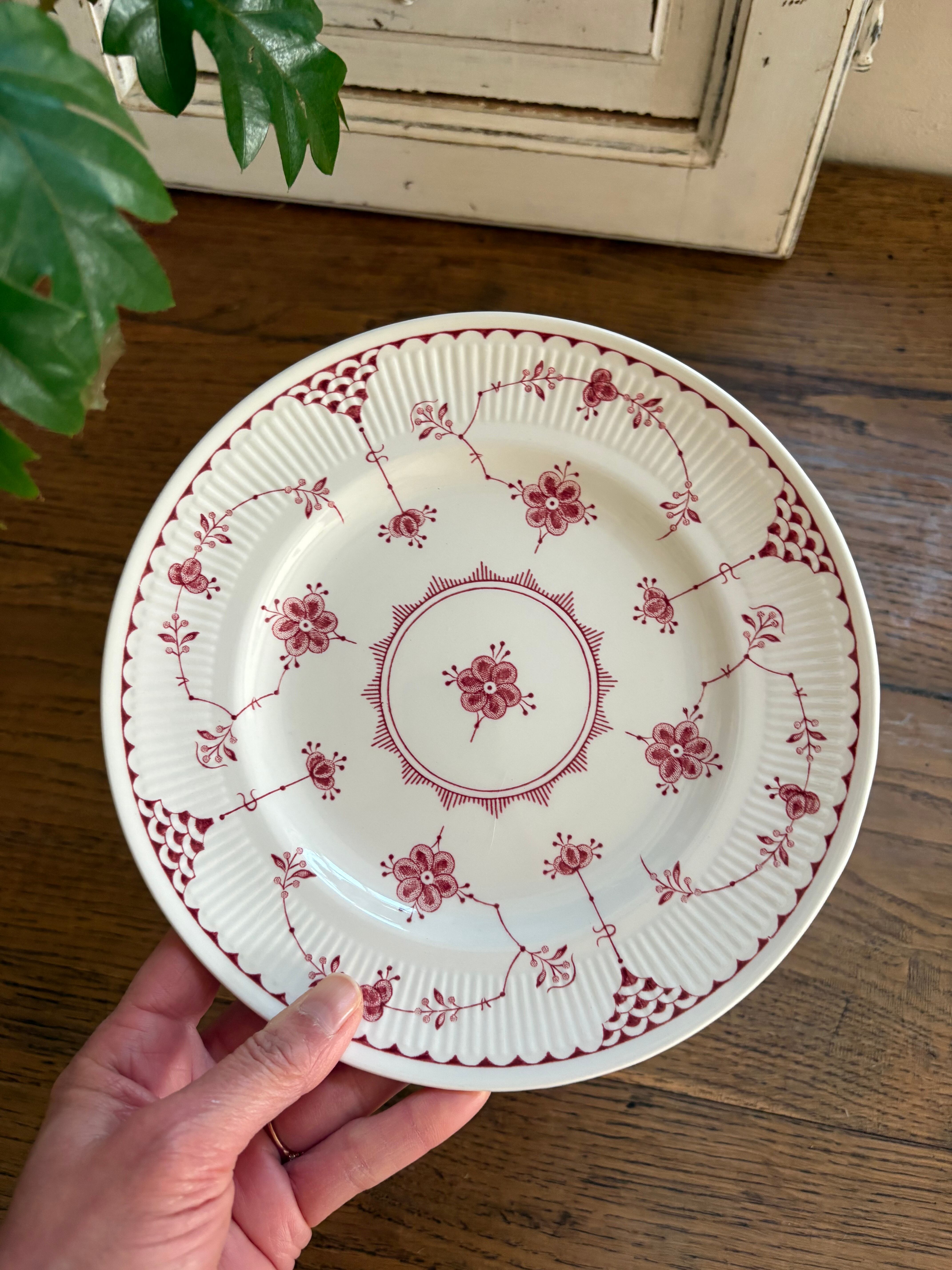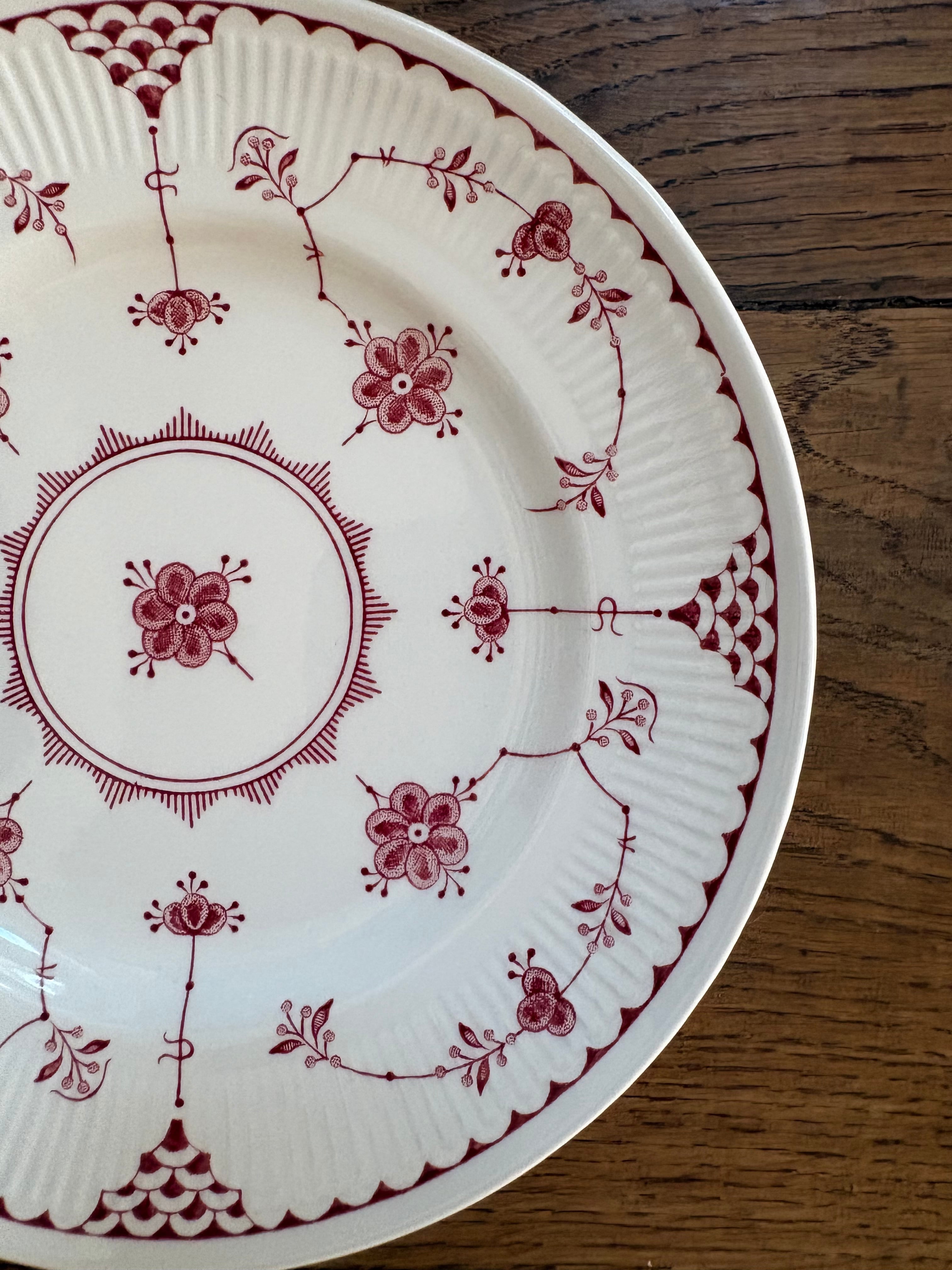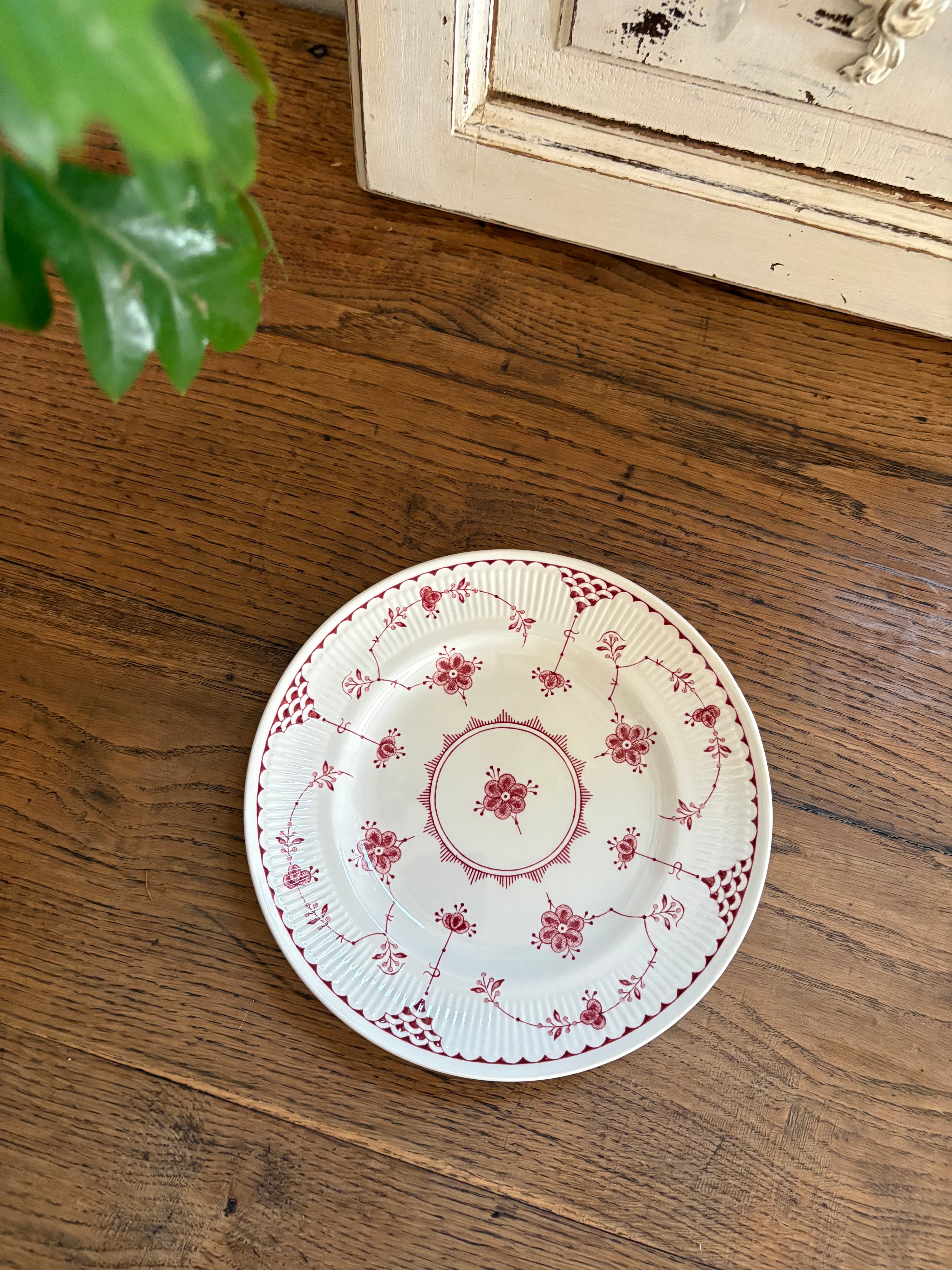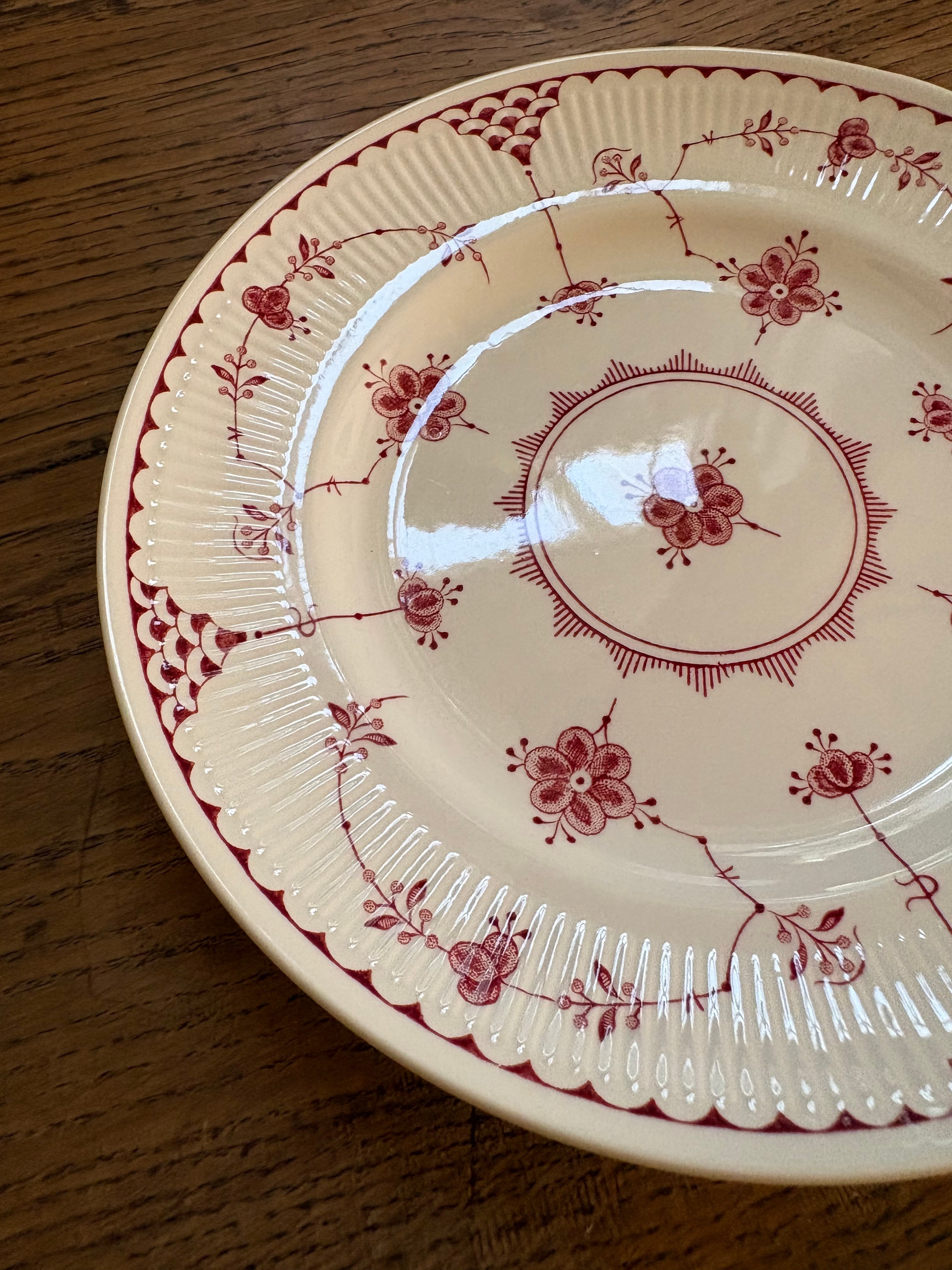 白地に赤の花模様、リムはスカラップのレリーフが施されております。