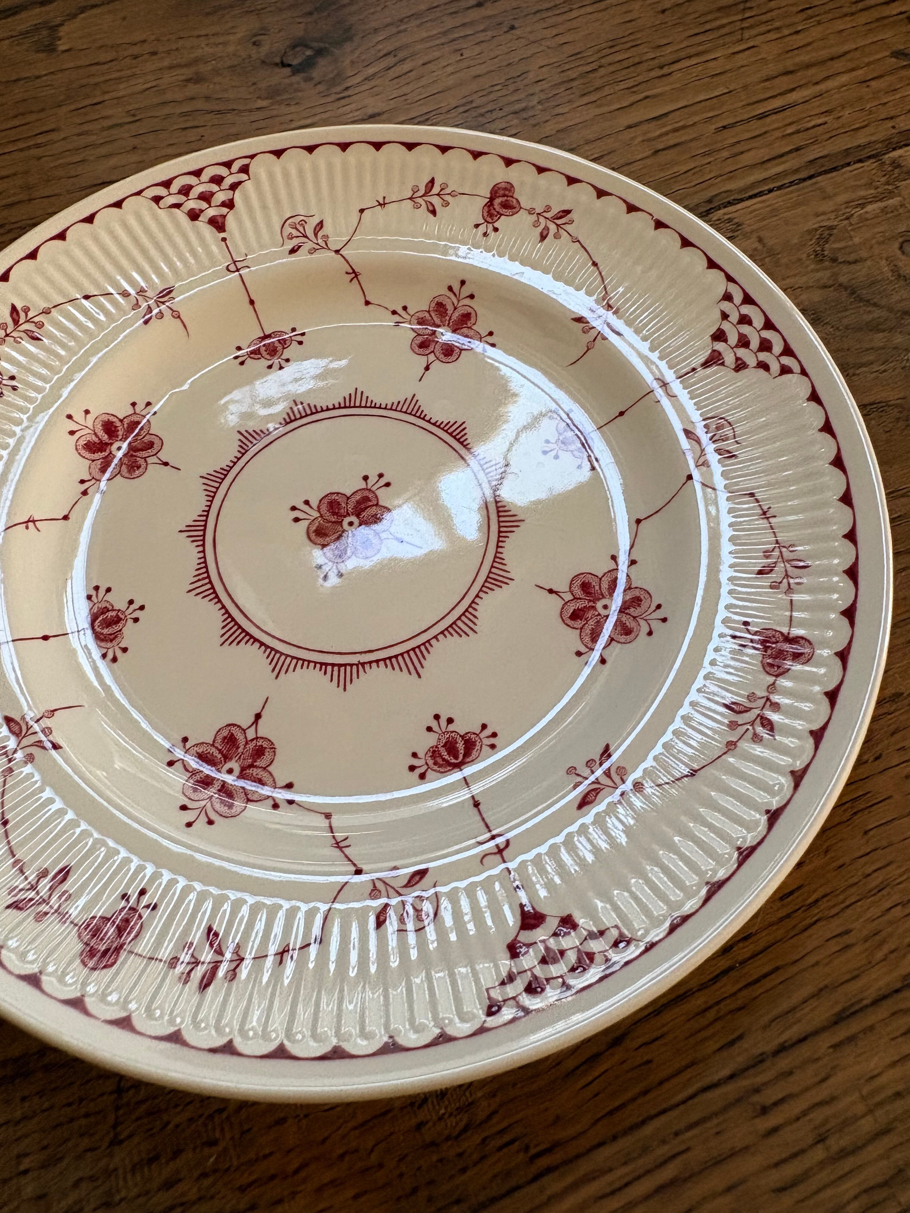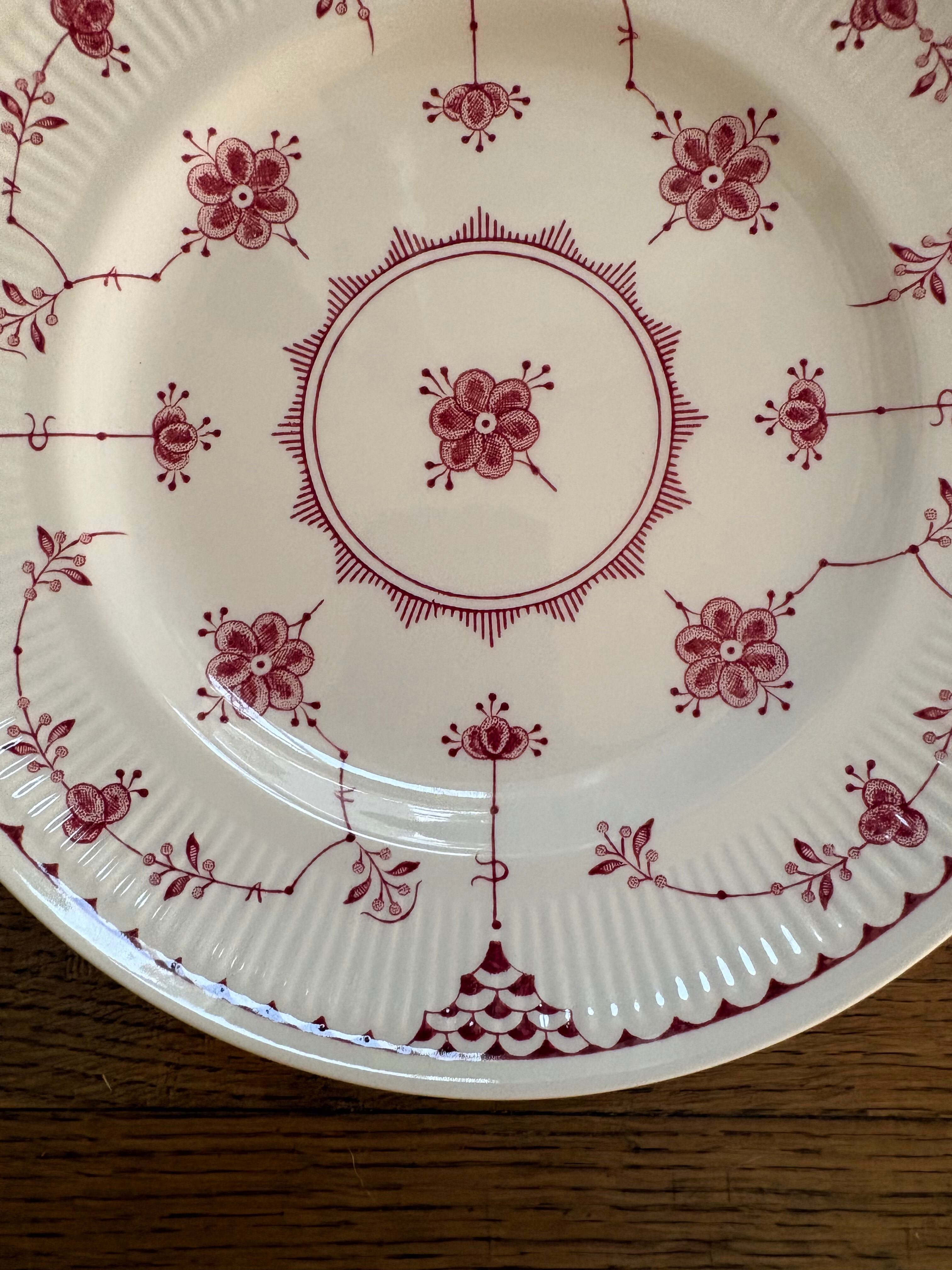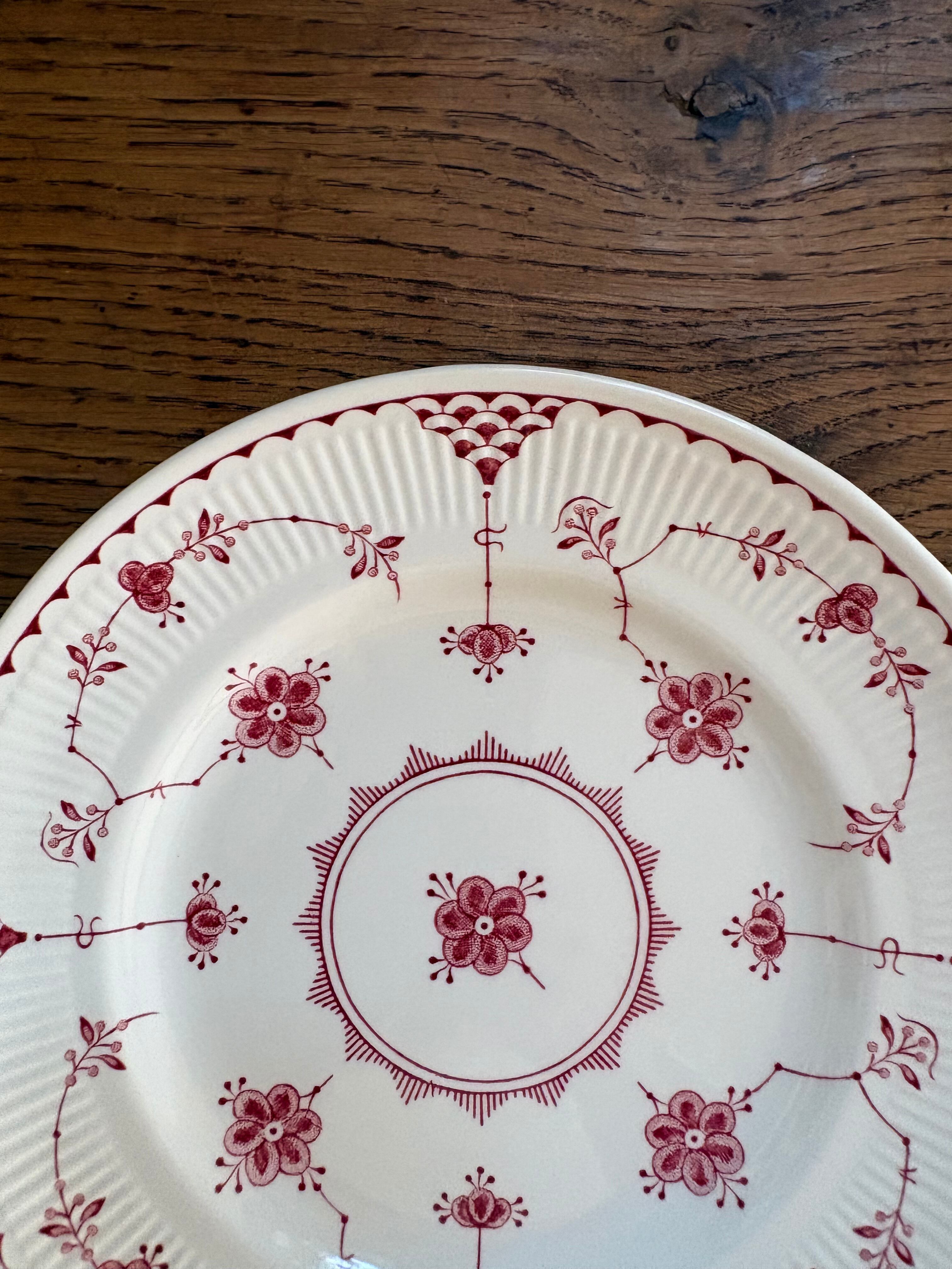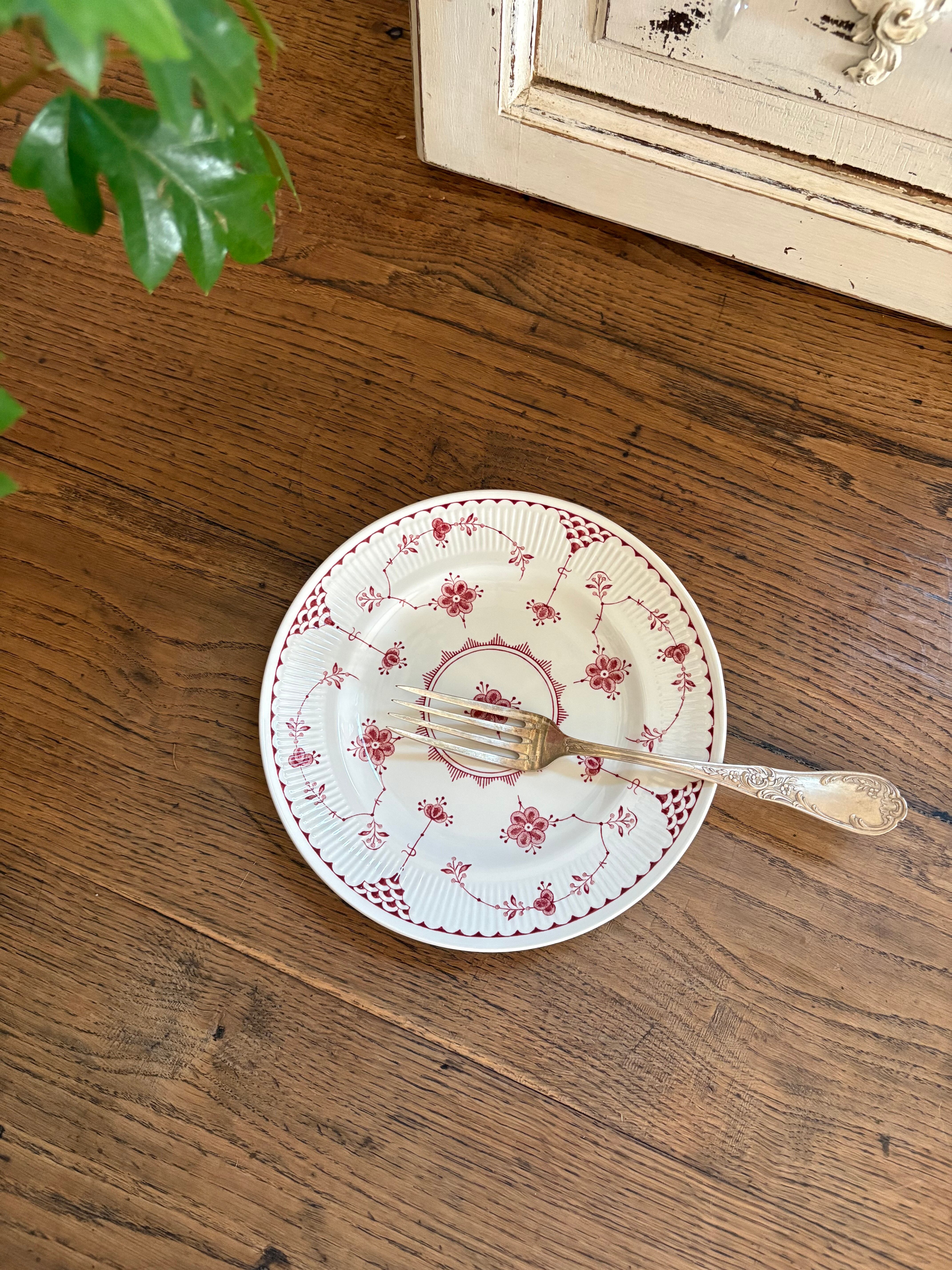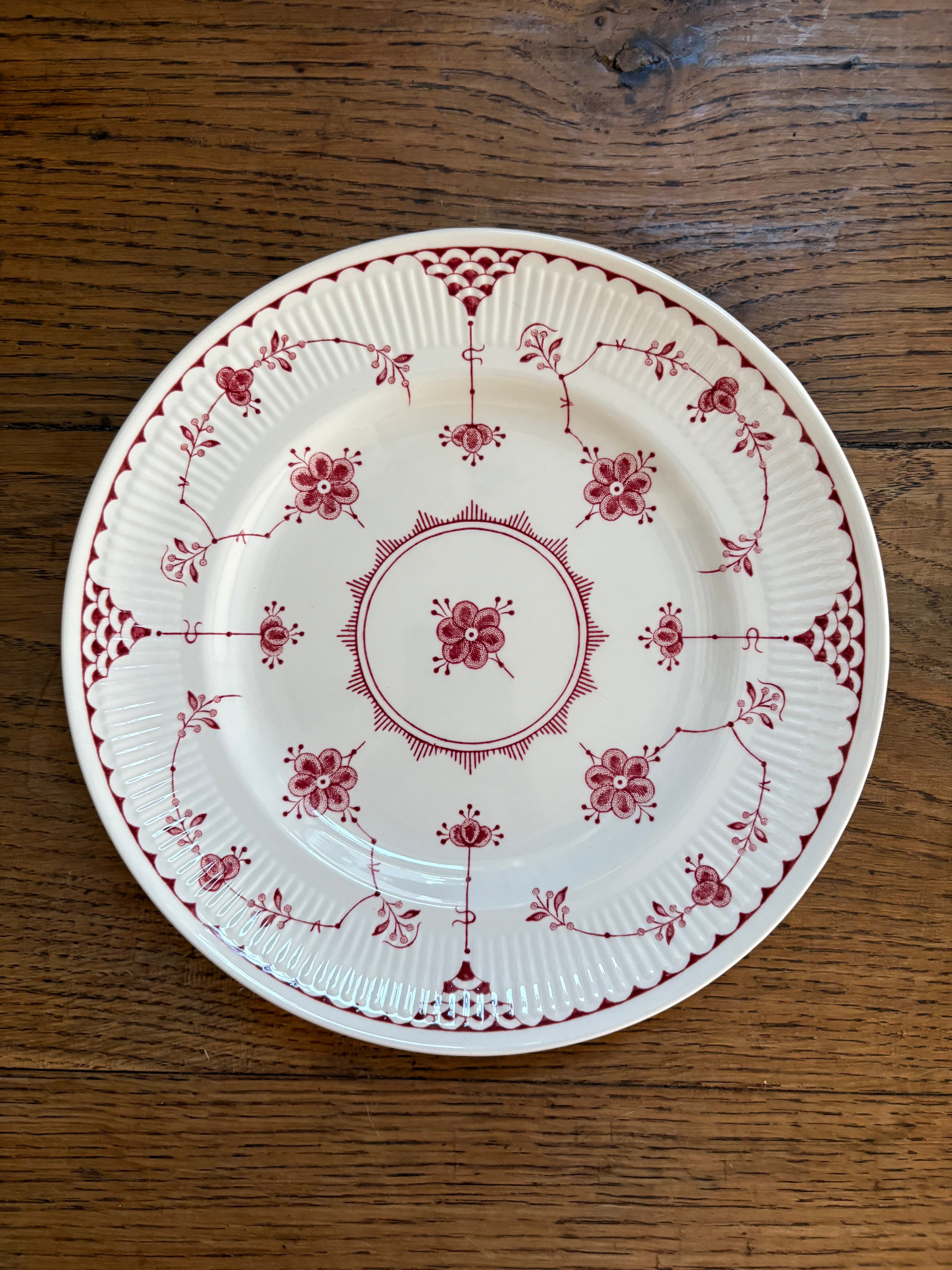 白地に赤の花模様、リムはスカラップのレリーフが施されております。