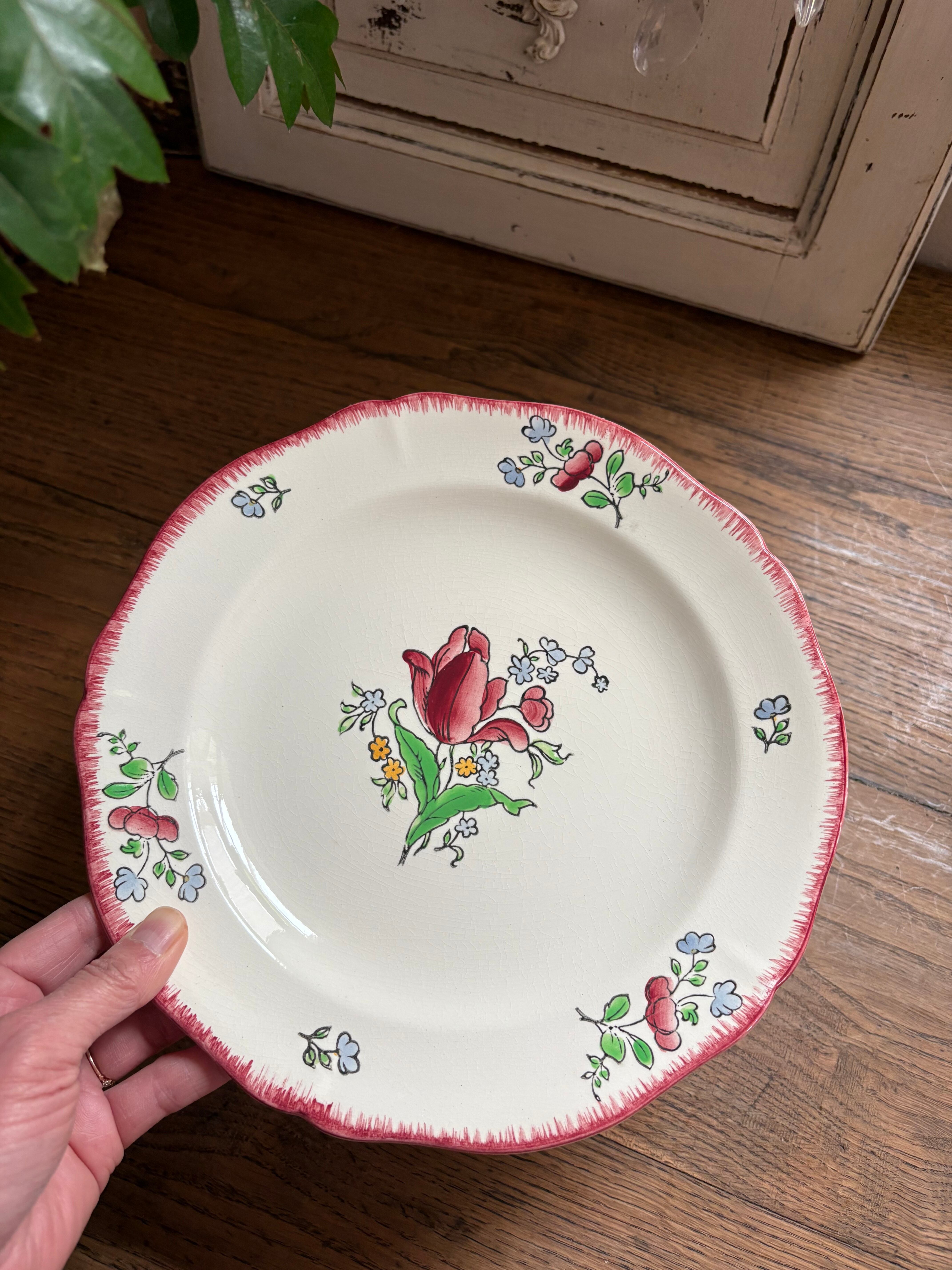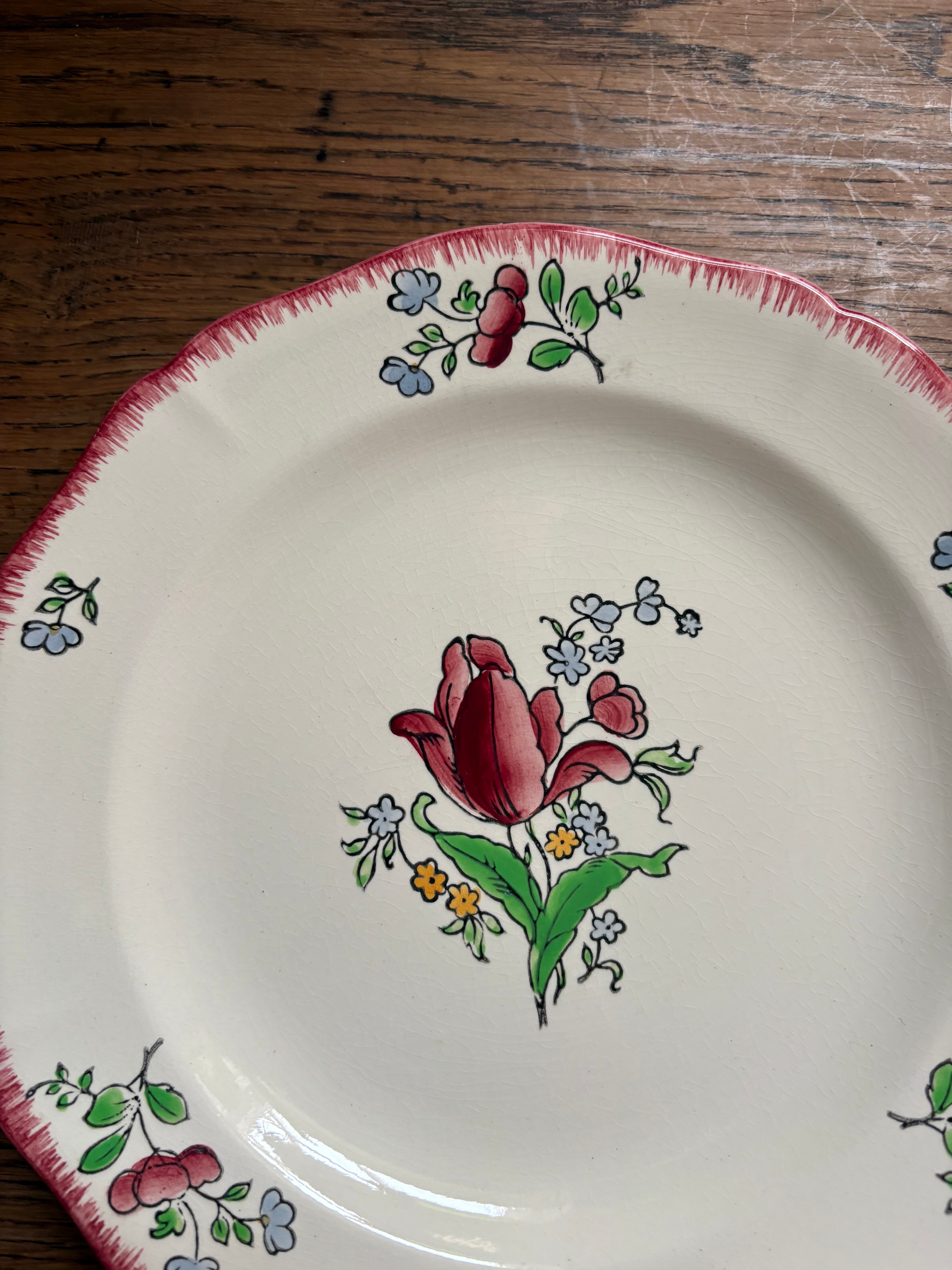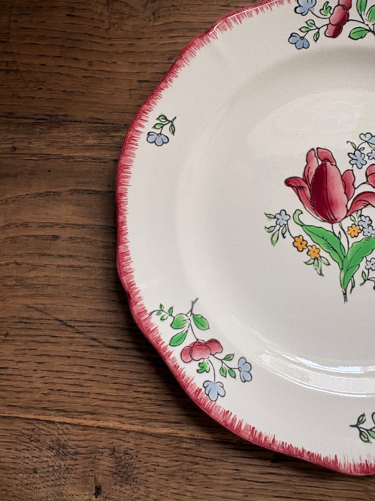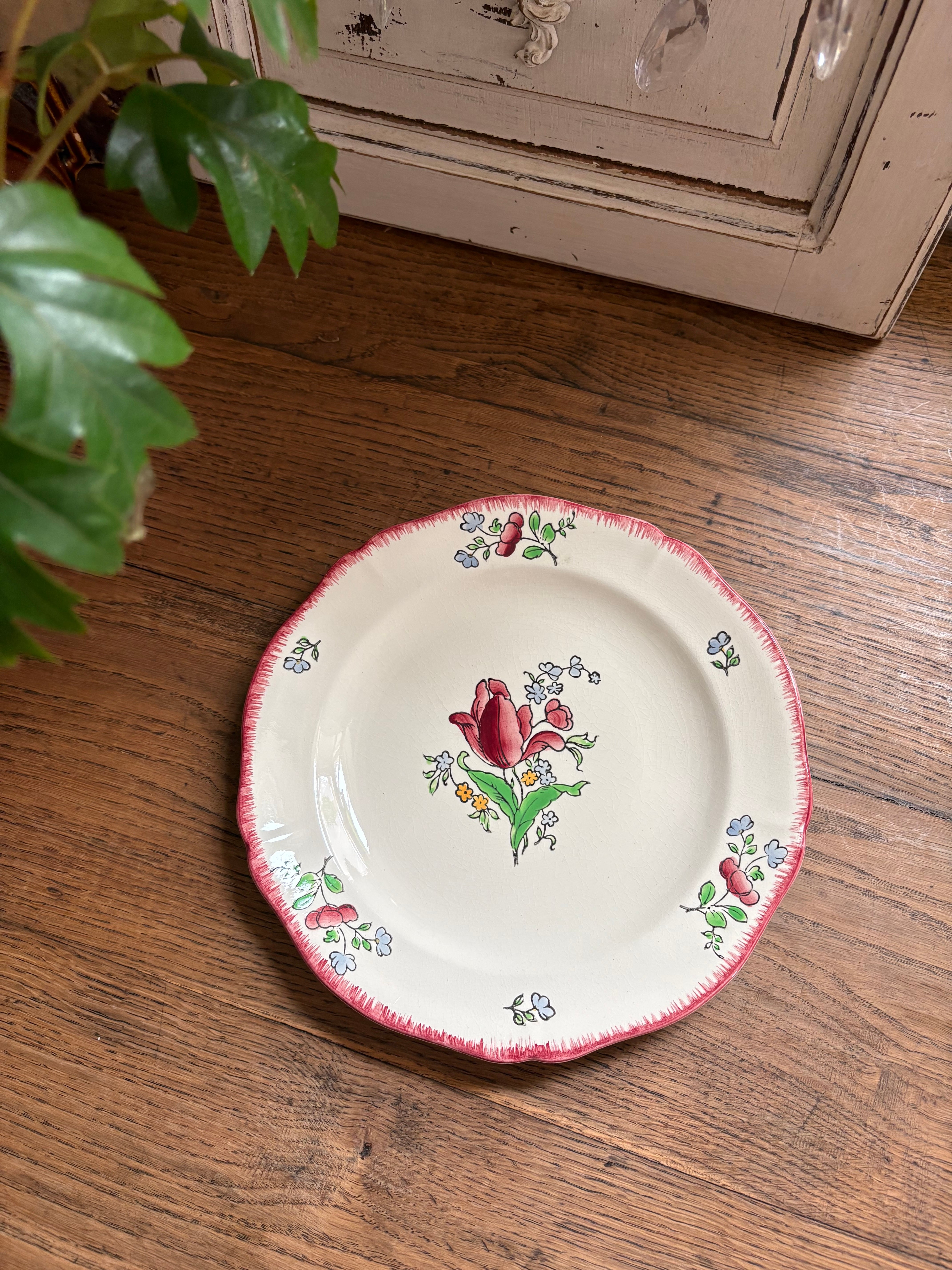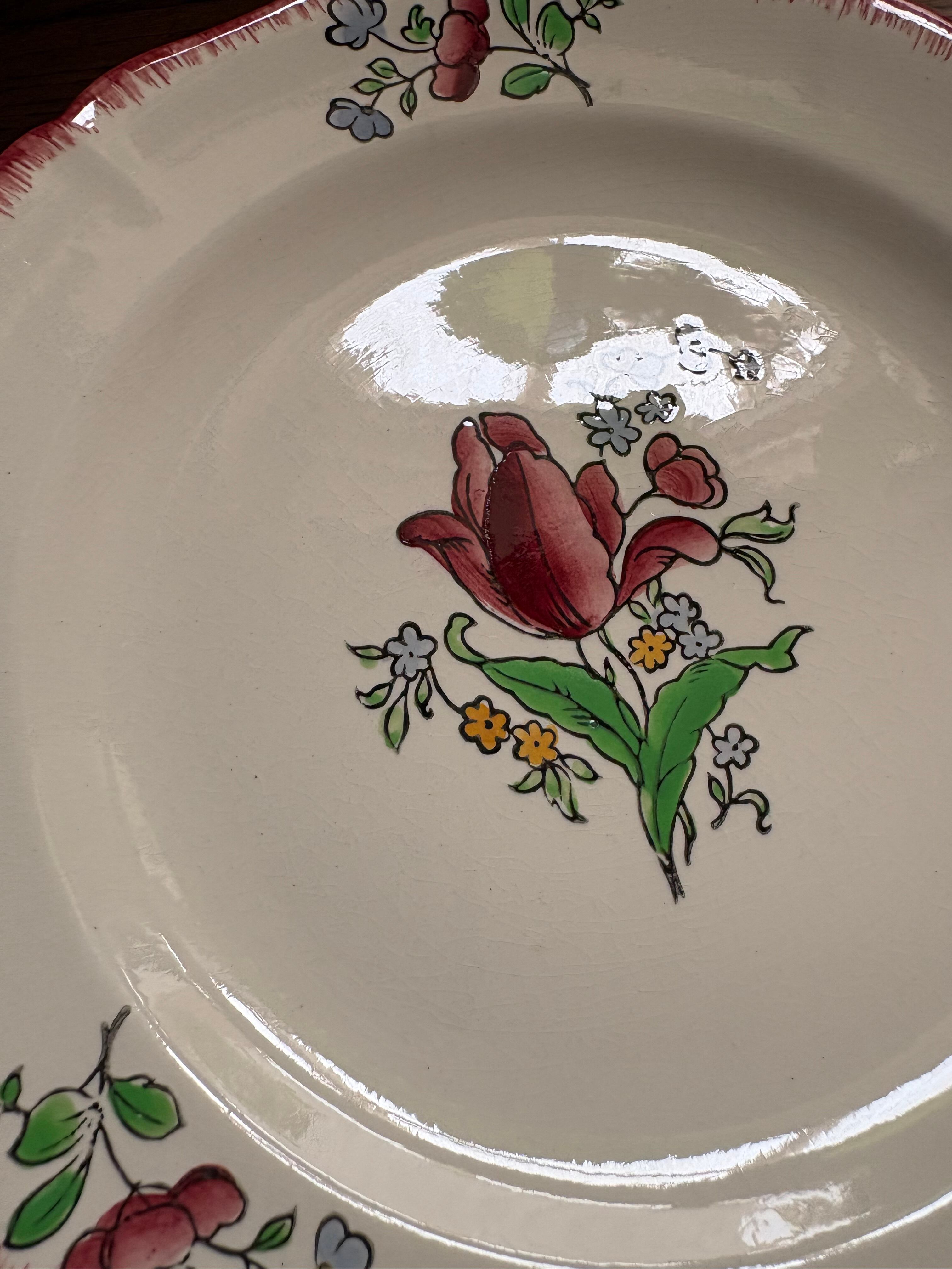 可愛らしいチューリップと小花が描かれたジアンのプレート、少しだけ深みのある器となっております。