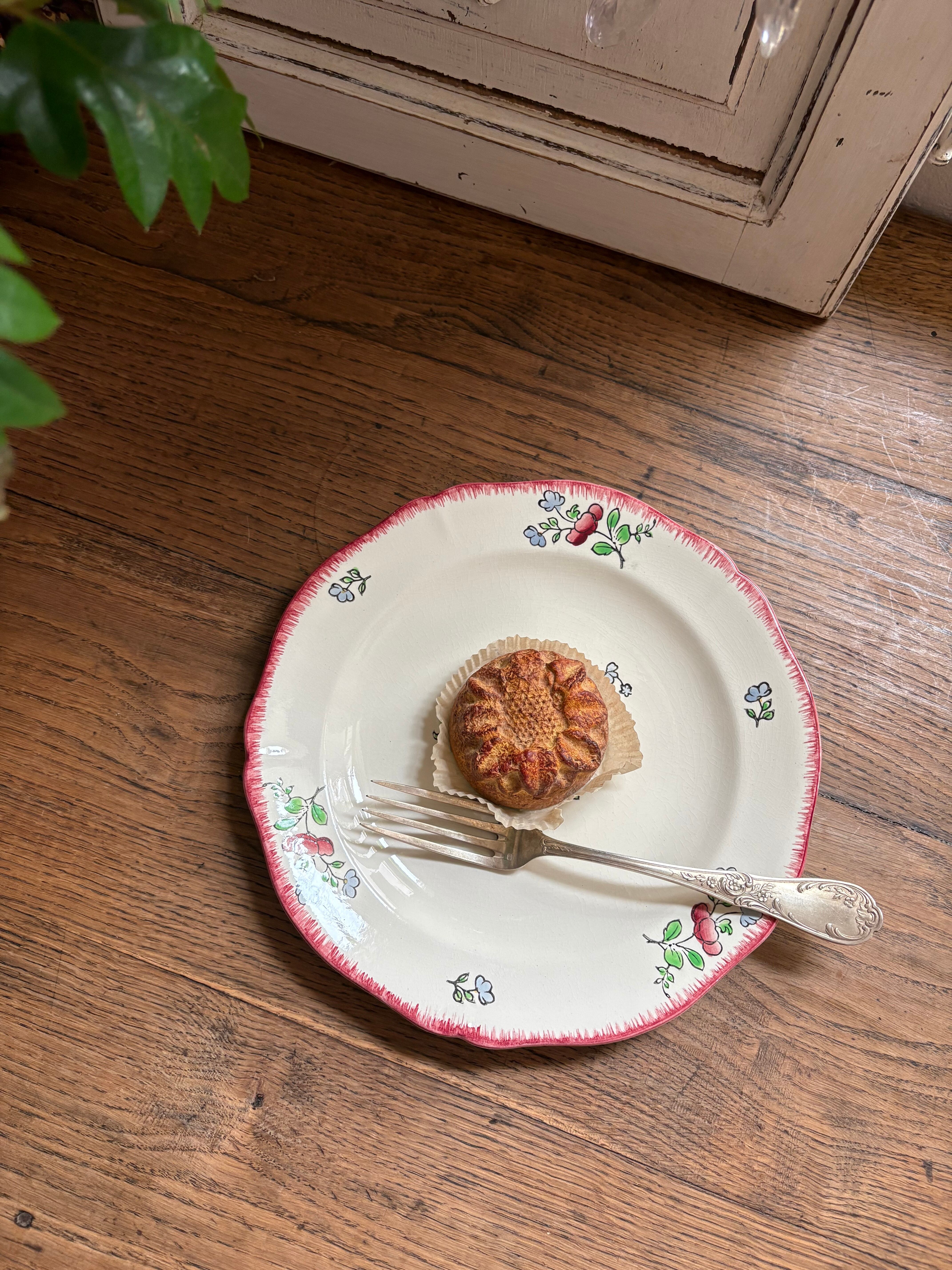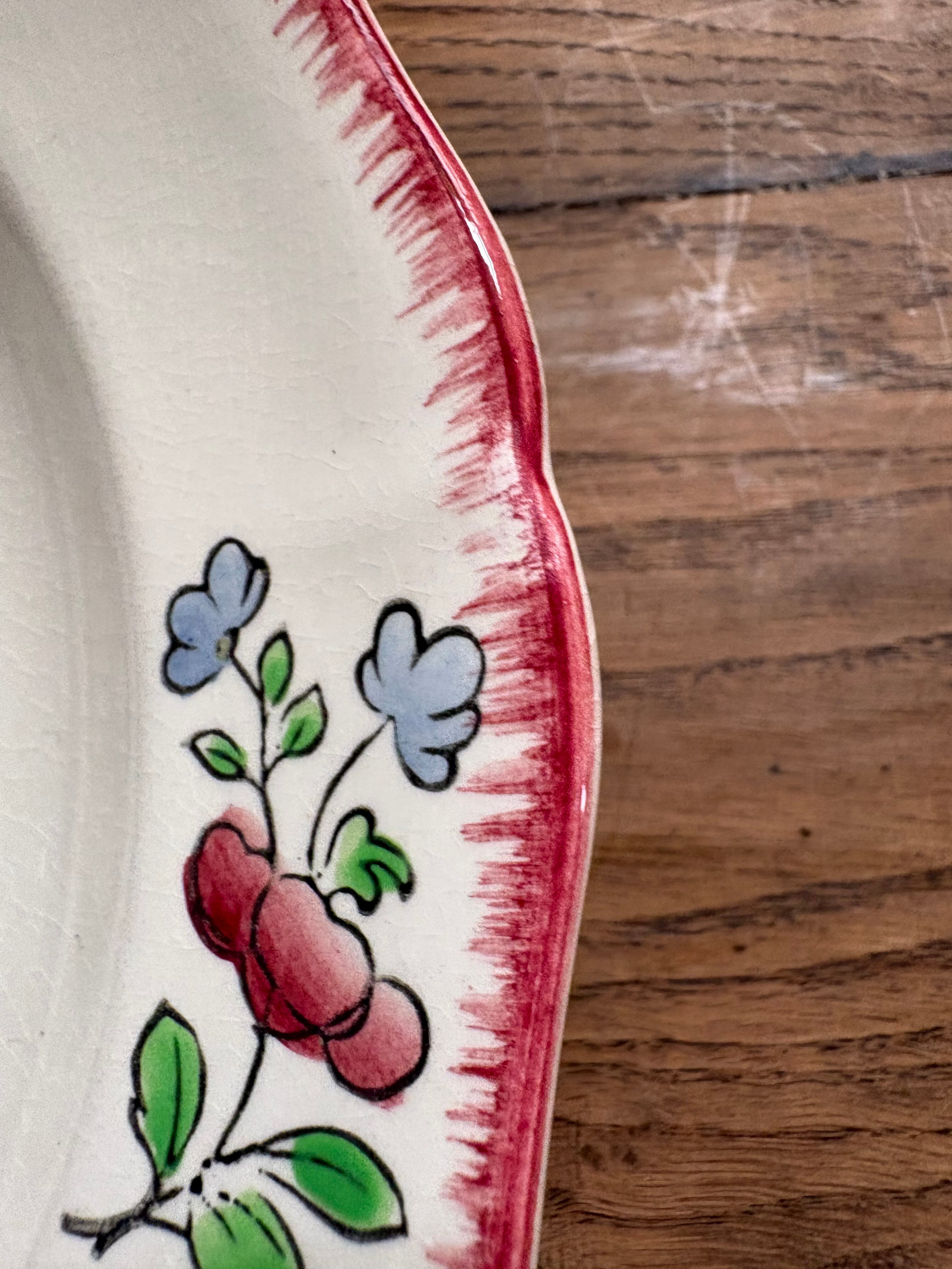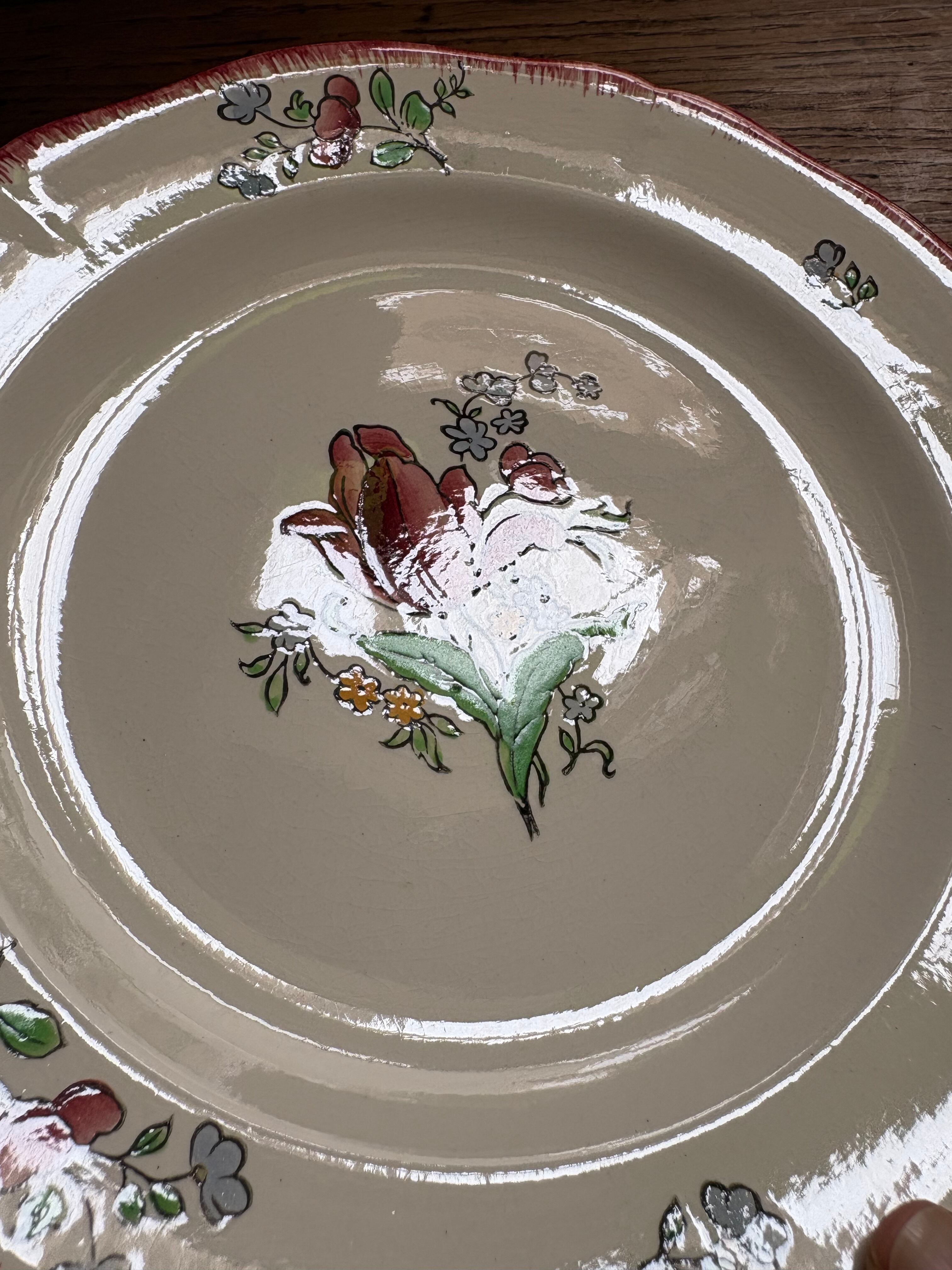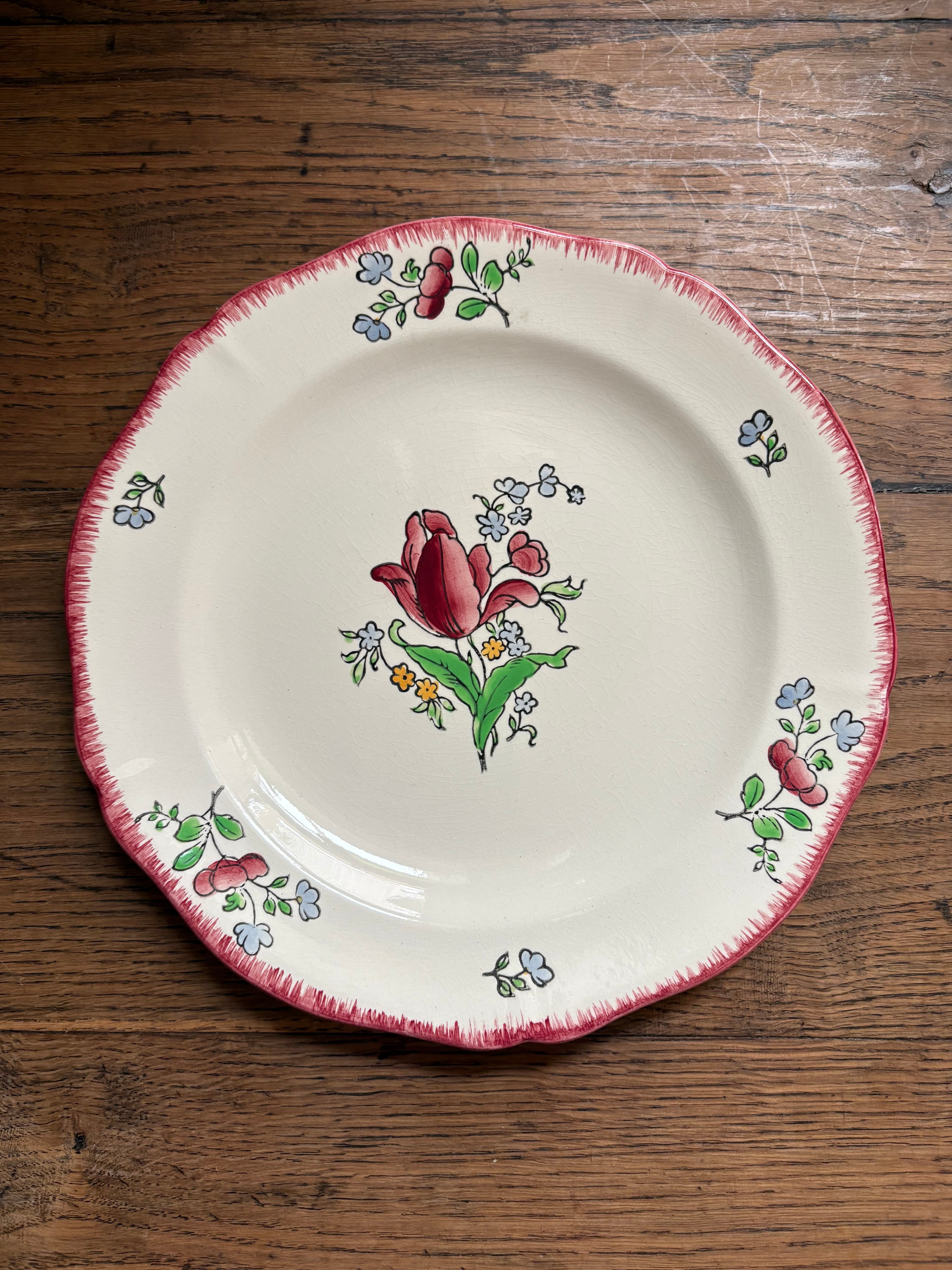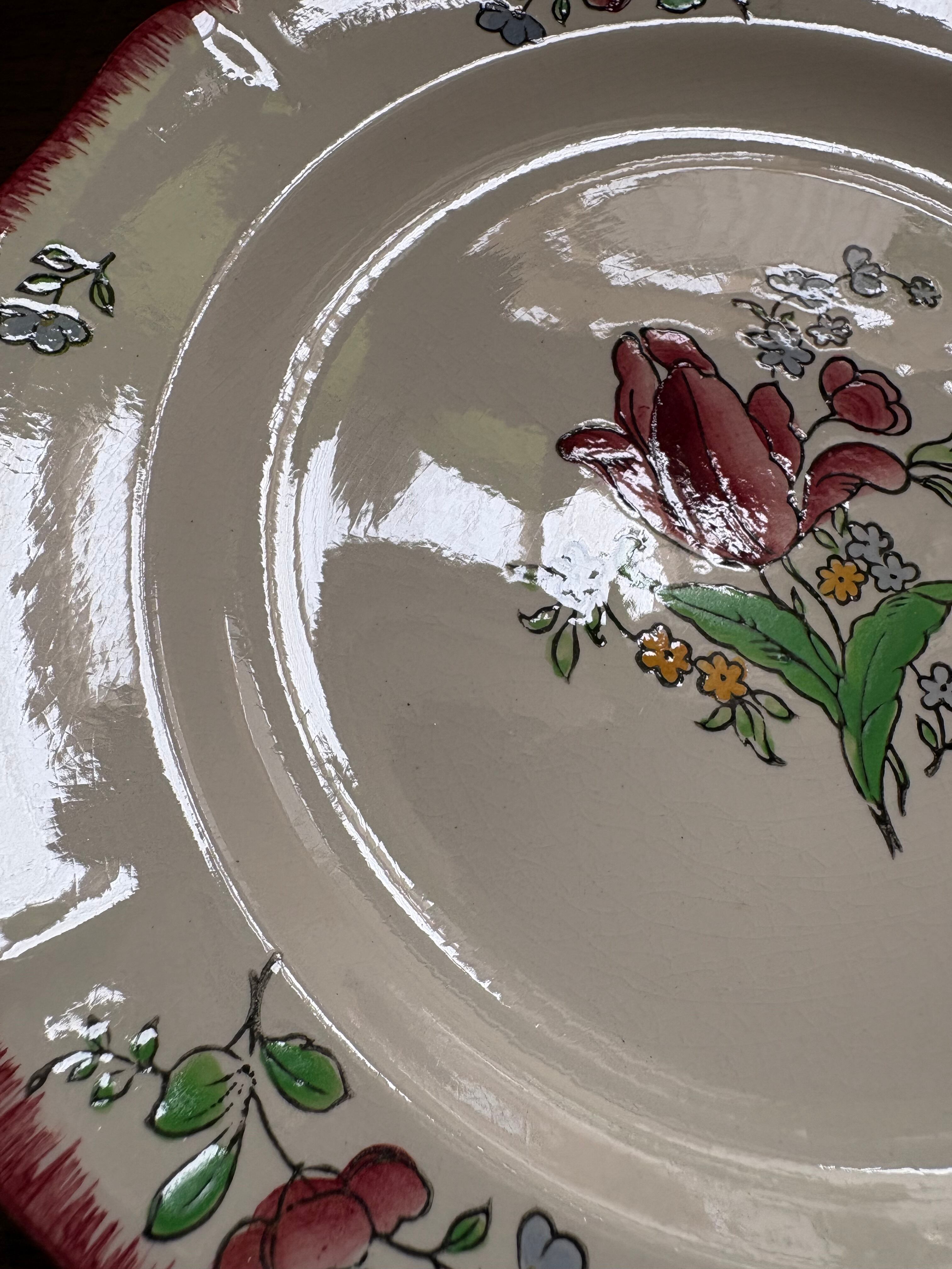 可愛らしいチューリップと小花が描かれたジアンのプレート、少しだけ深みのある器となっております。