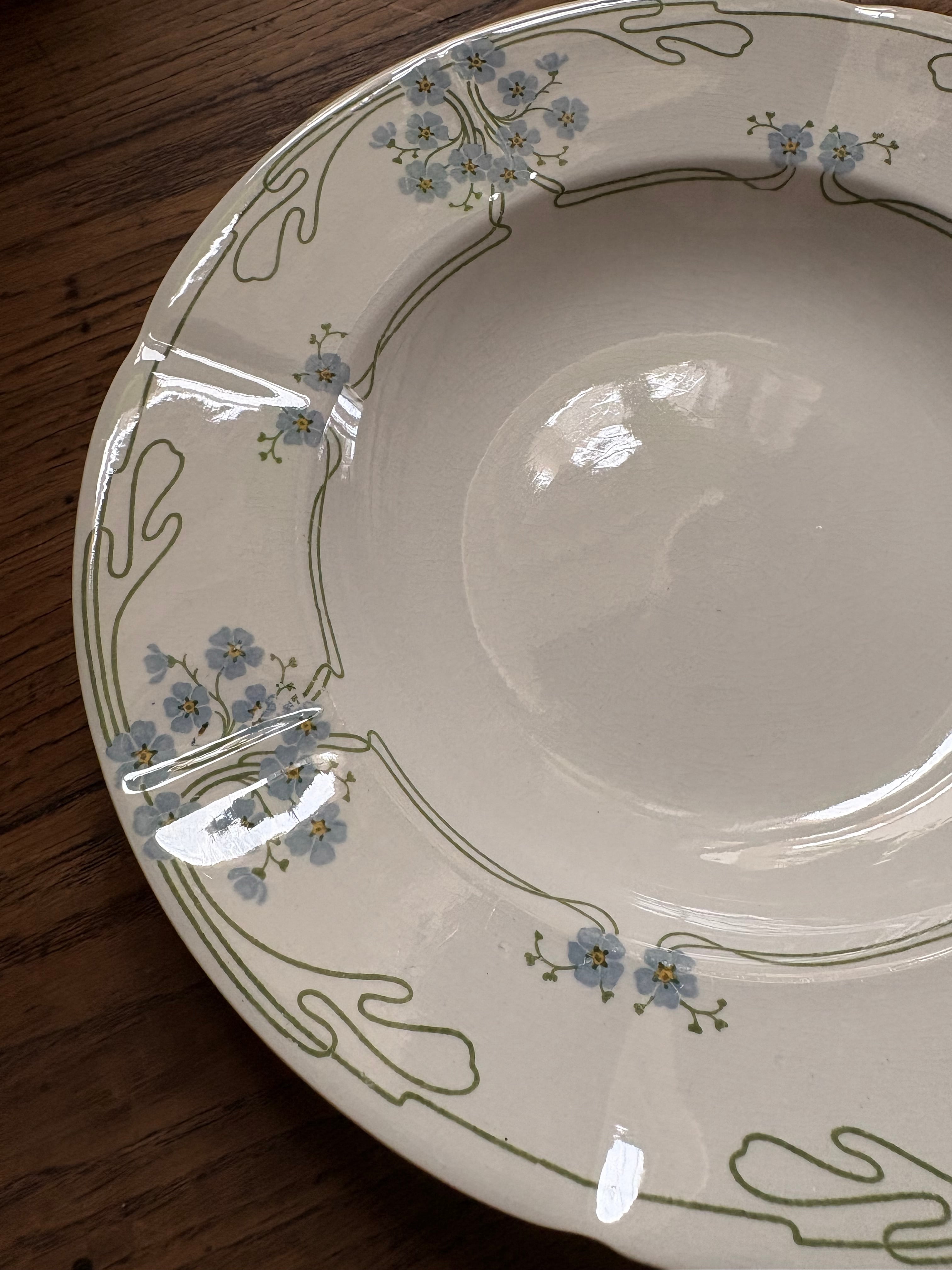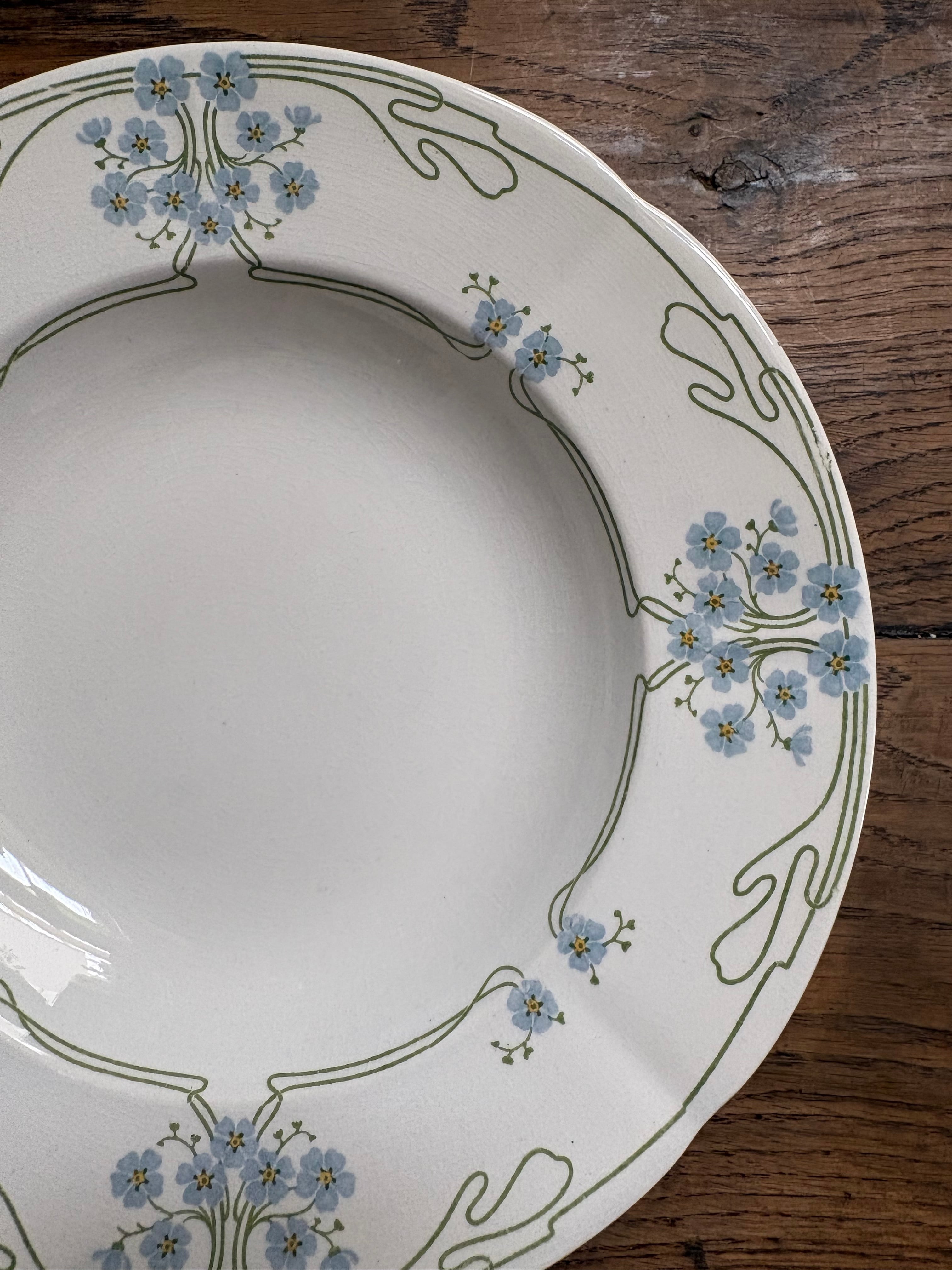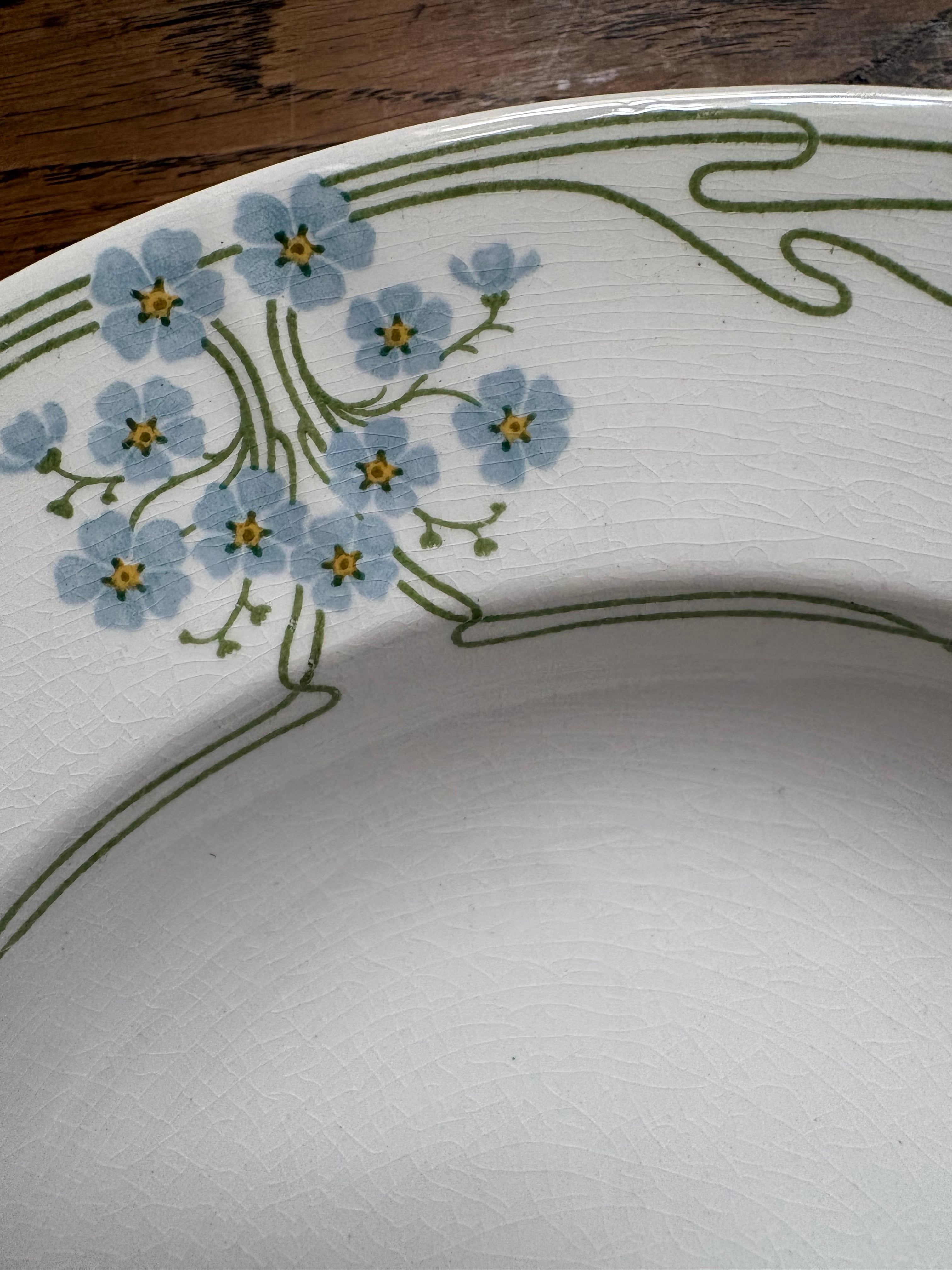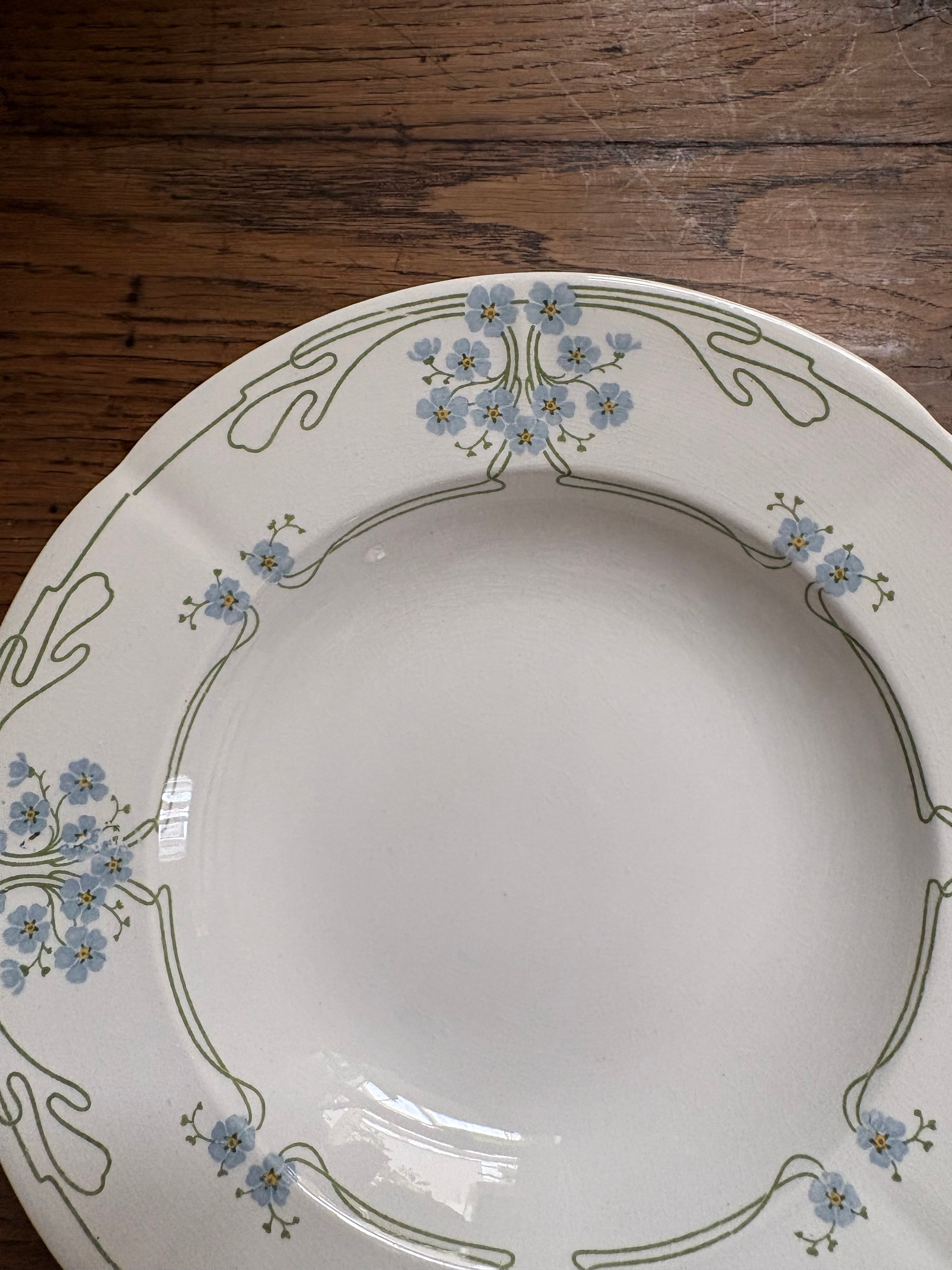 勿忘草のプレート スーププレート U&C Sarrguemines フランスアンティーク アンティークプレート