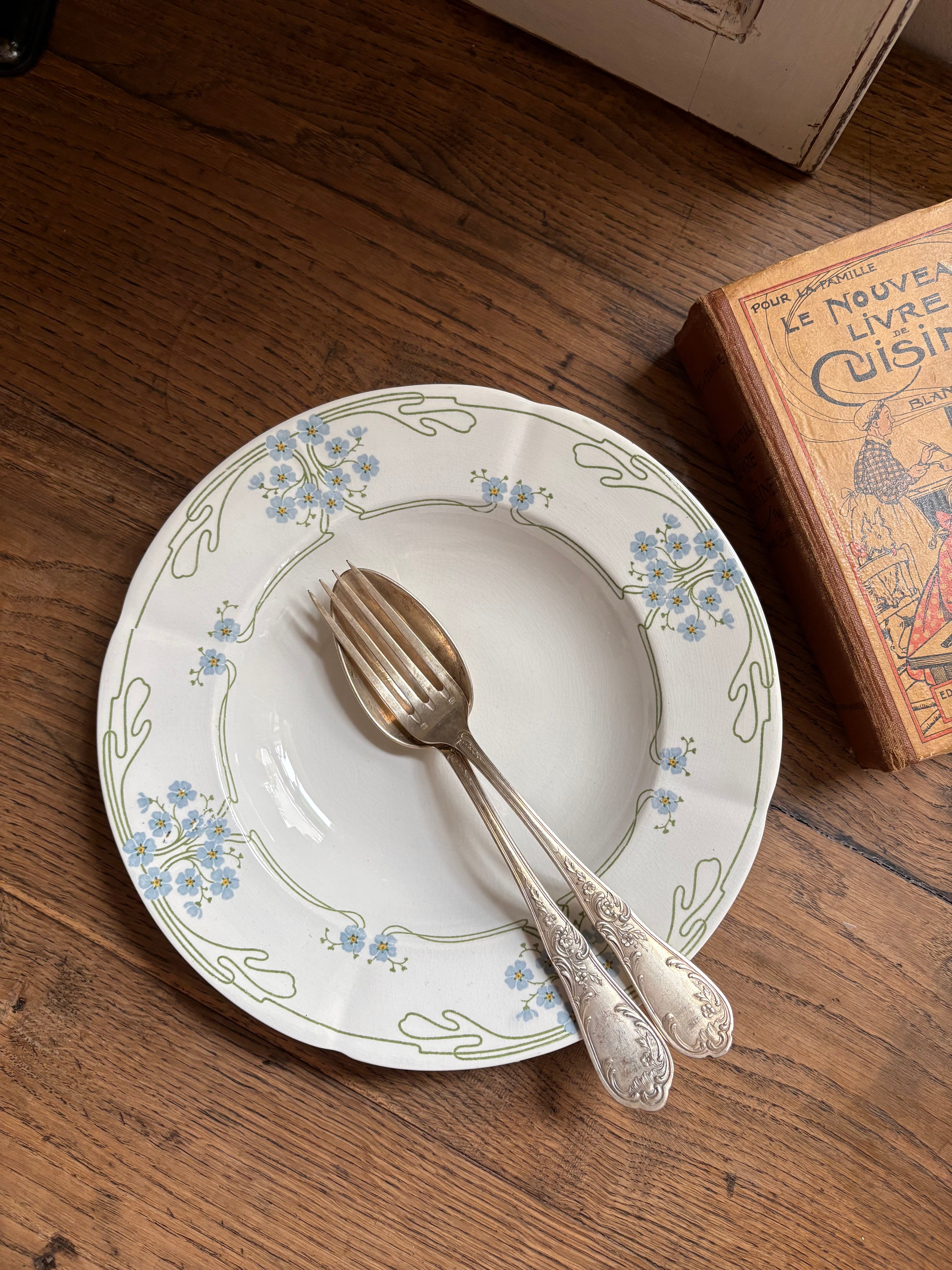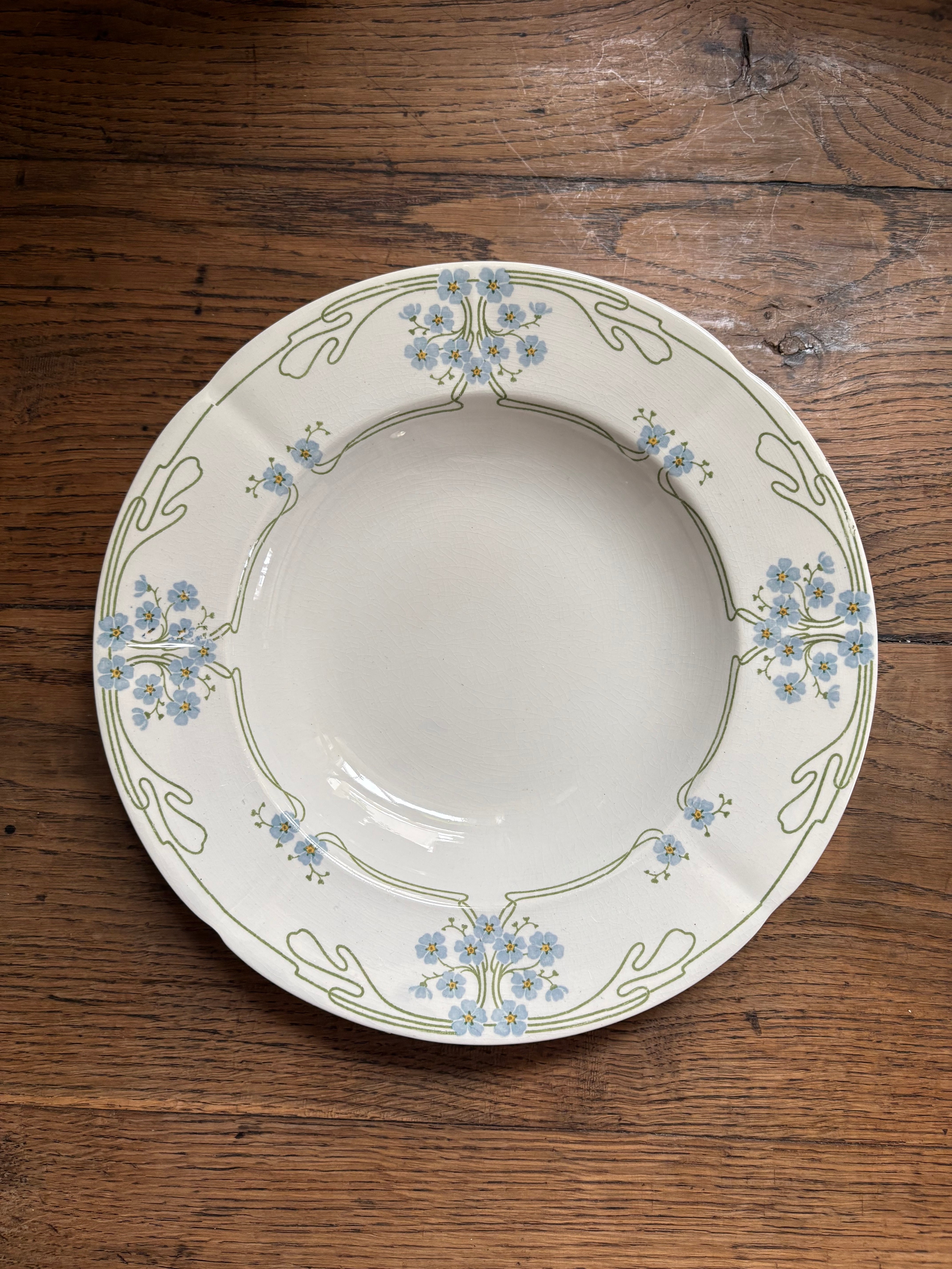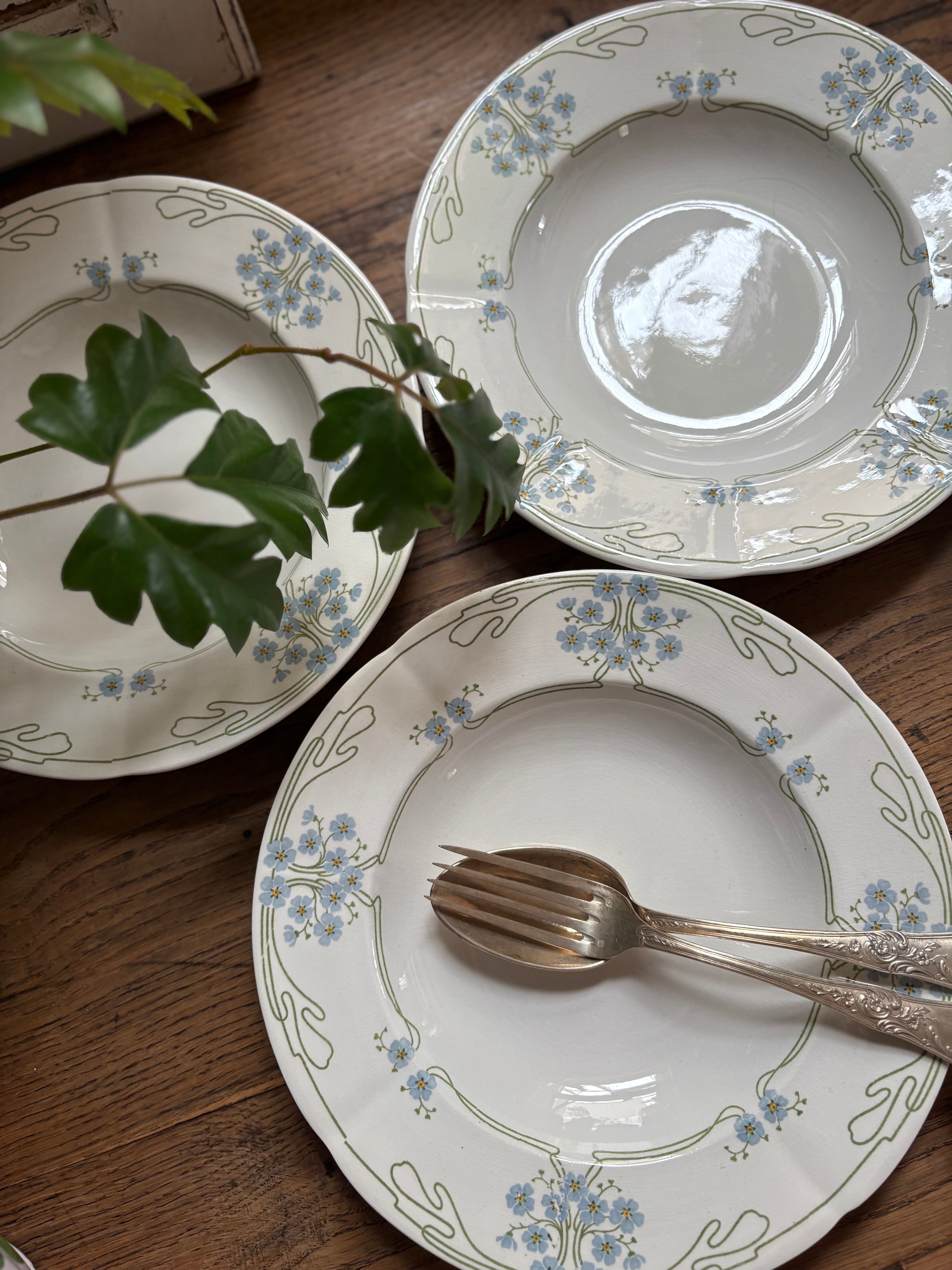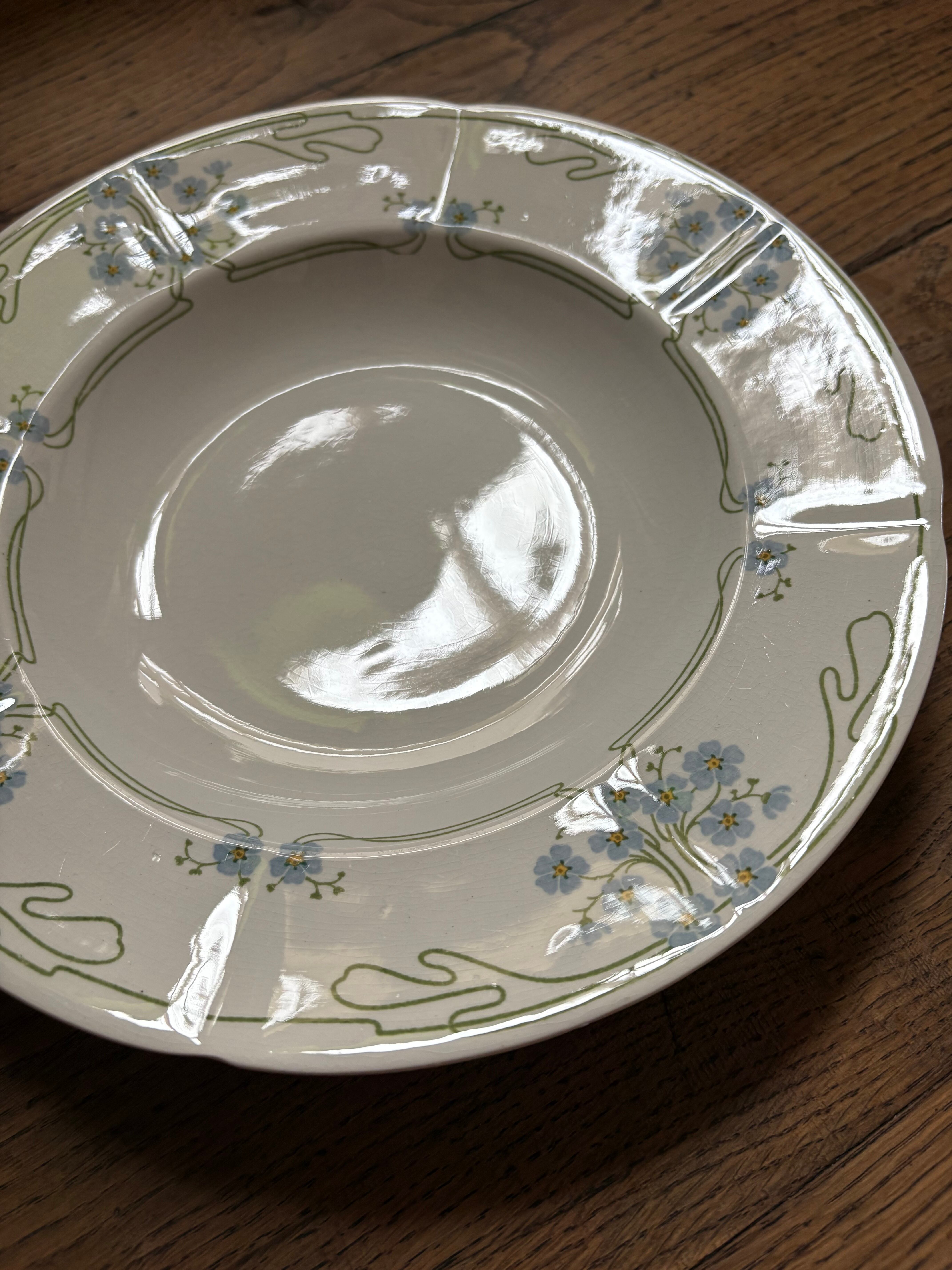 勿忘草のプレート スーププレート U&C Sarrguemines フランスアンティーク アンティークプレート