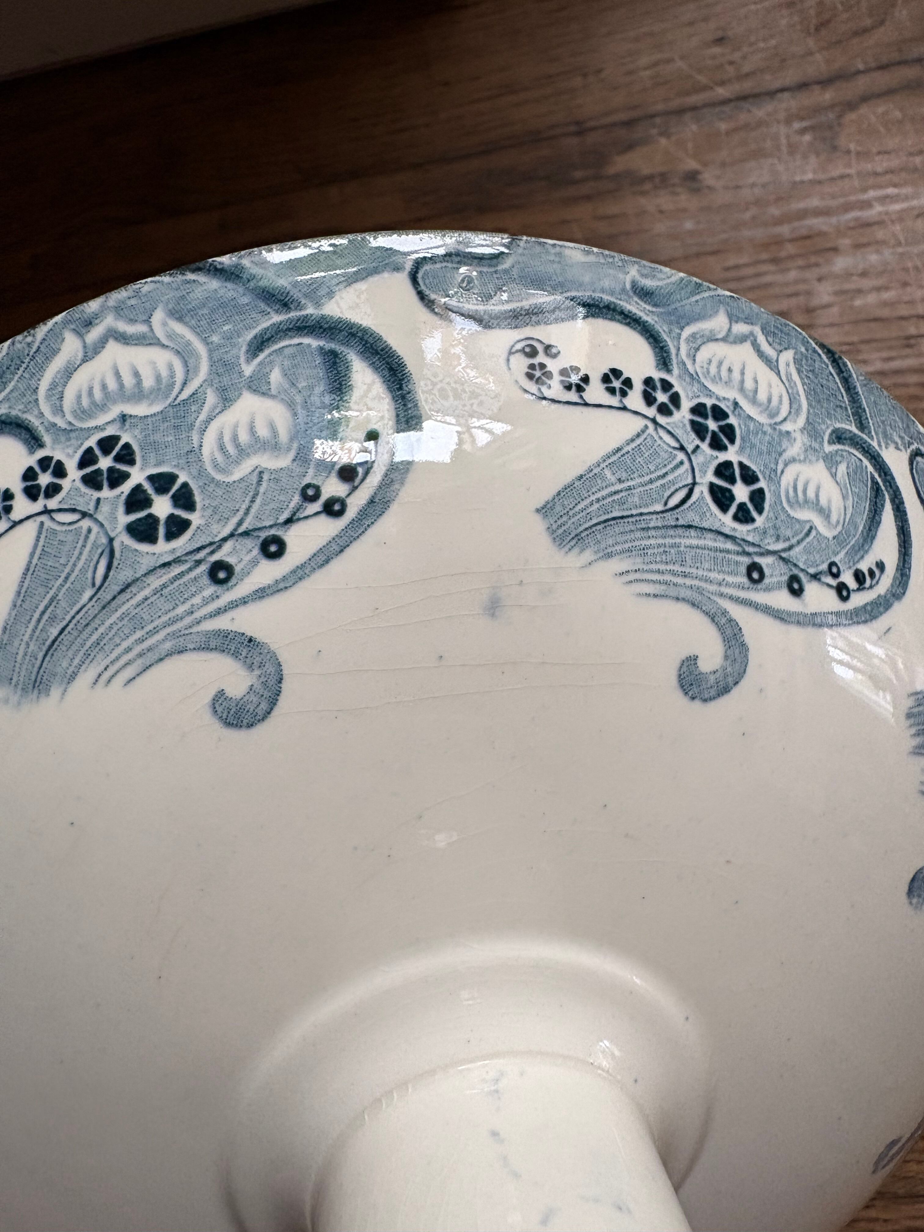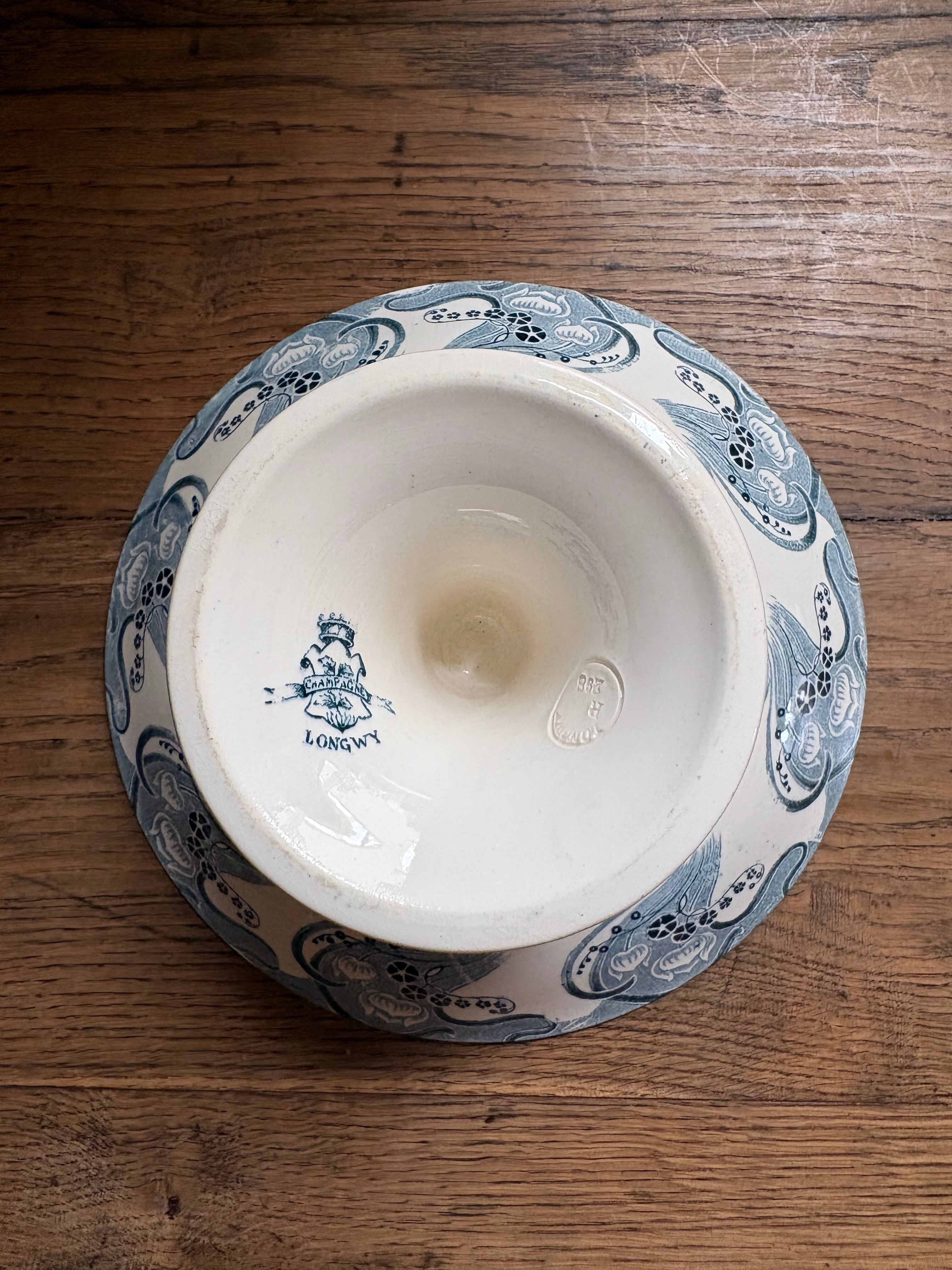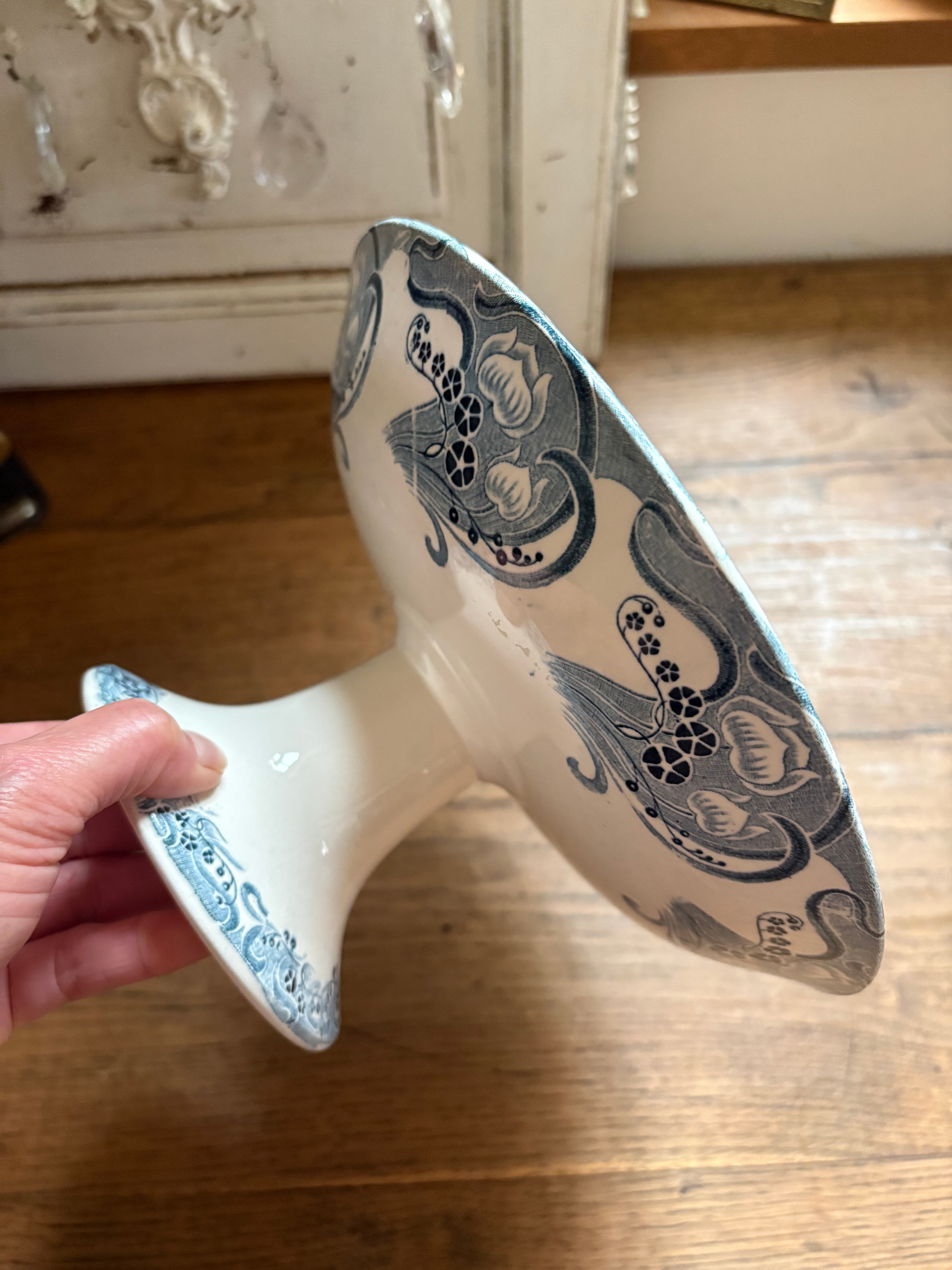 アールヌーボー装飾の素敵なコンポティエ ロンウィ窯 フランスアンティーク LONGWY コンポティエ