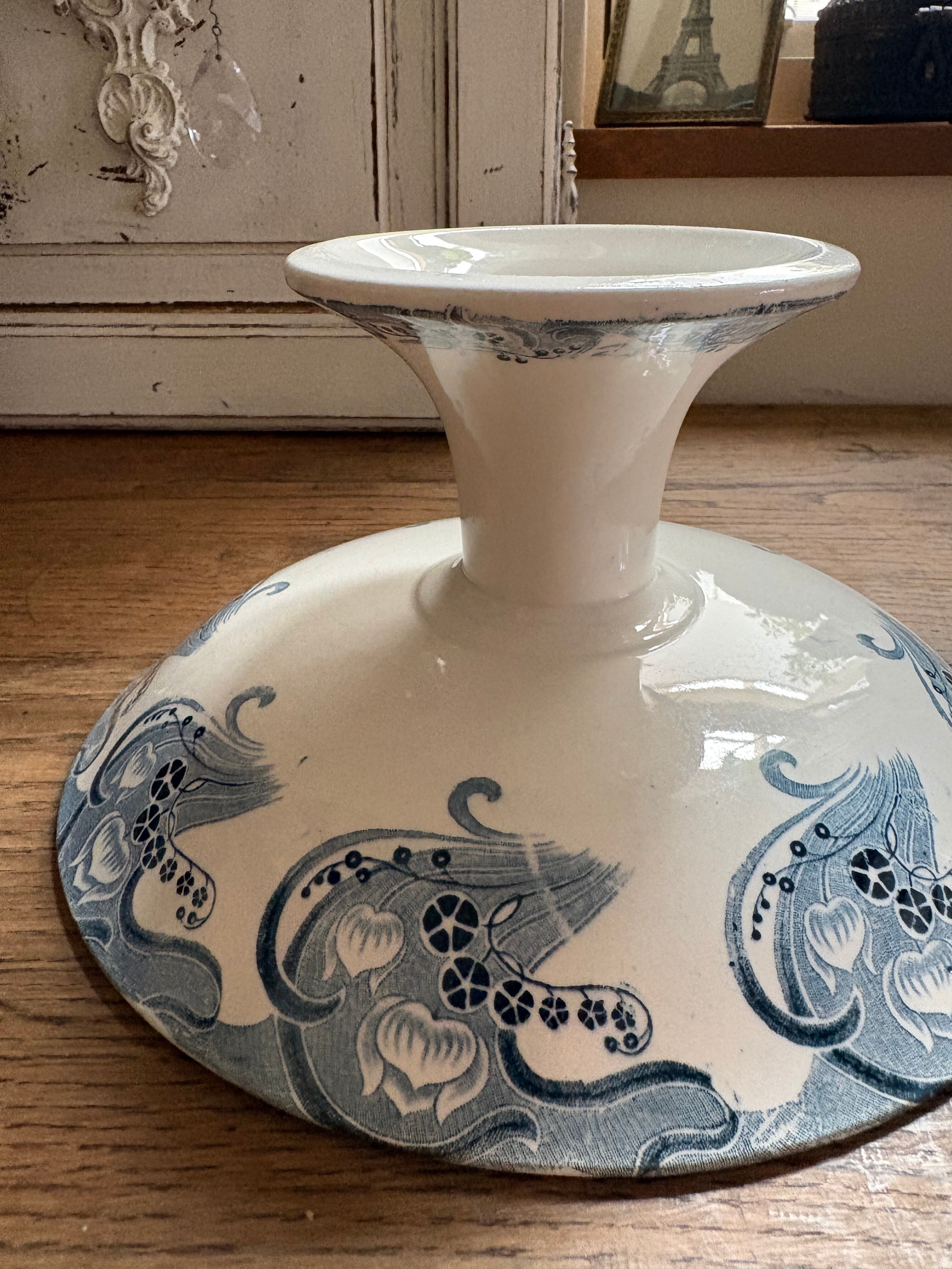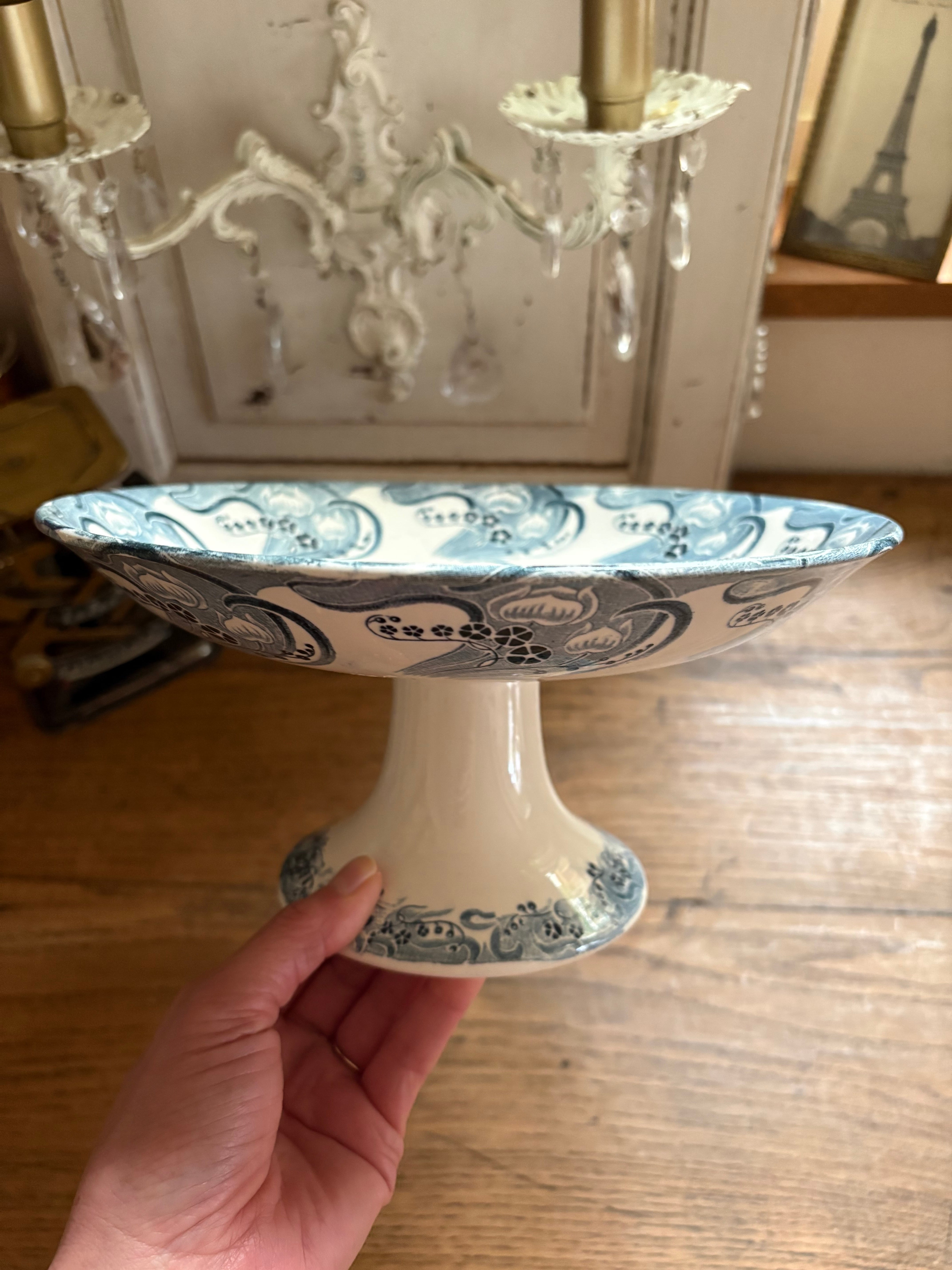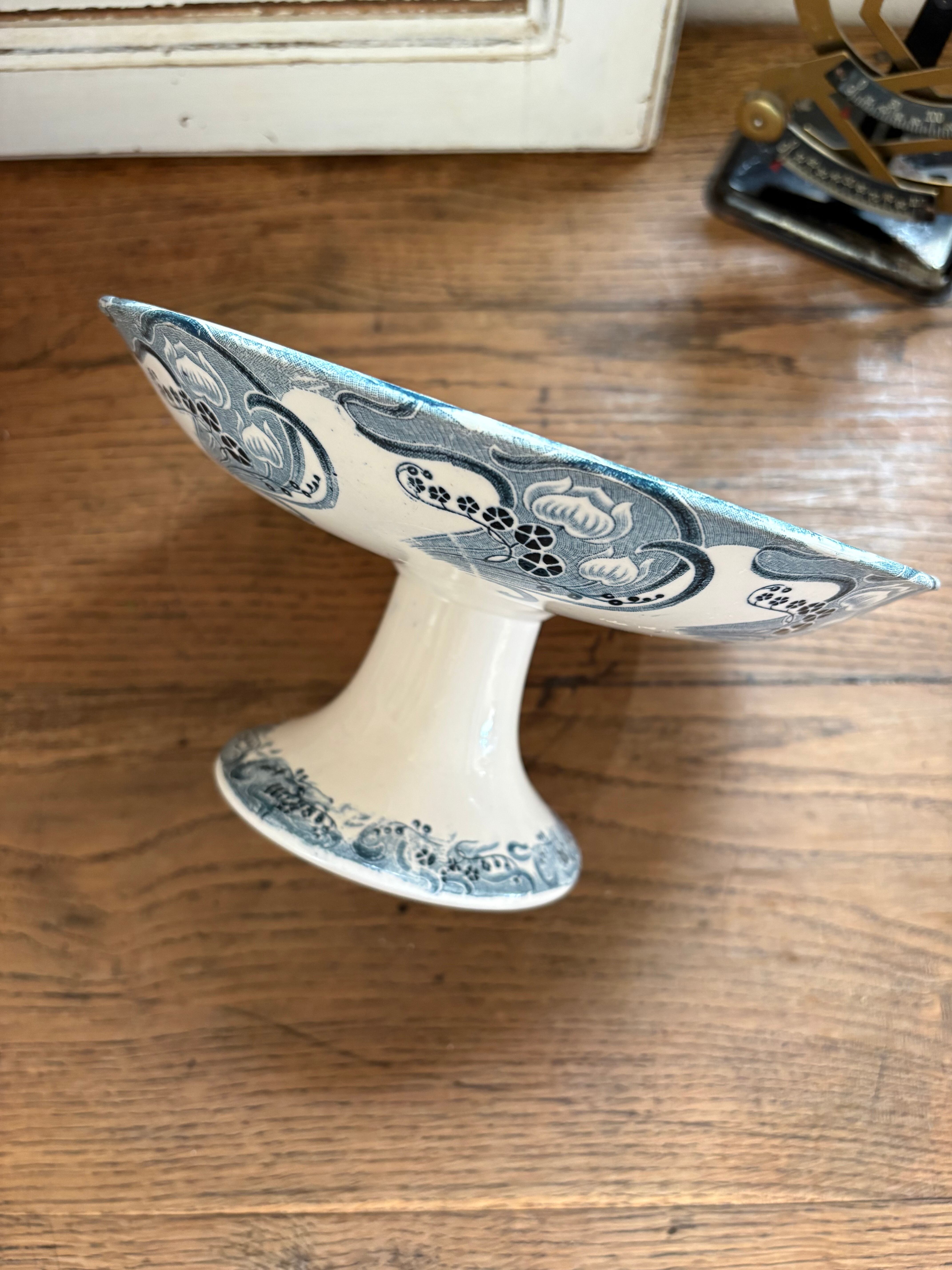 アールヌーボー装飾の素敵なコンポティエ ロンウィ窯 フランスアンティーク LONGWY コンポティエ