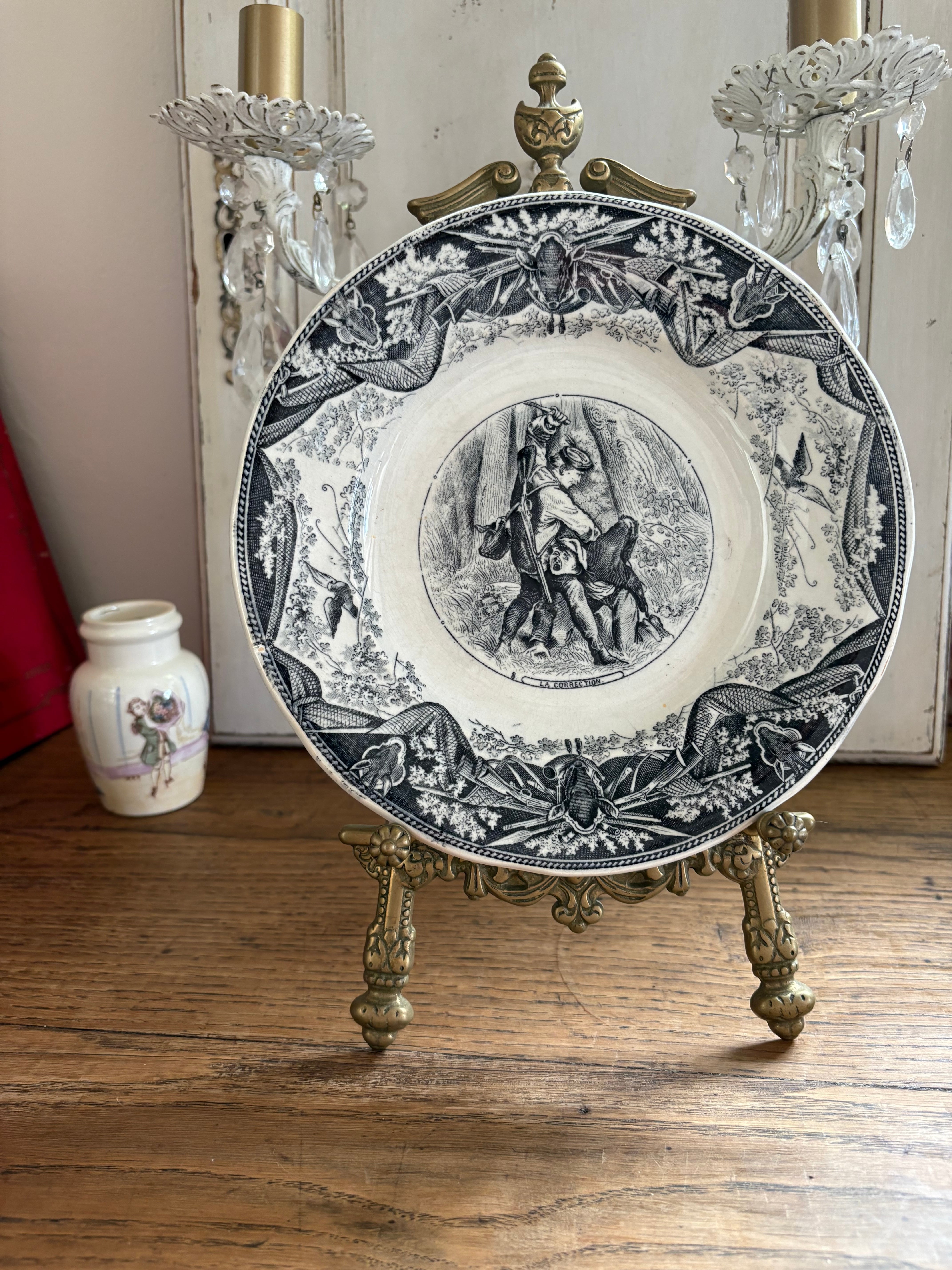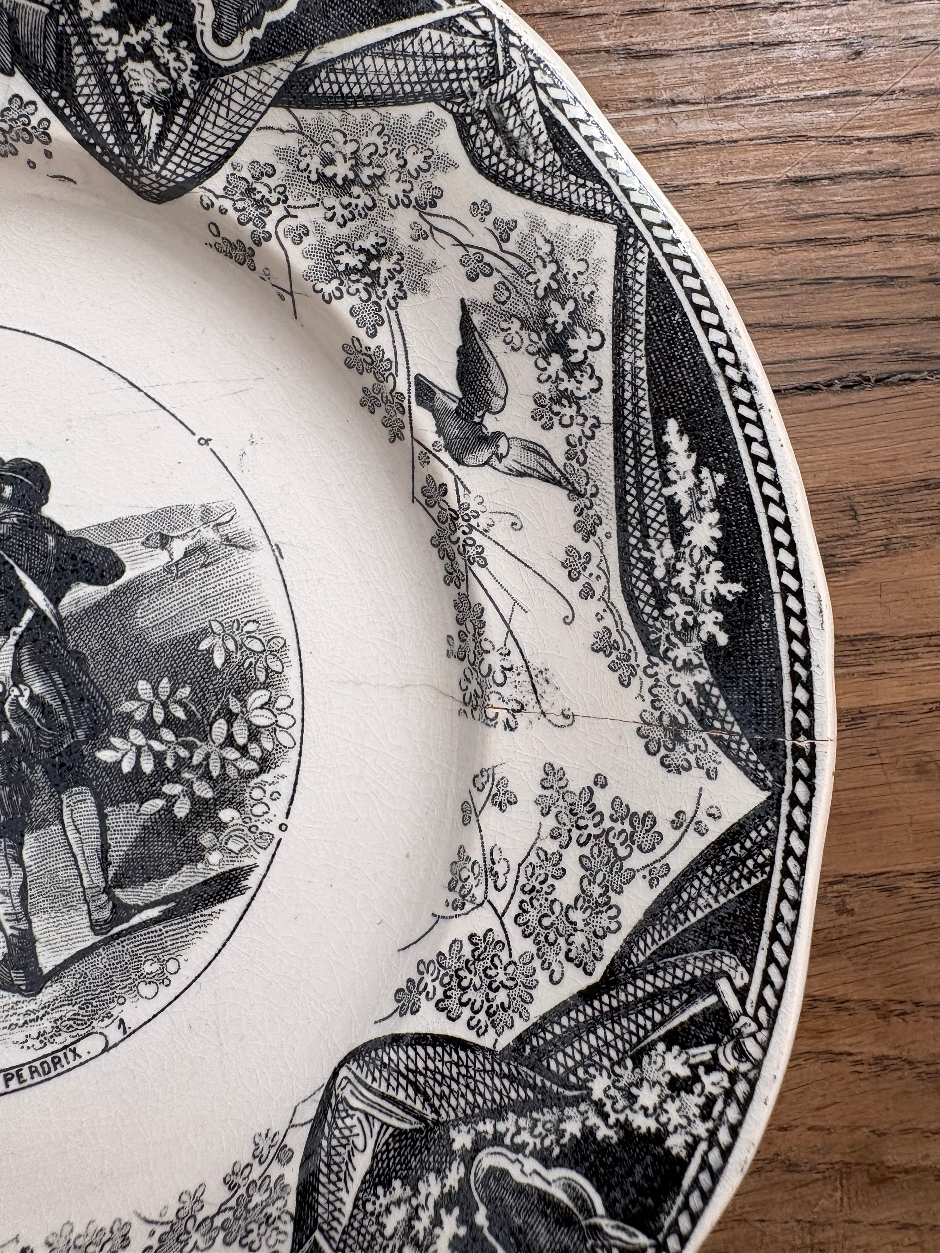 訳あり グリザイユ マンスリープレート Creil et Montereau フランスアンティーク アンティークプレート 絵皿 クレイユモントロー