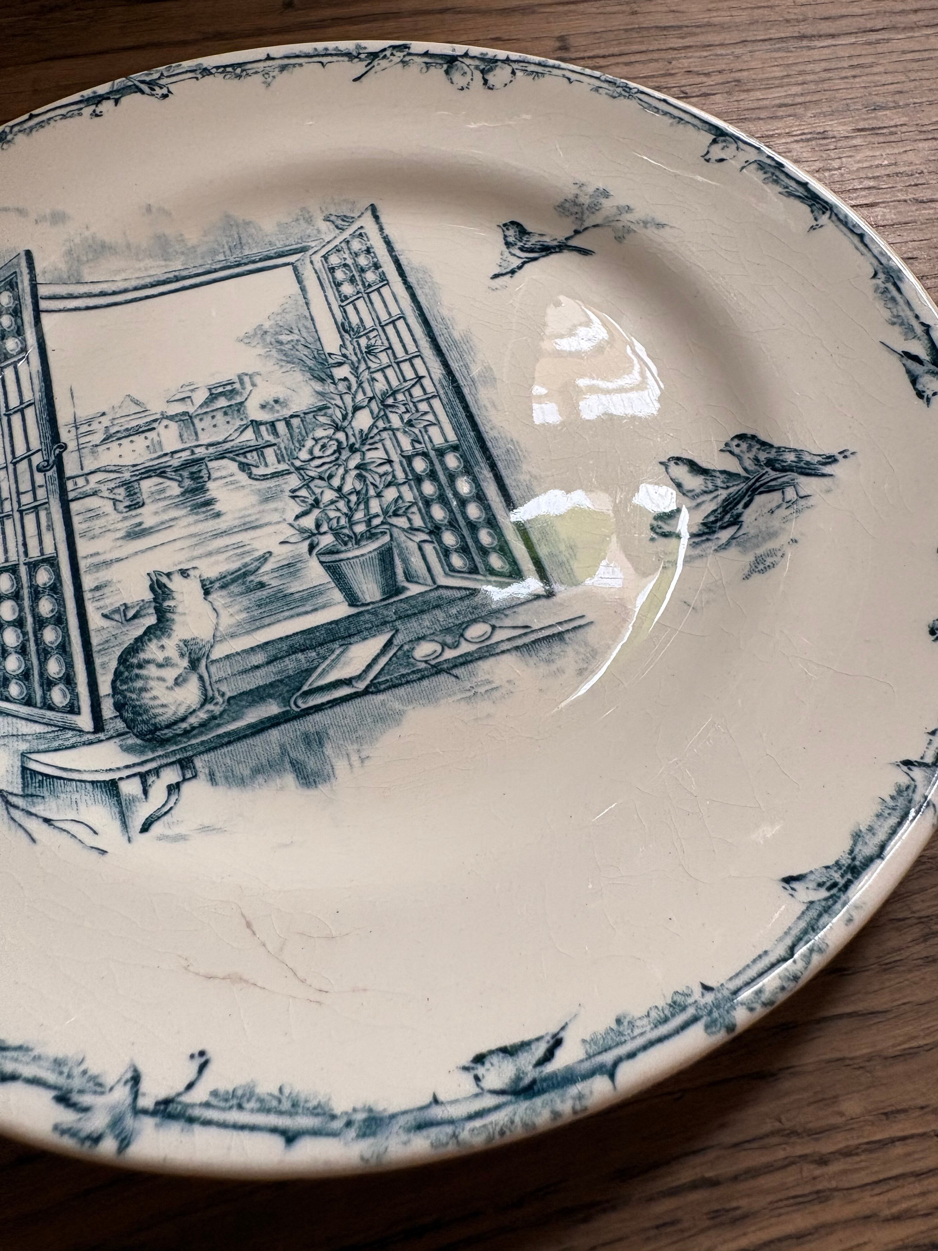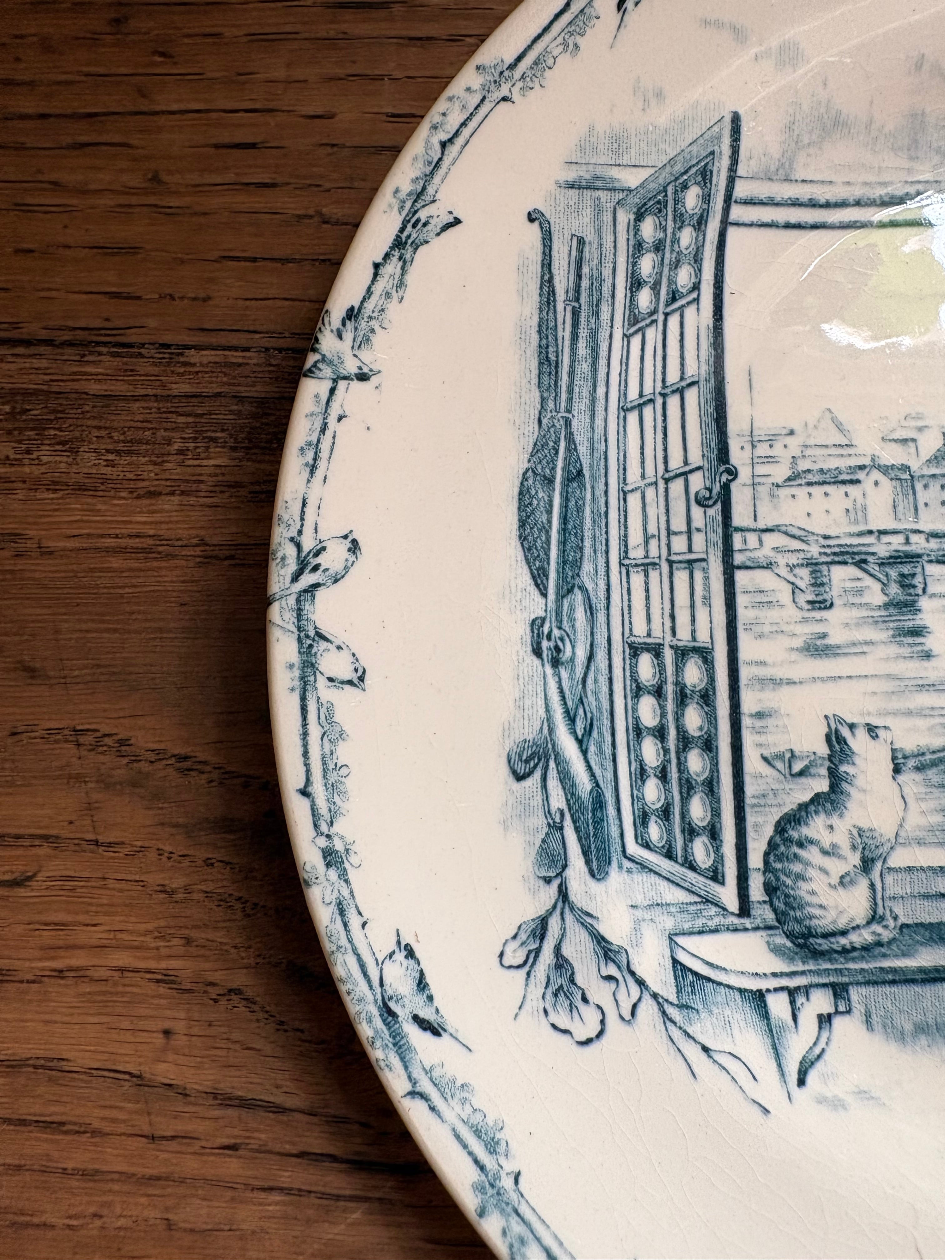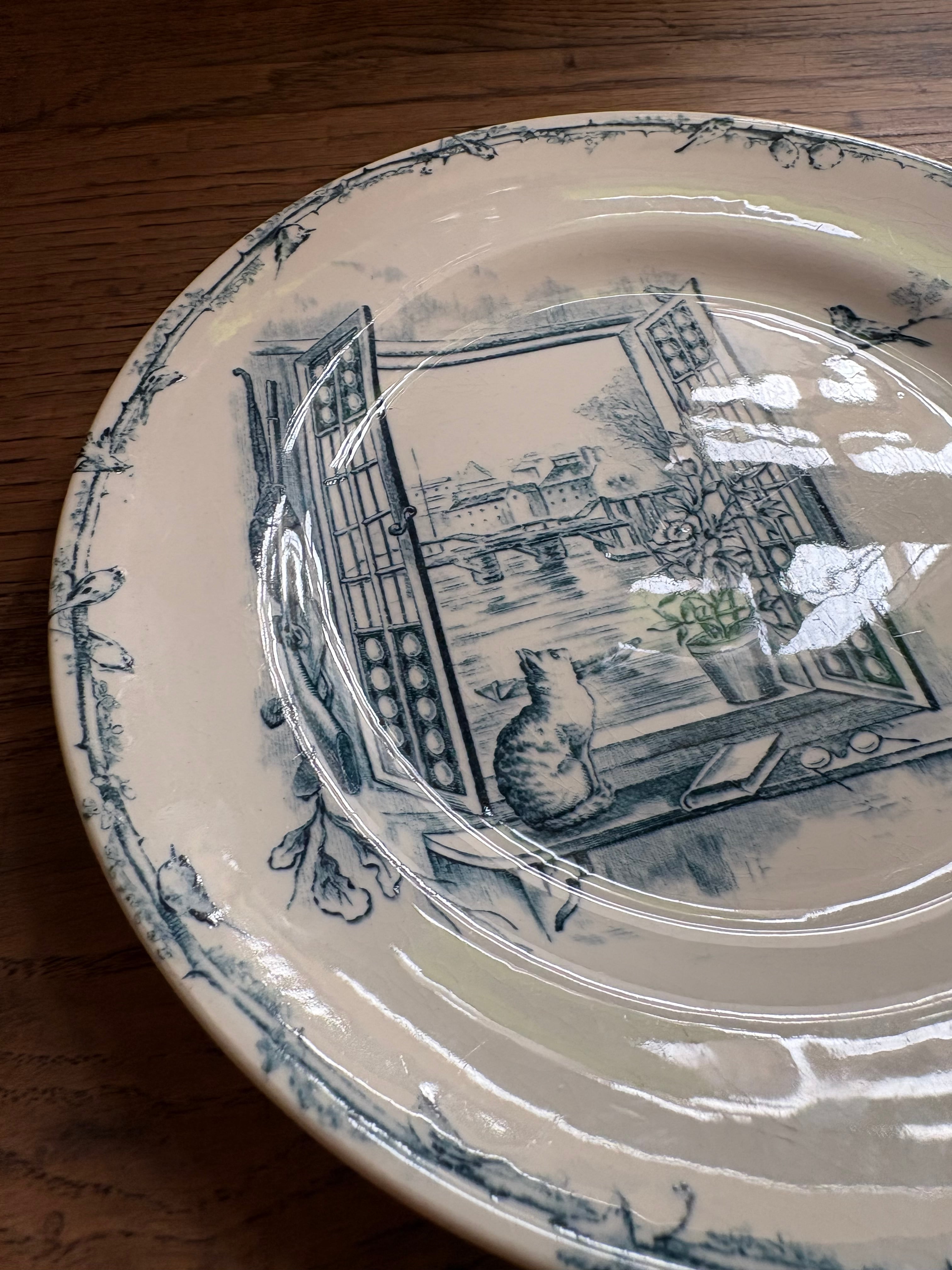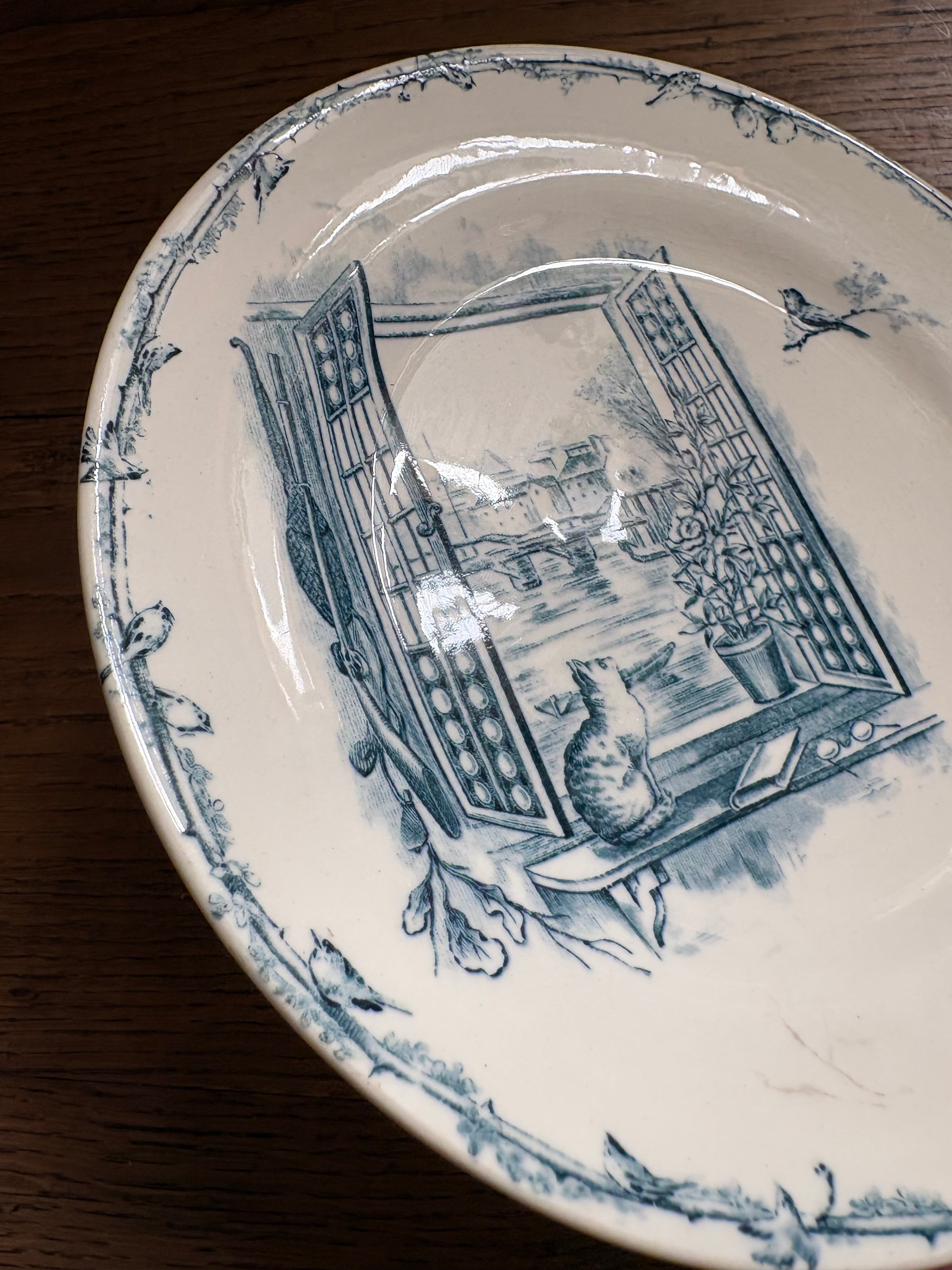 窓辺の猫と小鳥さん Cie Franco-Anglaise フランスアンティーク アンティークプレート ショワジールロワ