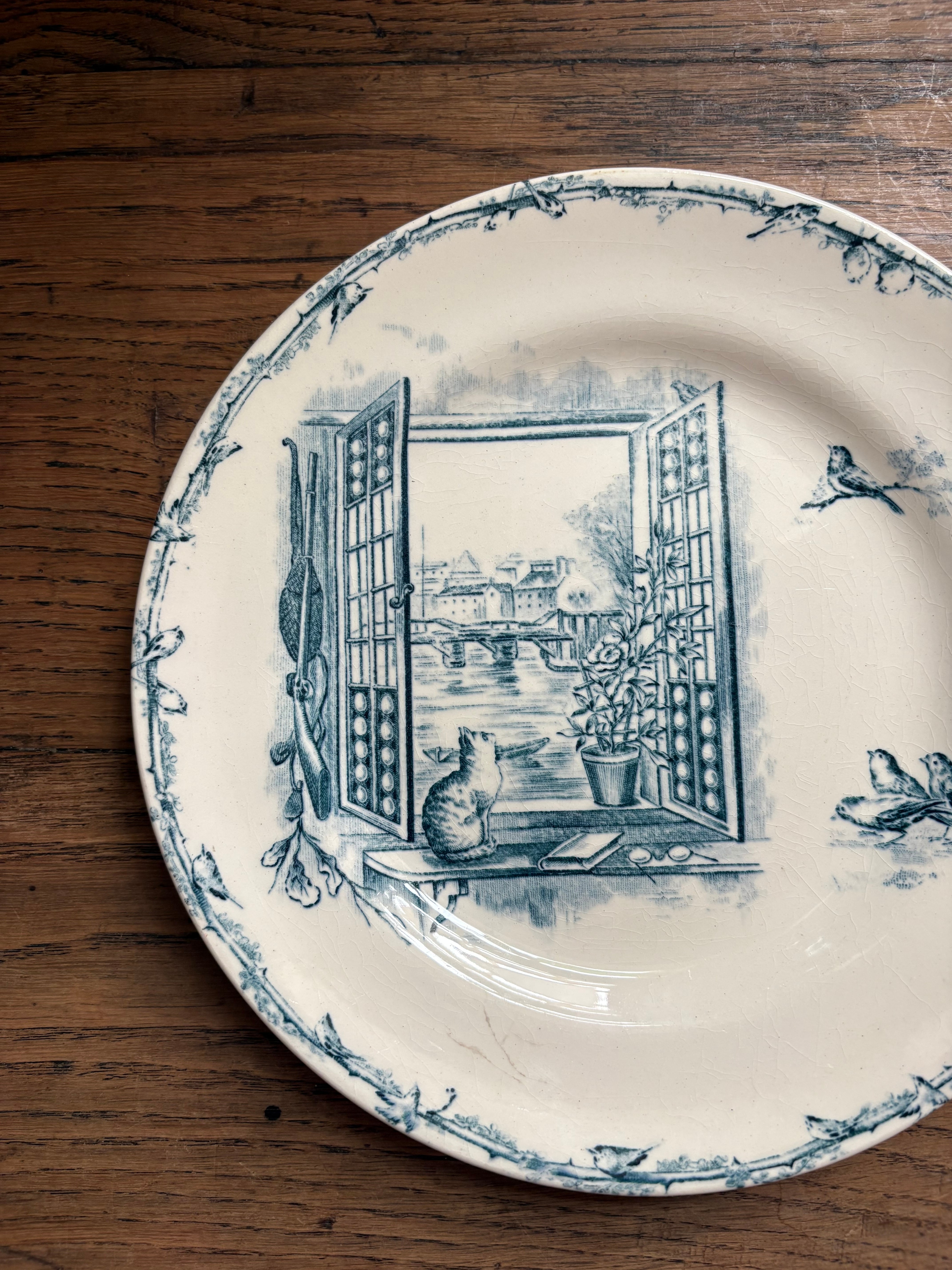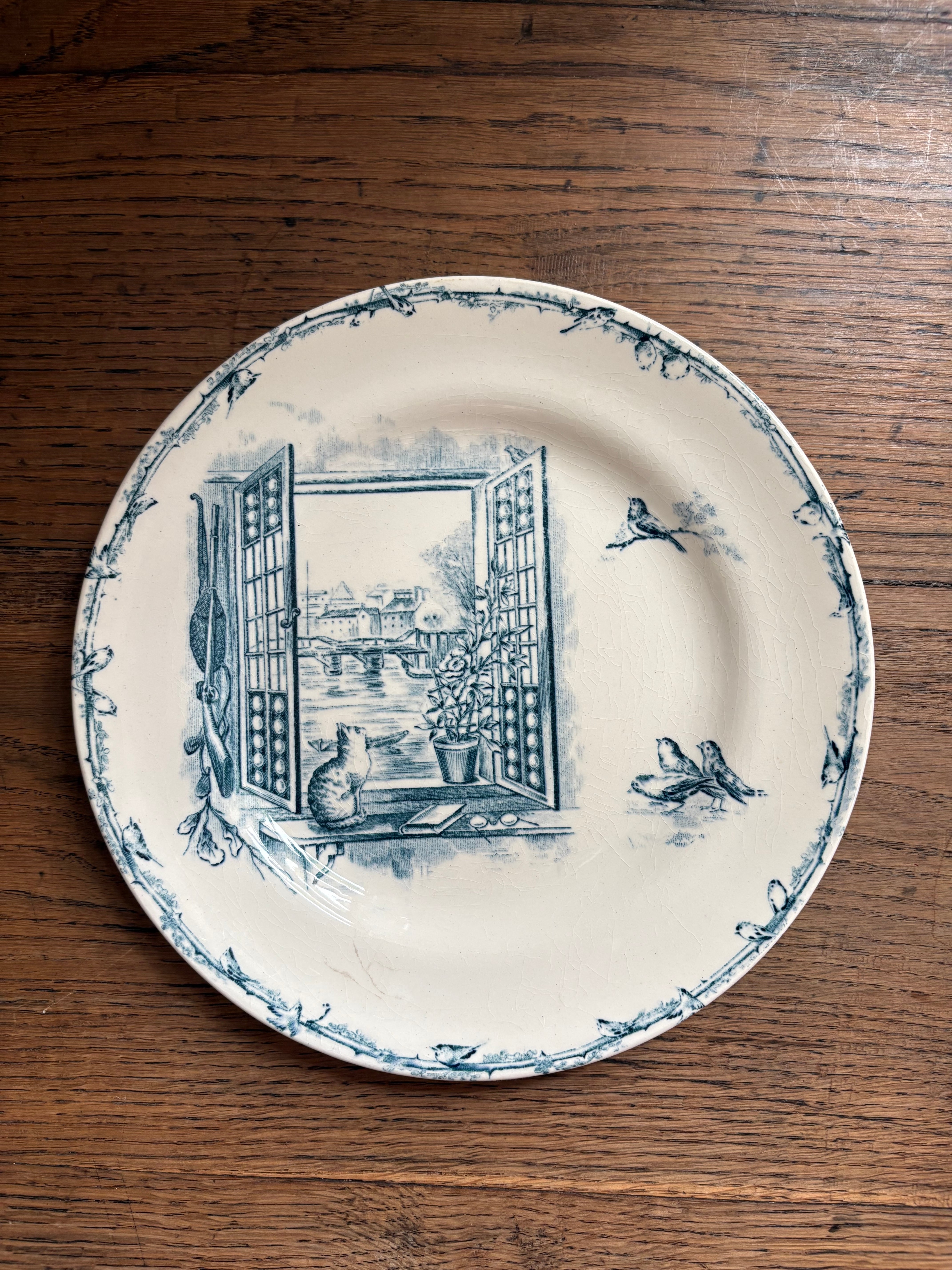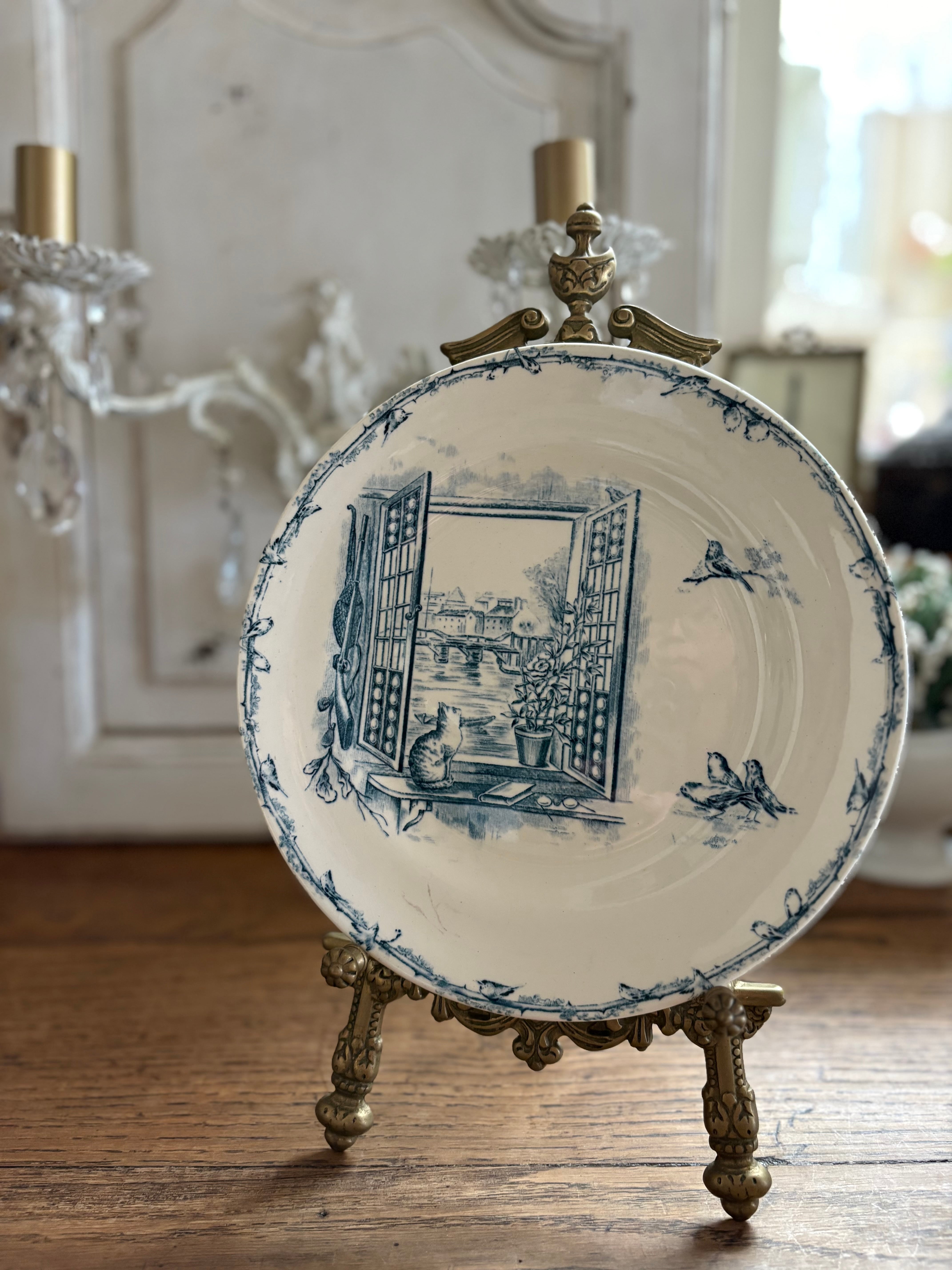 窓辺の猫と小鳥さん Cie Franco-Anglaise フランスアンティーク アンティークプレート ショワジールロワ
