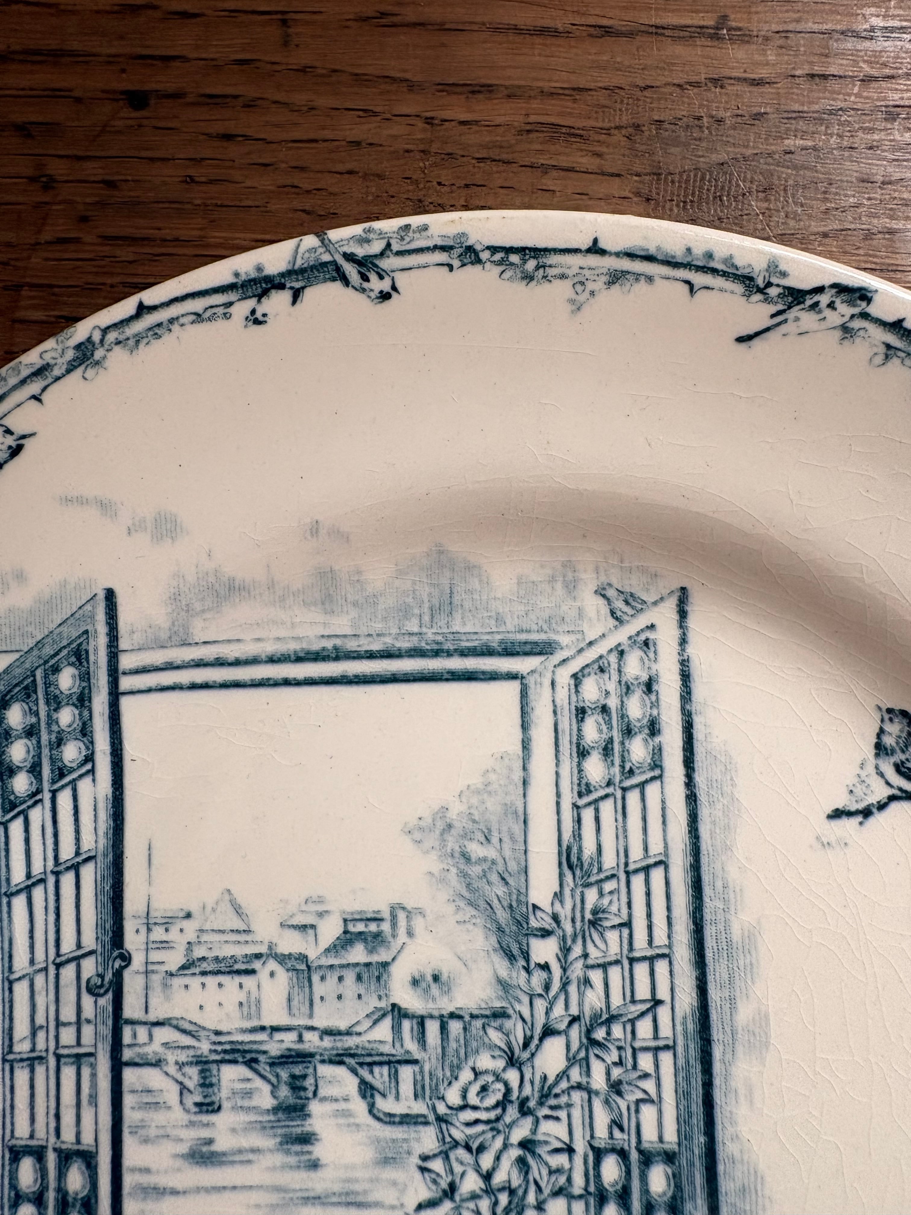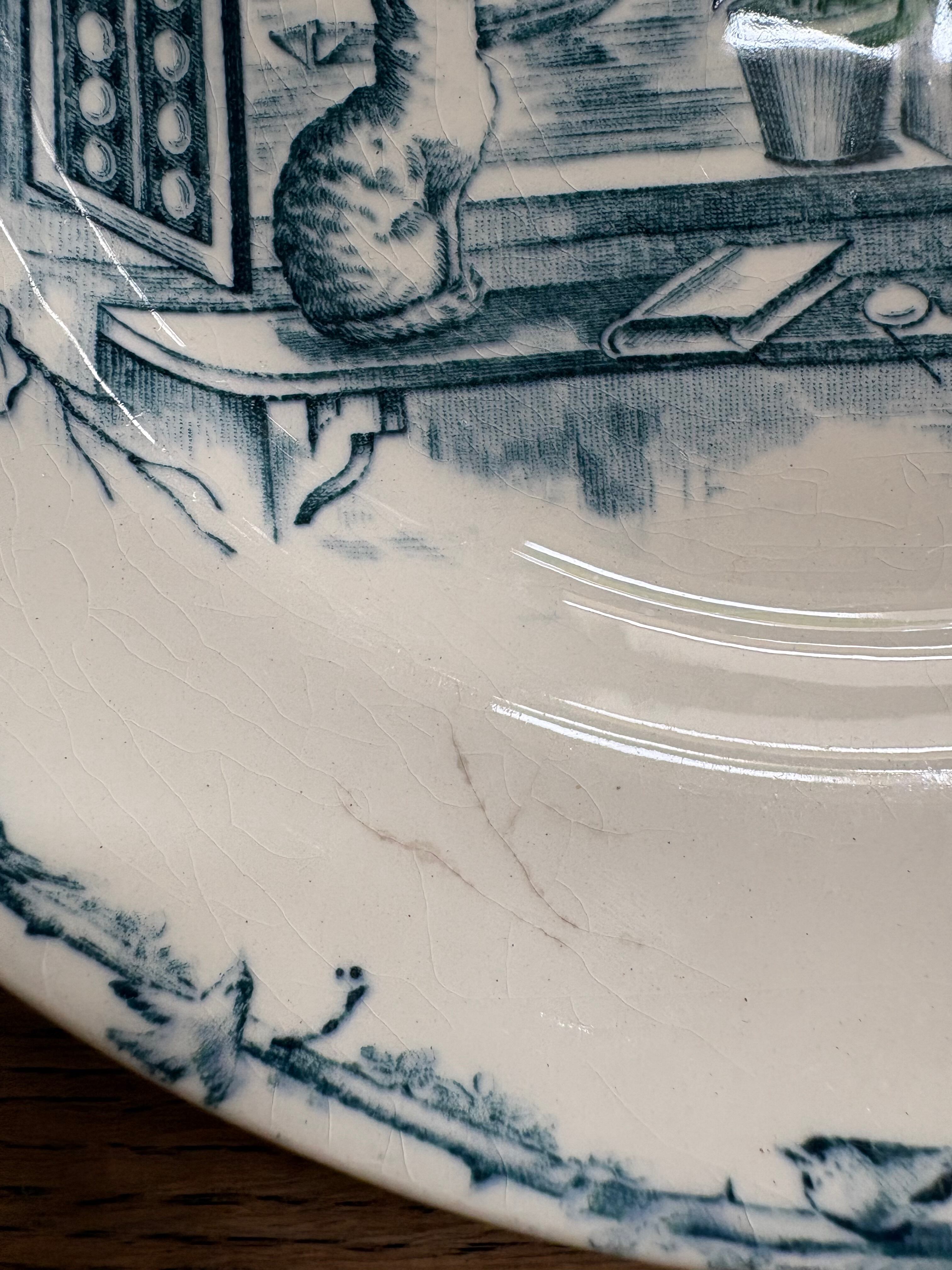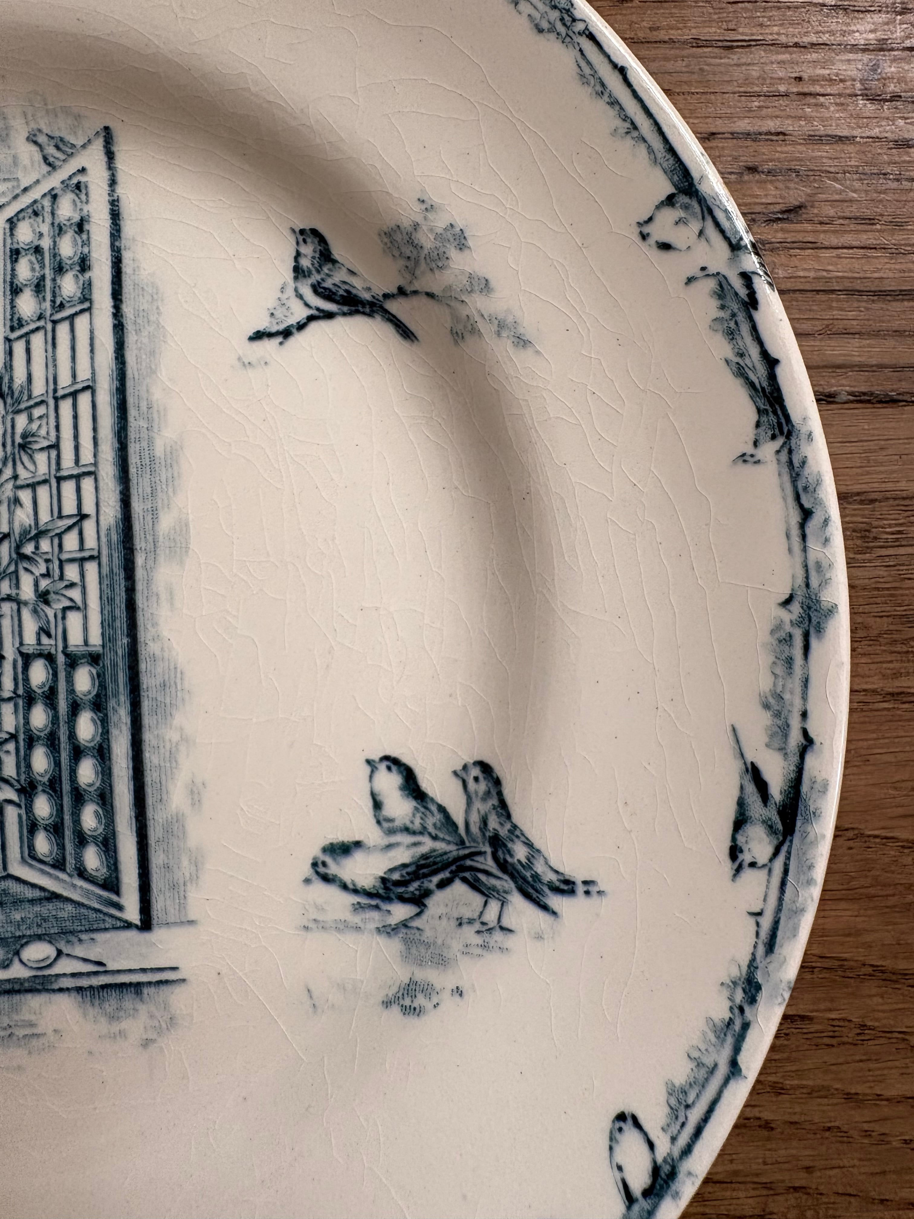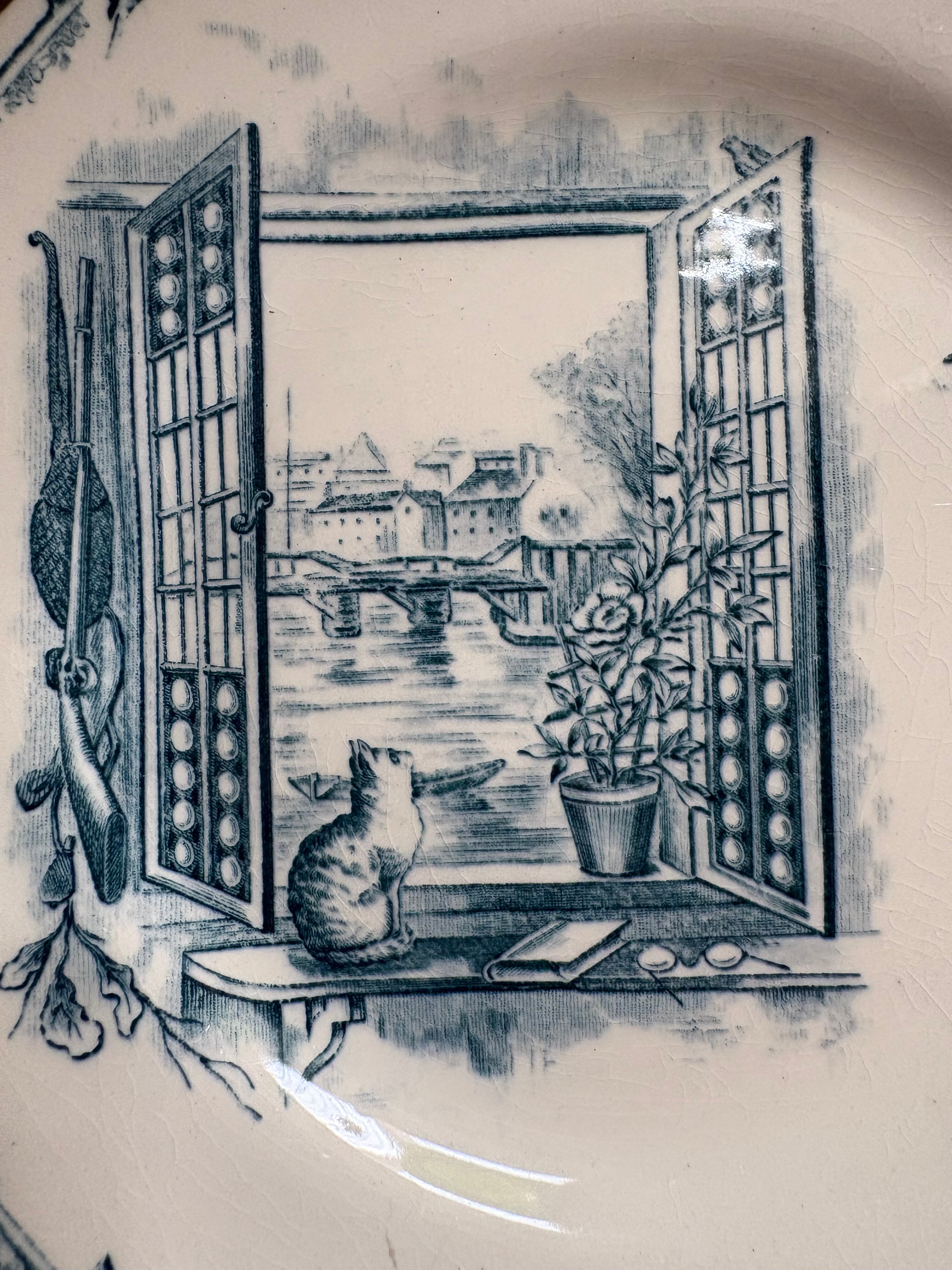 窓辺の猫と小鳥さん Cie Franco-Anglaise フランスアンティーク アンティークプレート ショワジールロワ