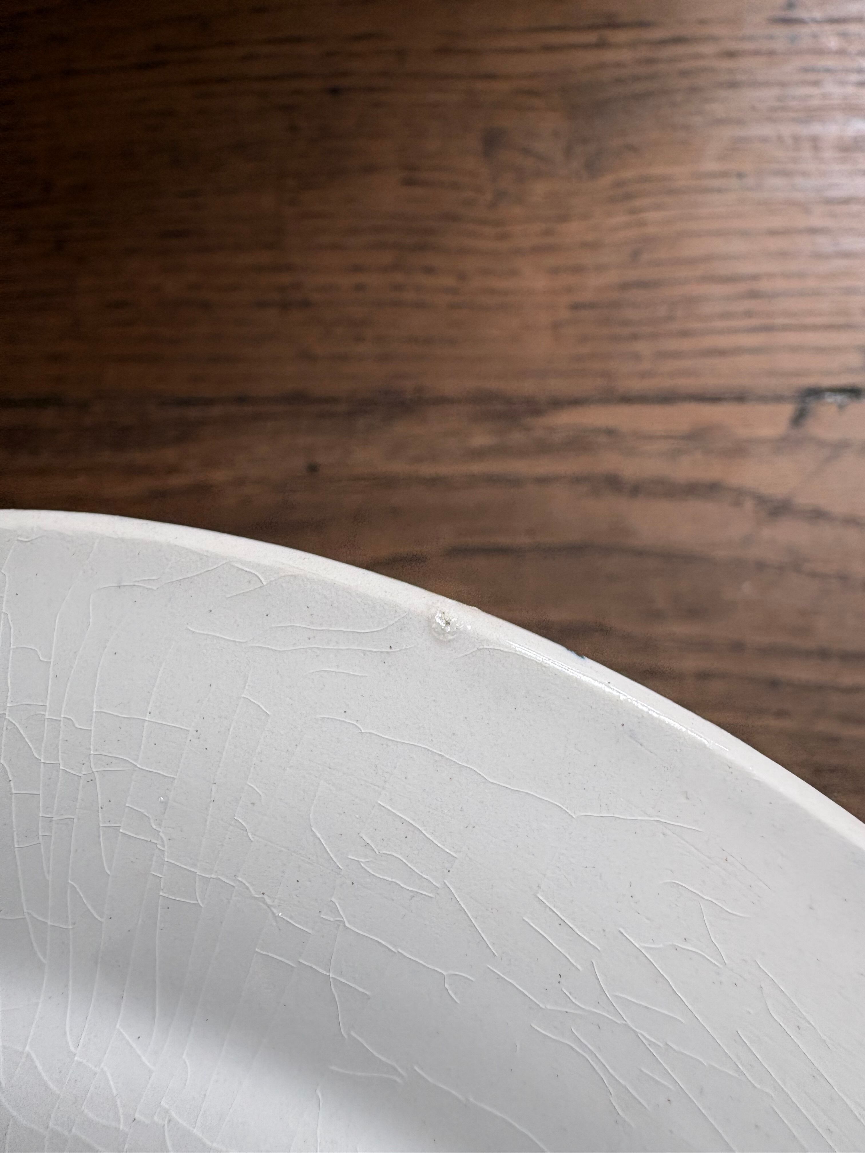 プレートの下部に黒い線が2本ほど、右半分に貫入がございます。表面、見えにくいですが小傷ございます。
