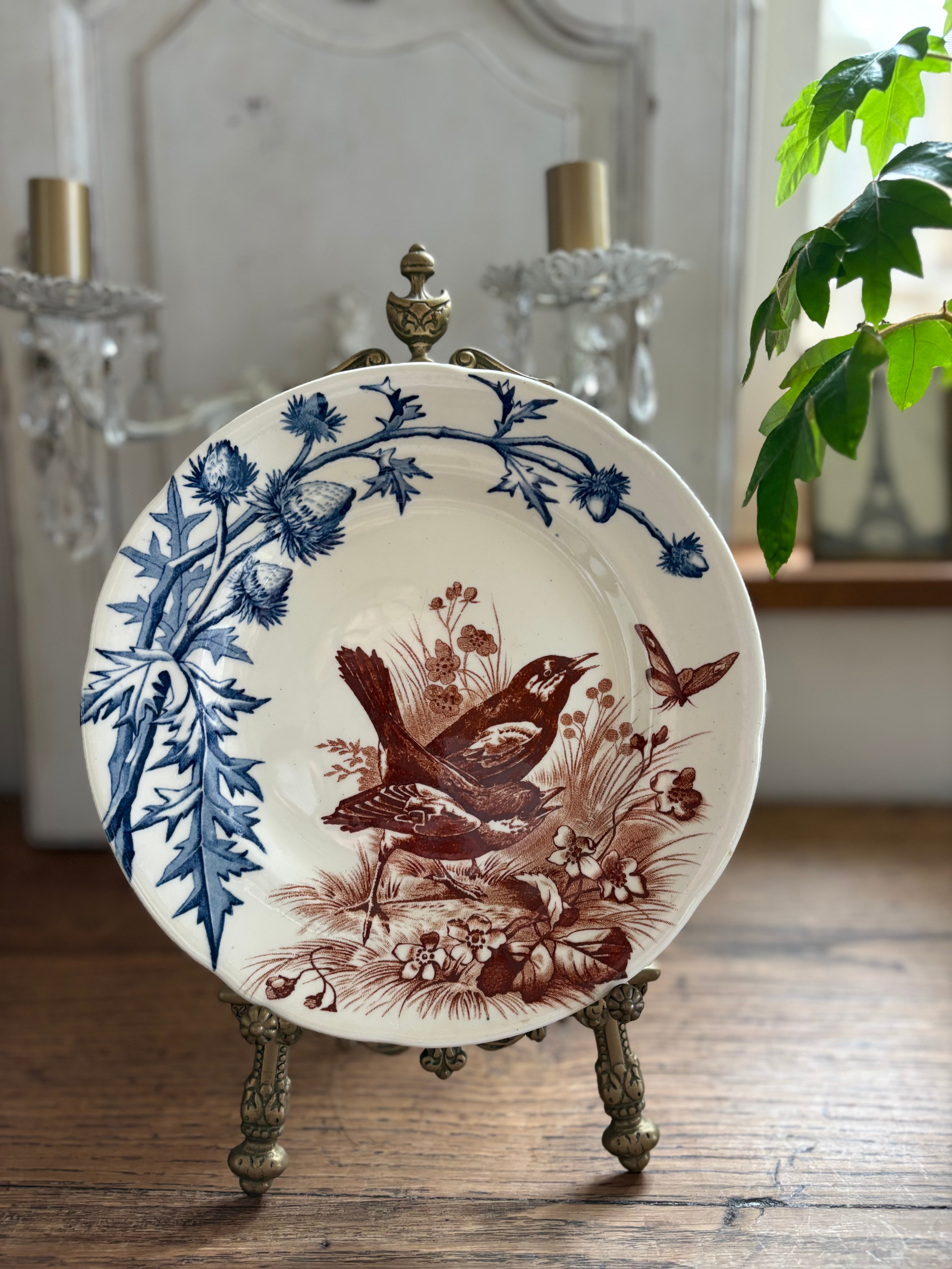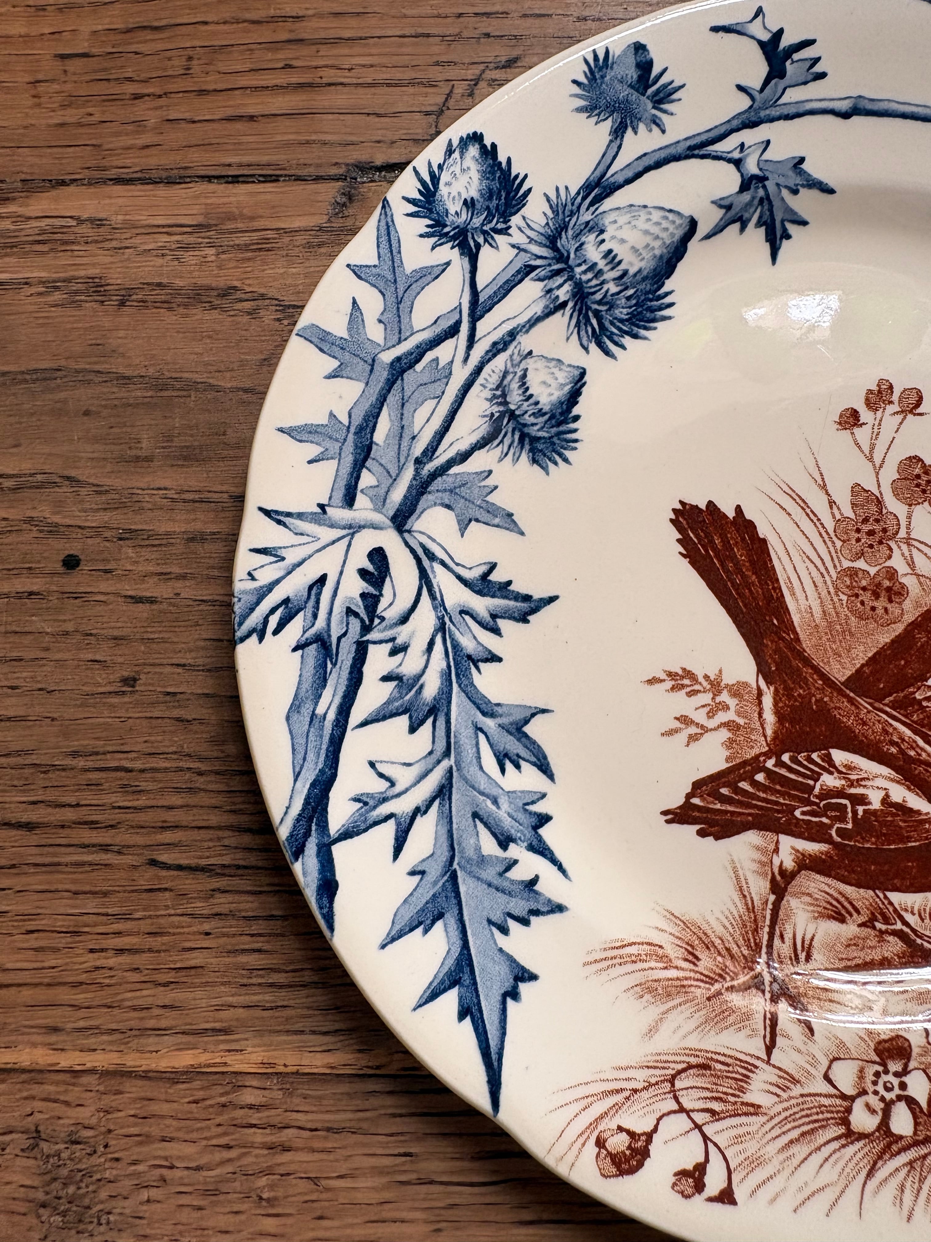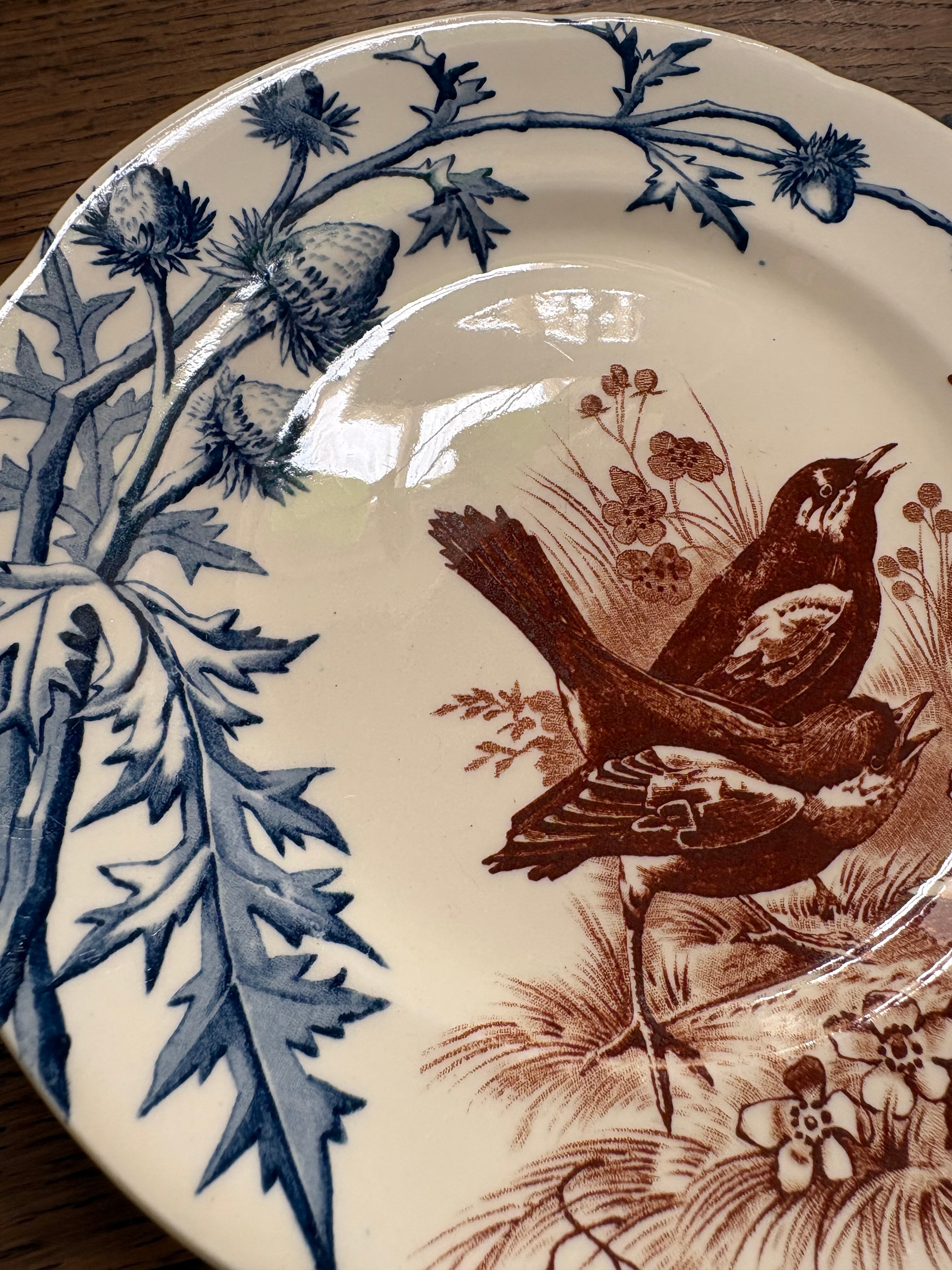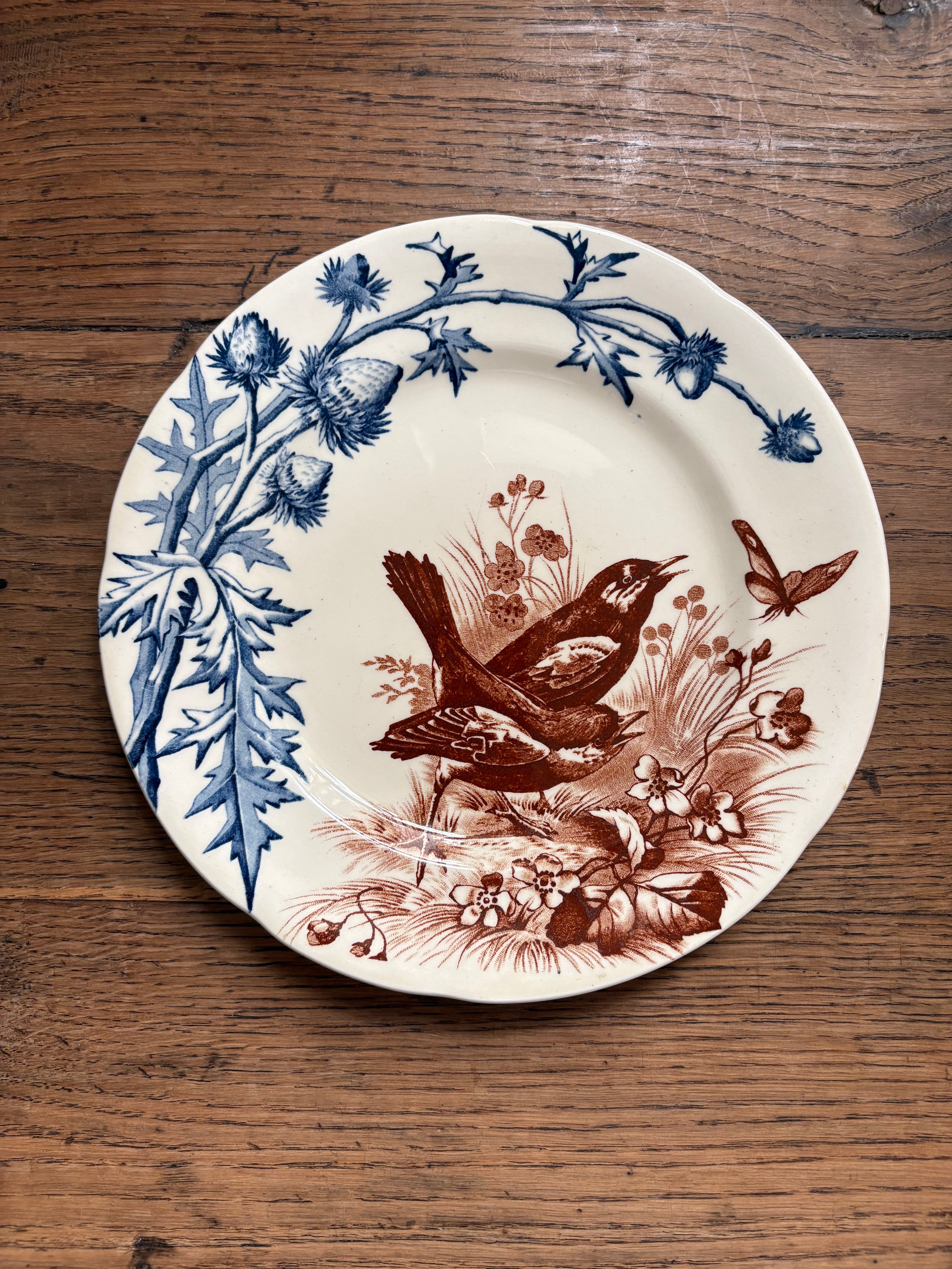 A アザミと小鳥のプレート Clairefontaine 平皿プレート C フランスアンティーク アンティークプレート 絵皿 クレールフォンティーヌ