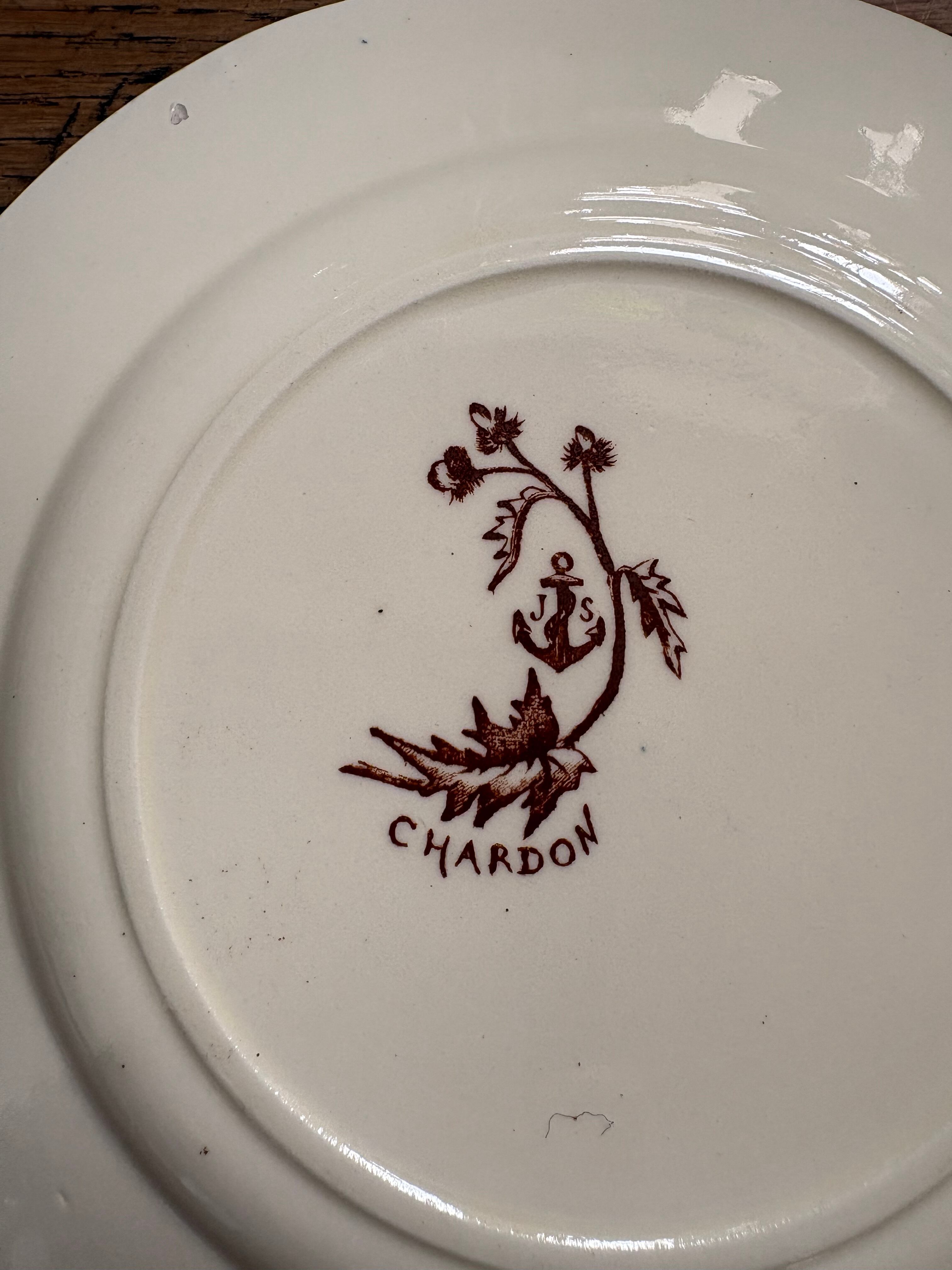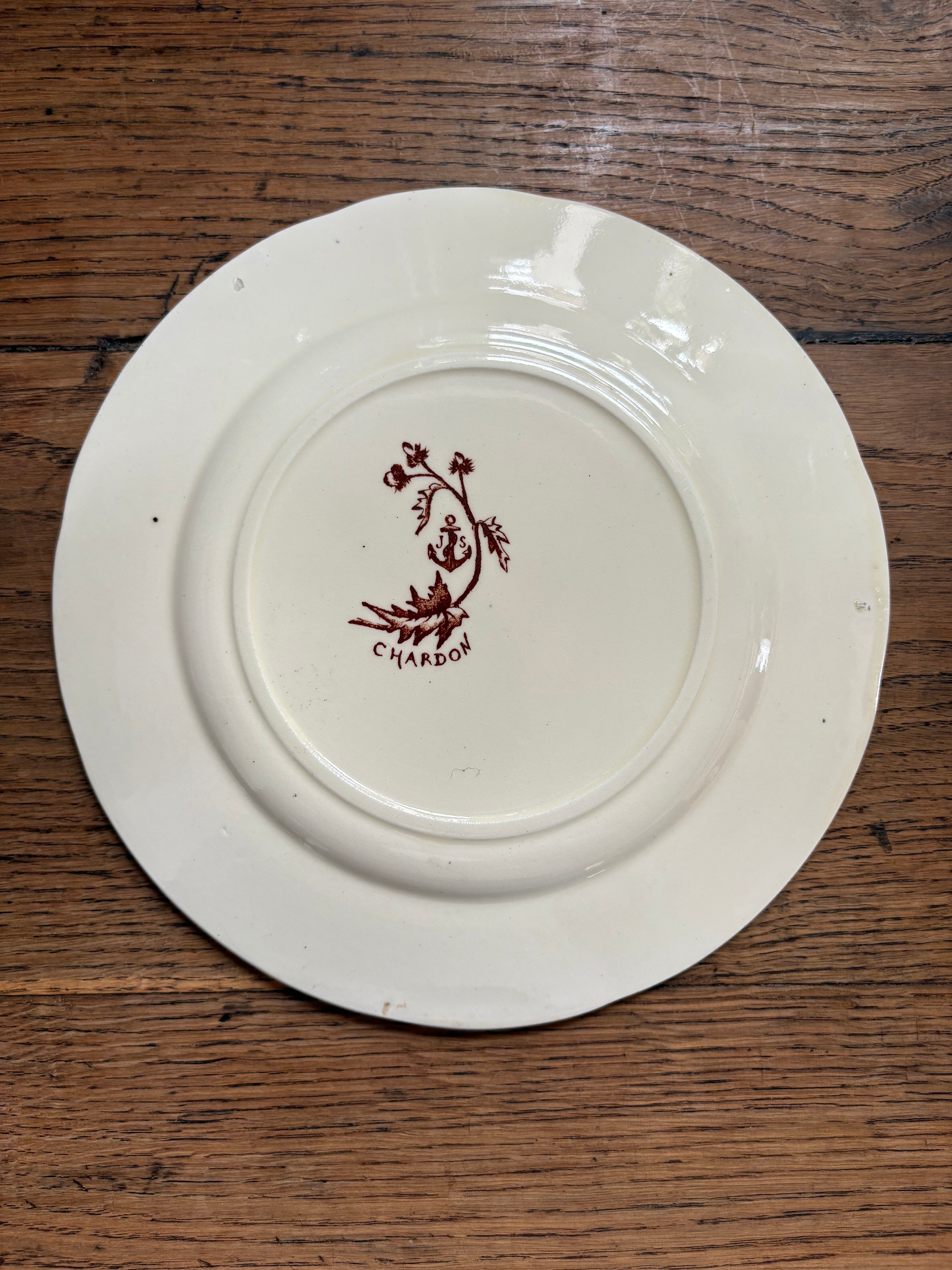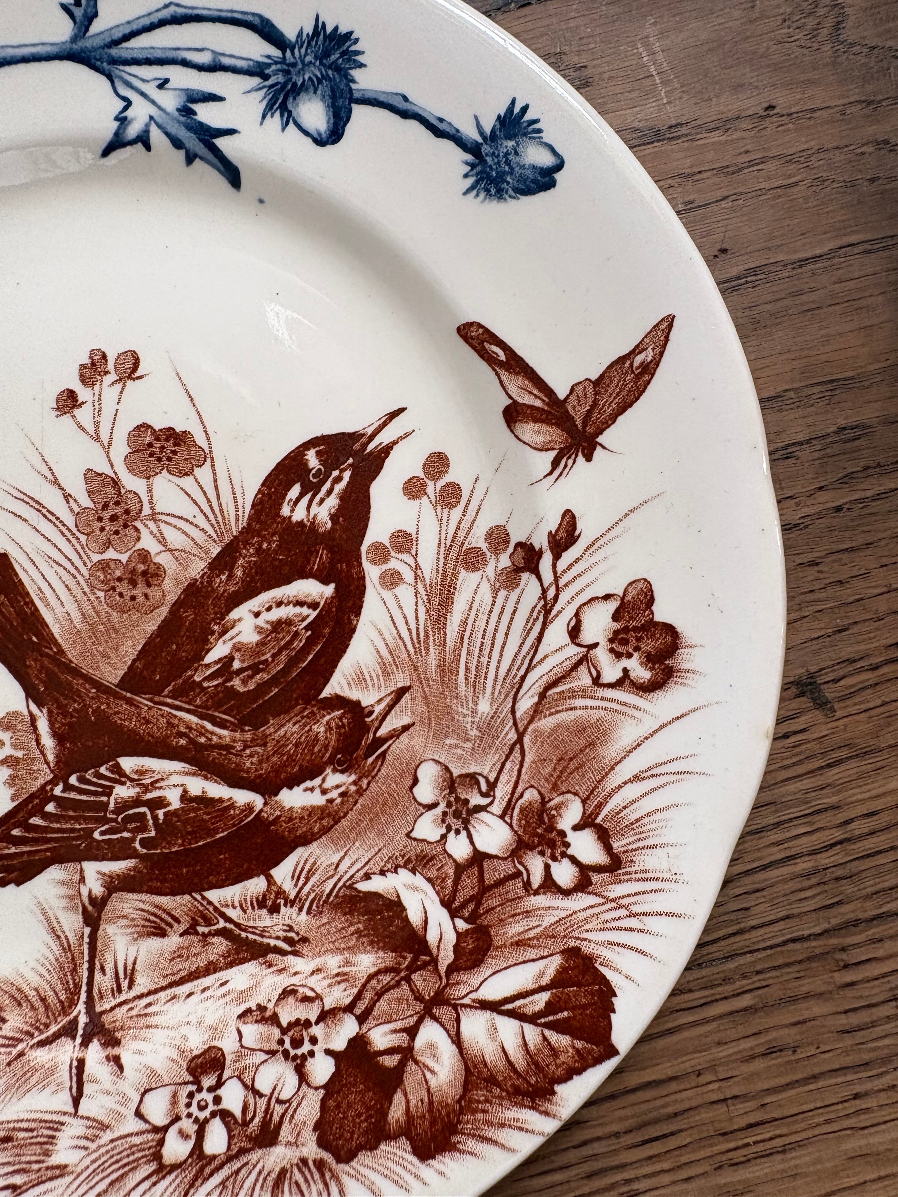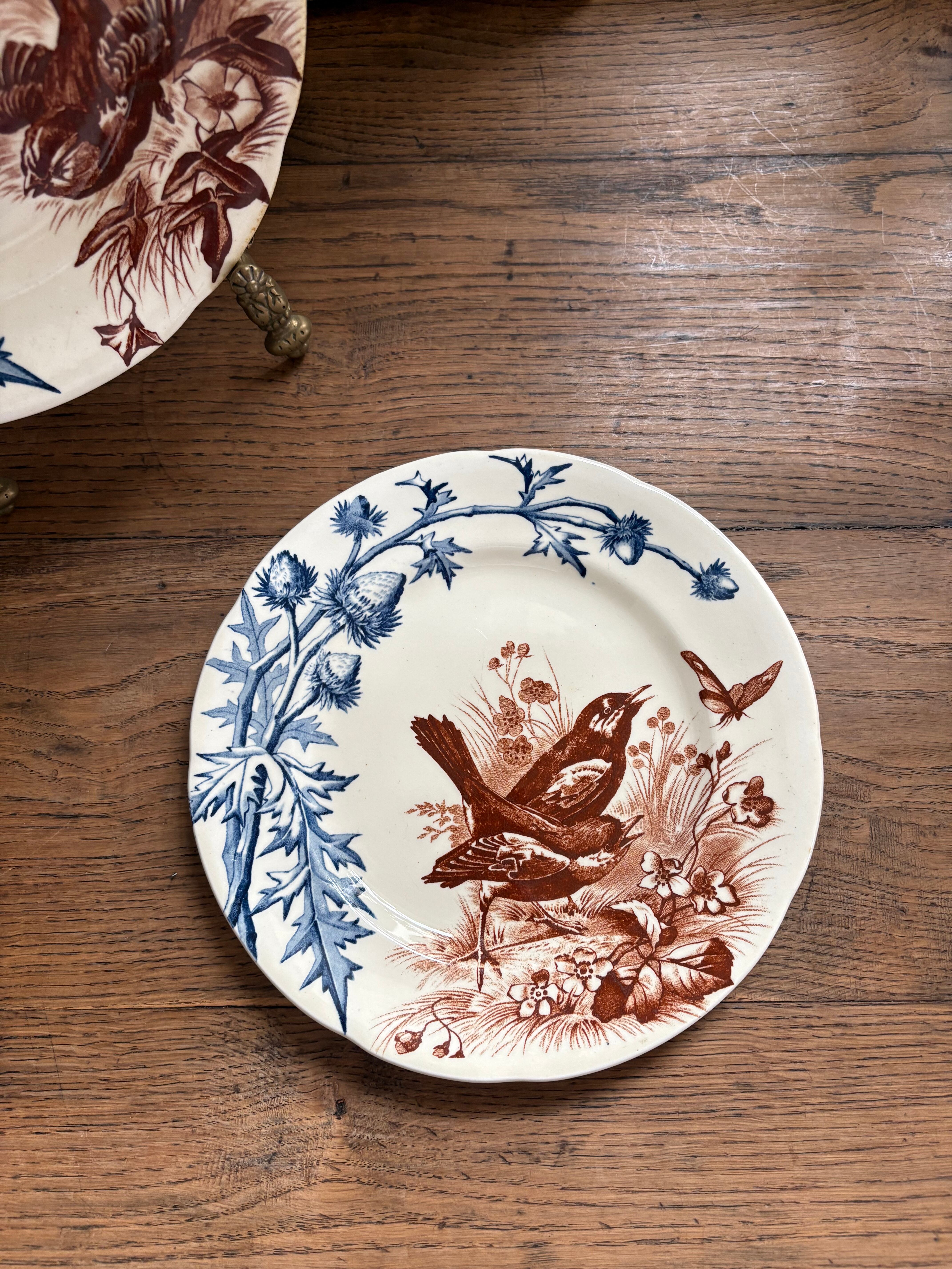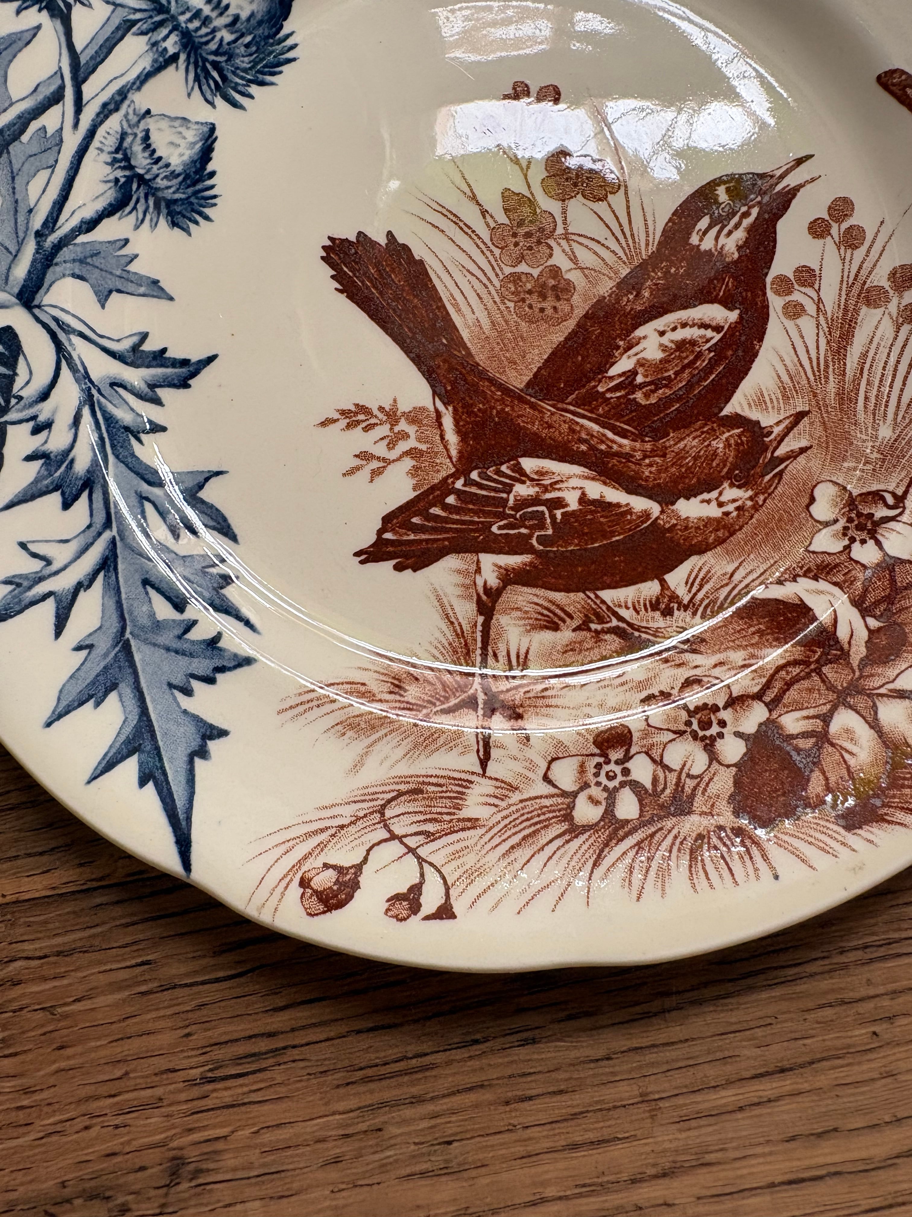 A アザミと小鳥のプレート Clairefontaine 平皿プレート C フランスアンティーク アンティークプレート 絵皿 クレールフォンティーヌ