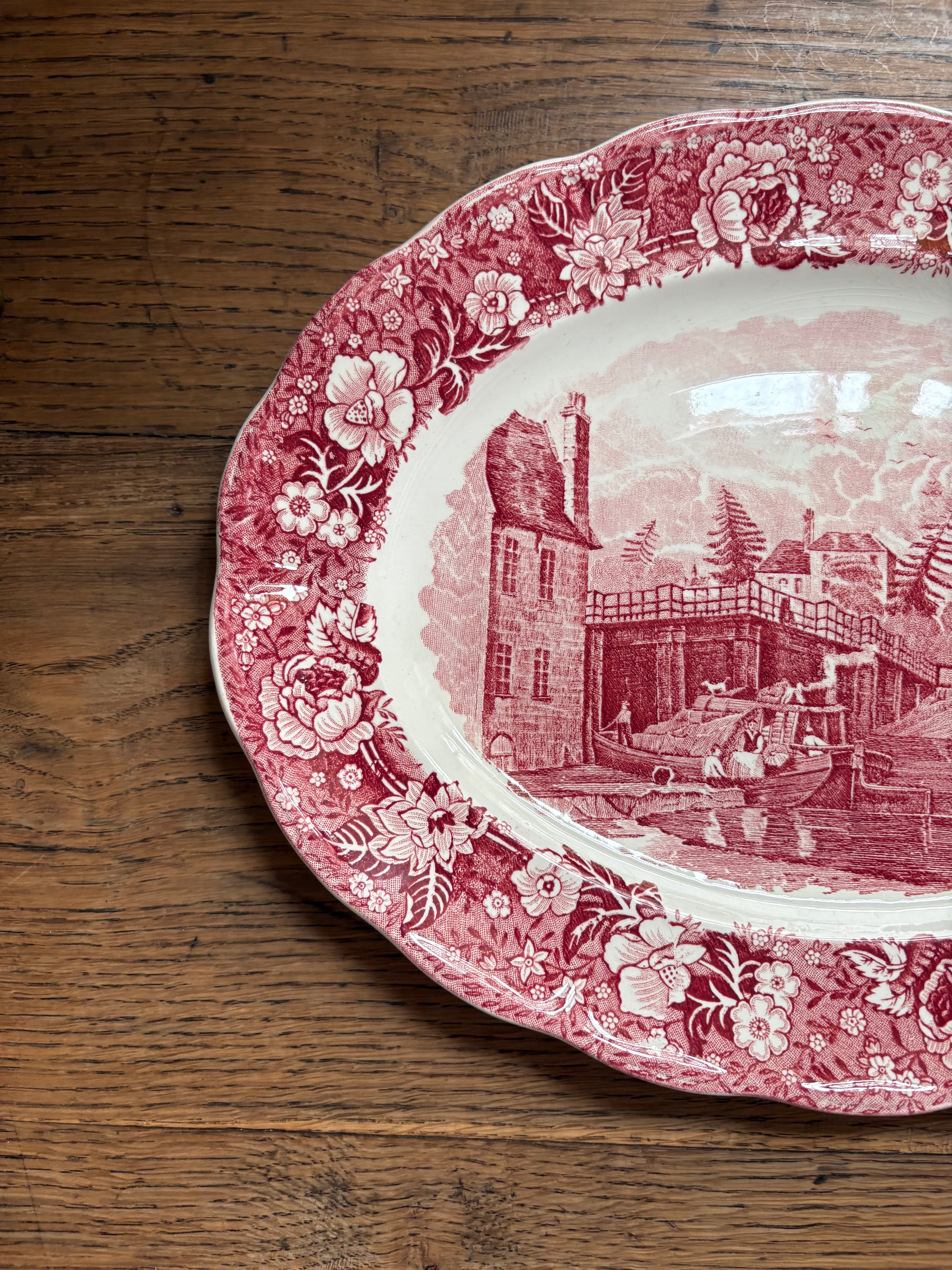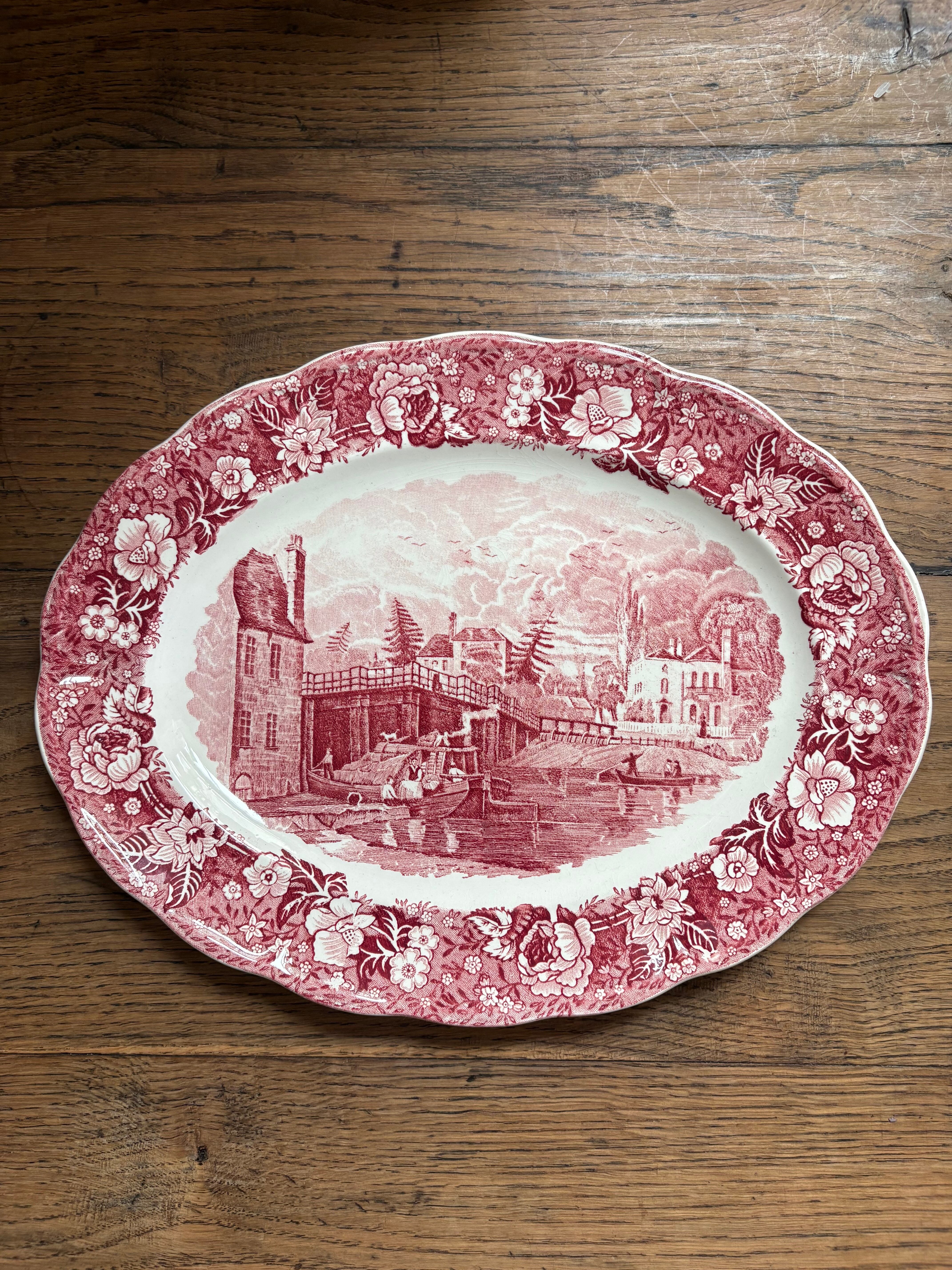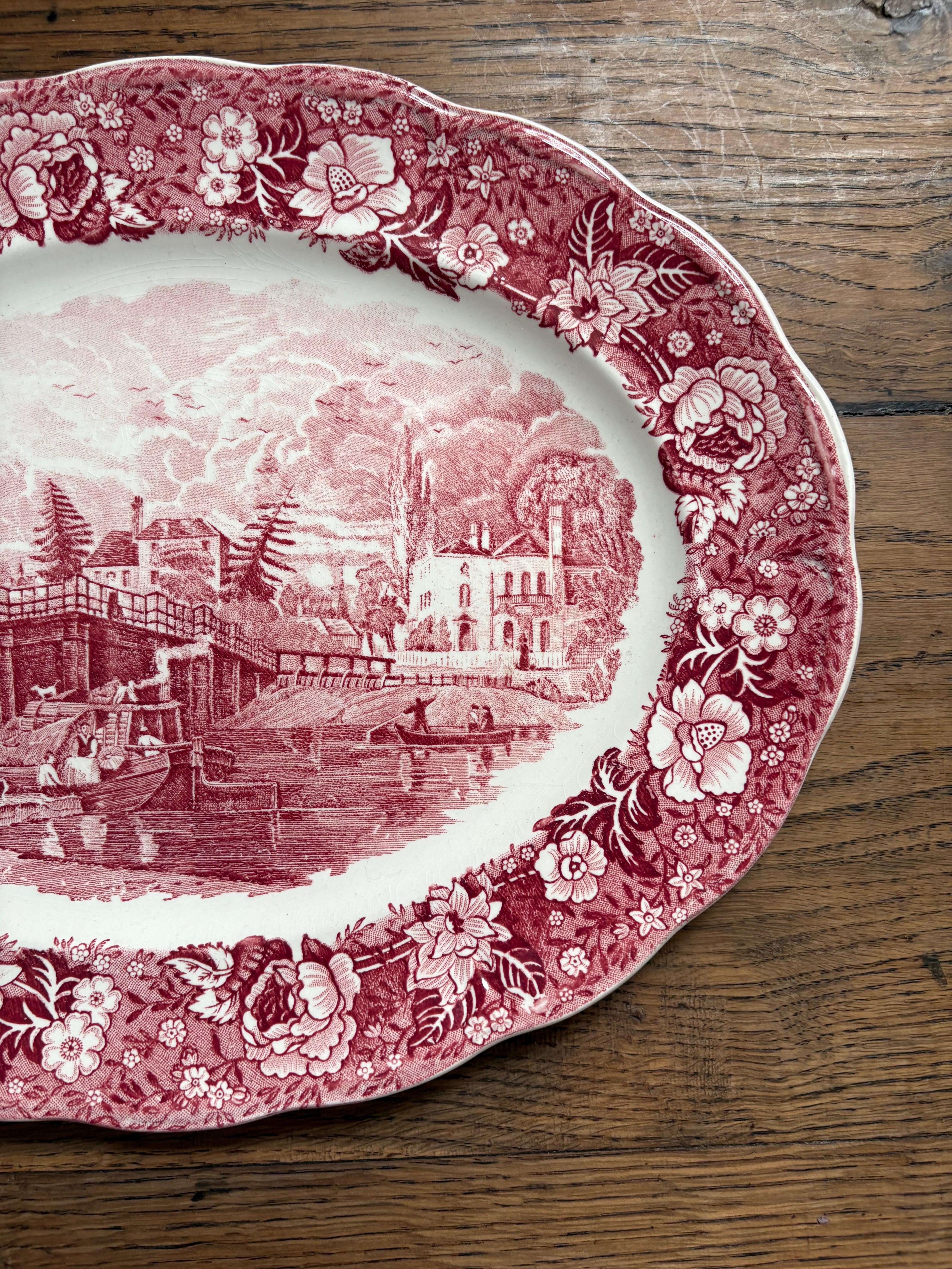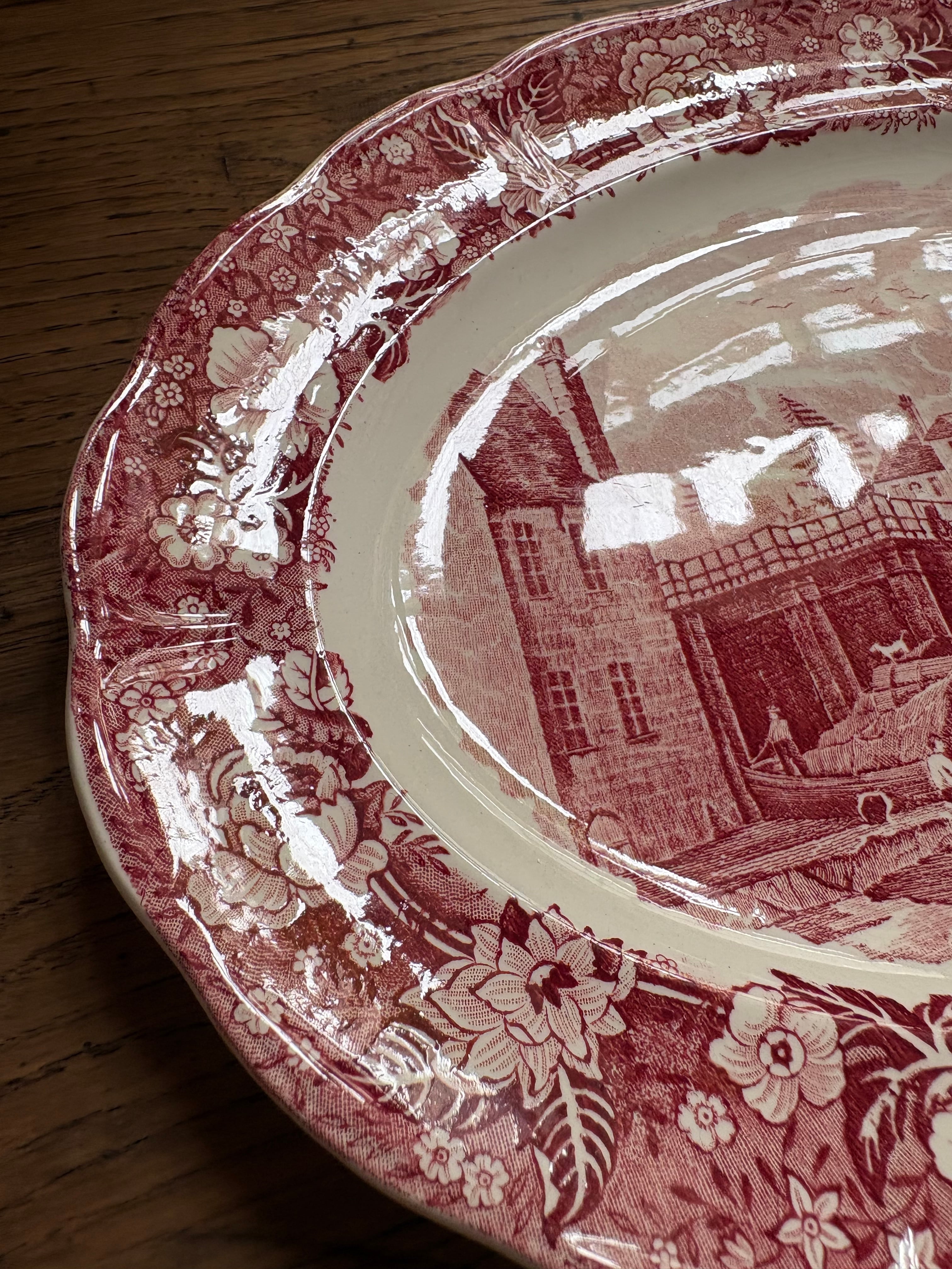 テムズ川からの美しい景色が描かれたオーバルプレート、この川から当時の人々の暮らしぶりが想像出来る一枚となっております。