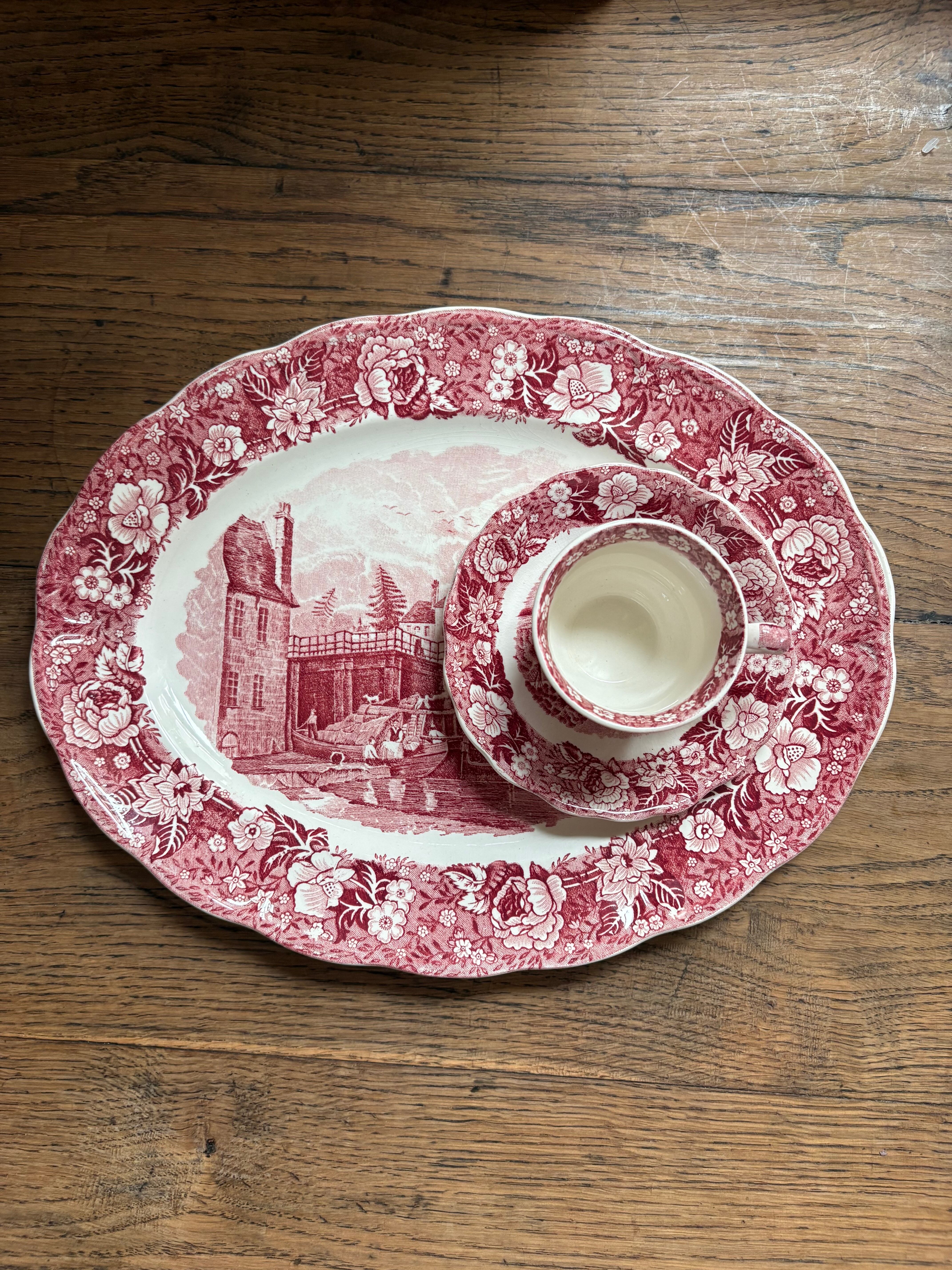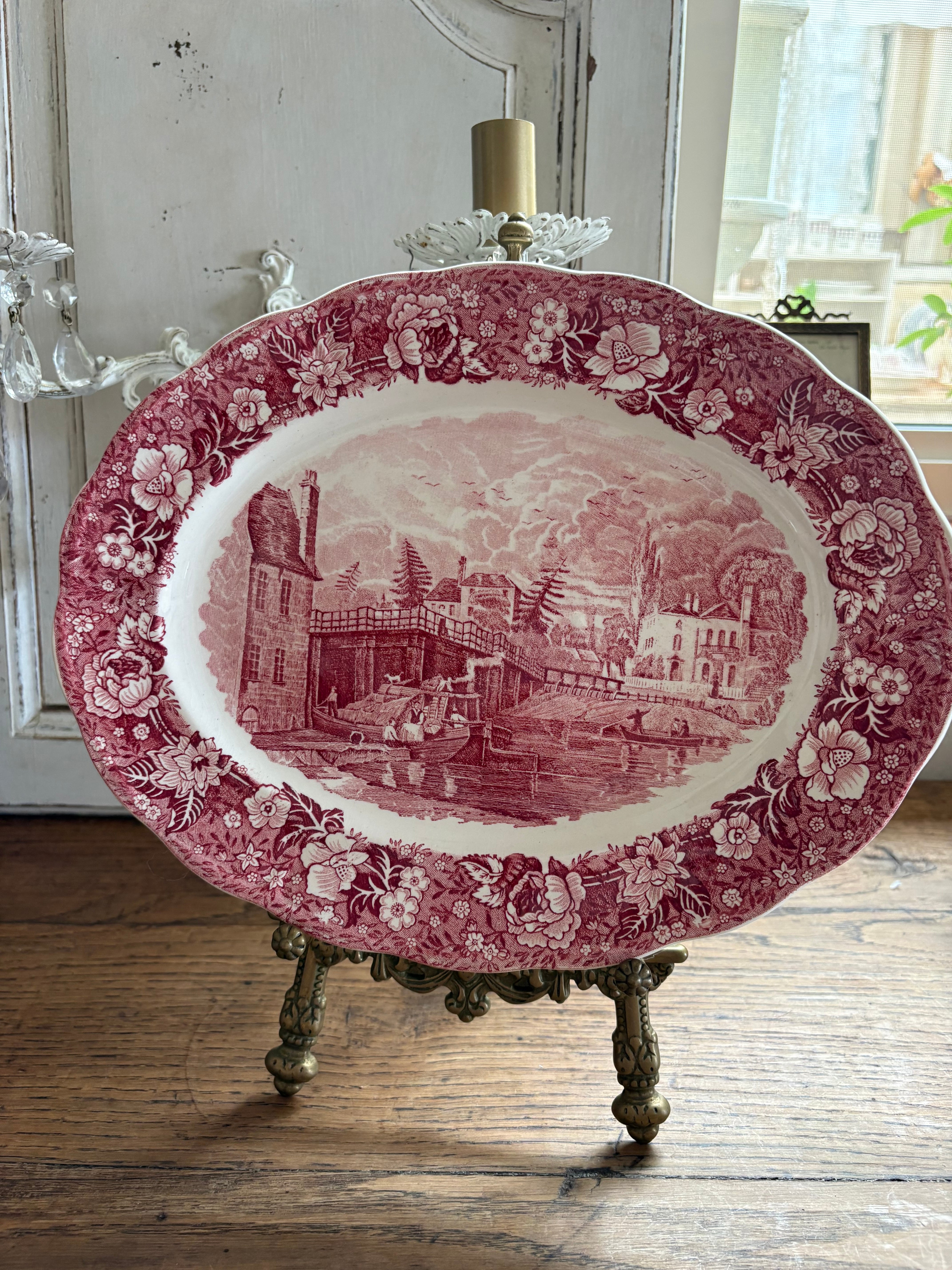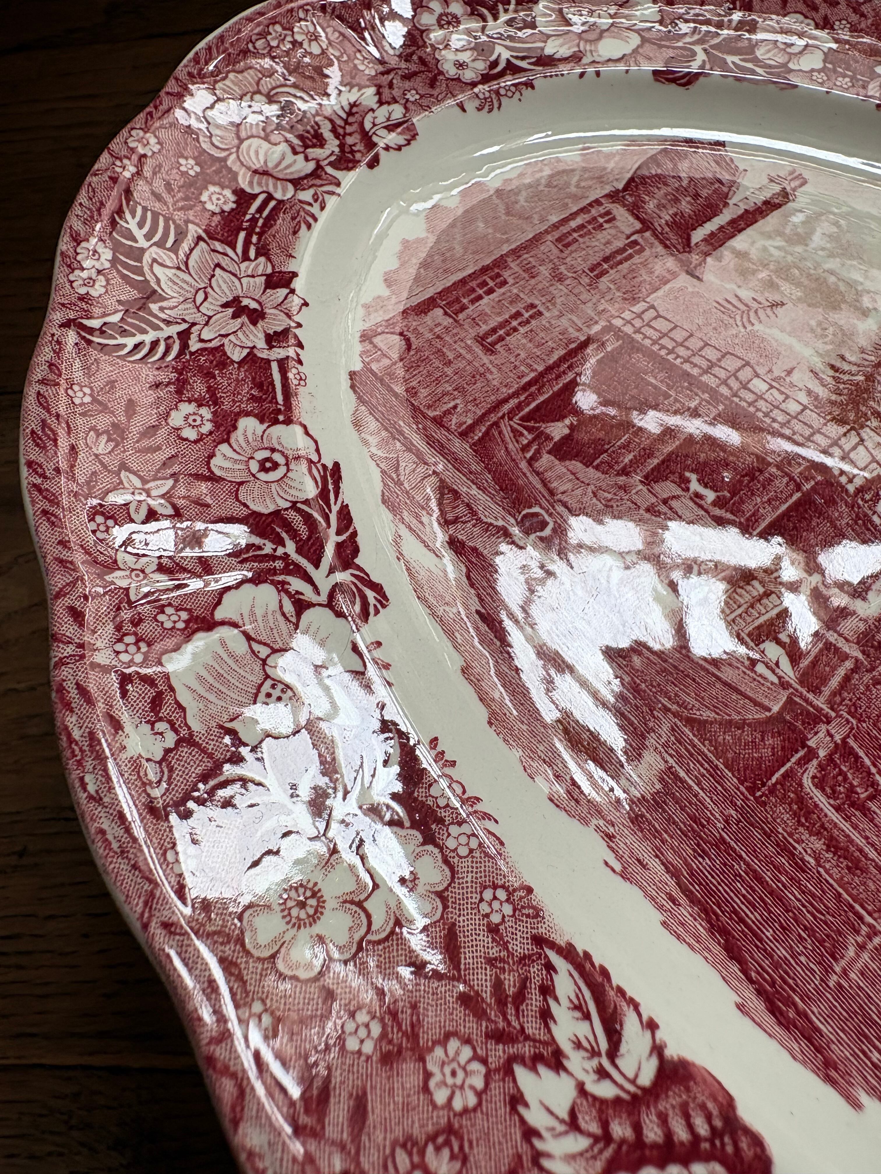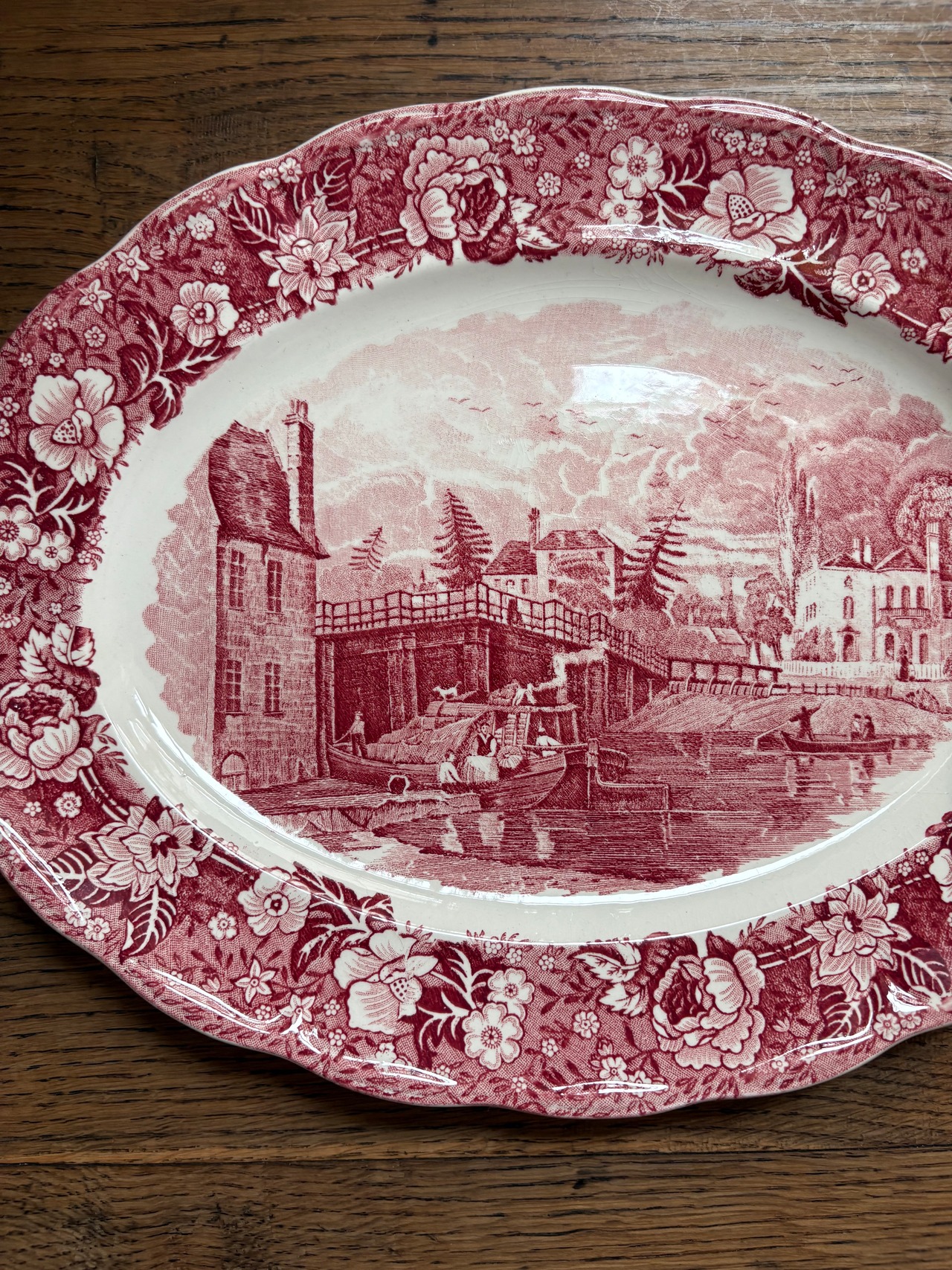 テムズ川からの美しい景色が描かれたオーバルプレート、この川から当時の人々の暮らしぶりが想像出来る一枚となっております。
